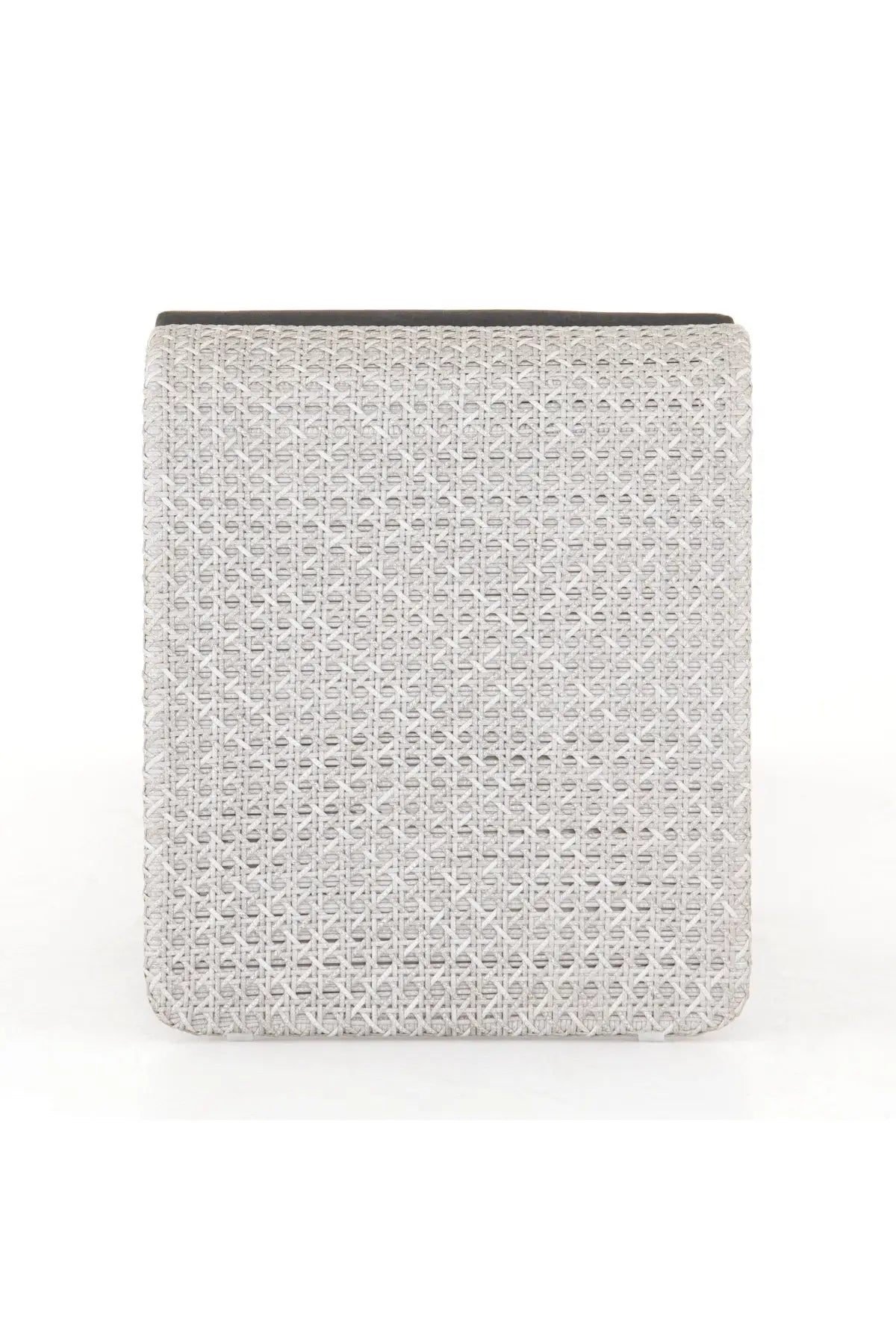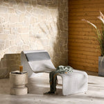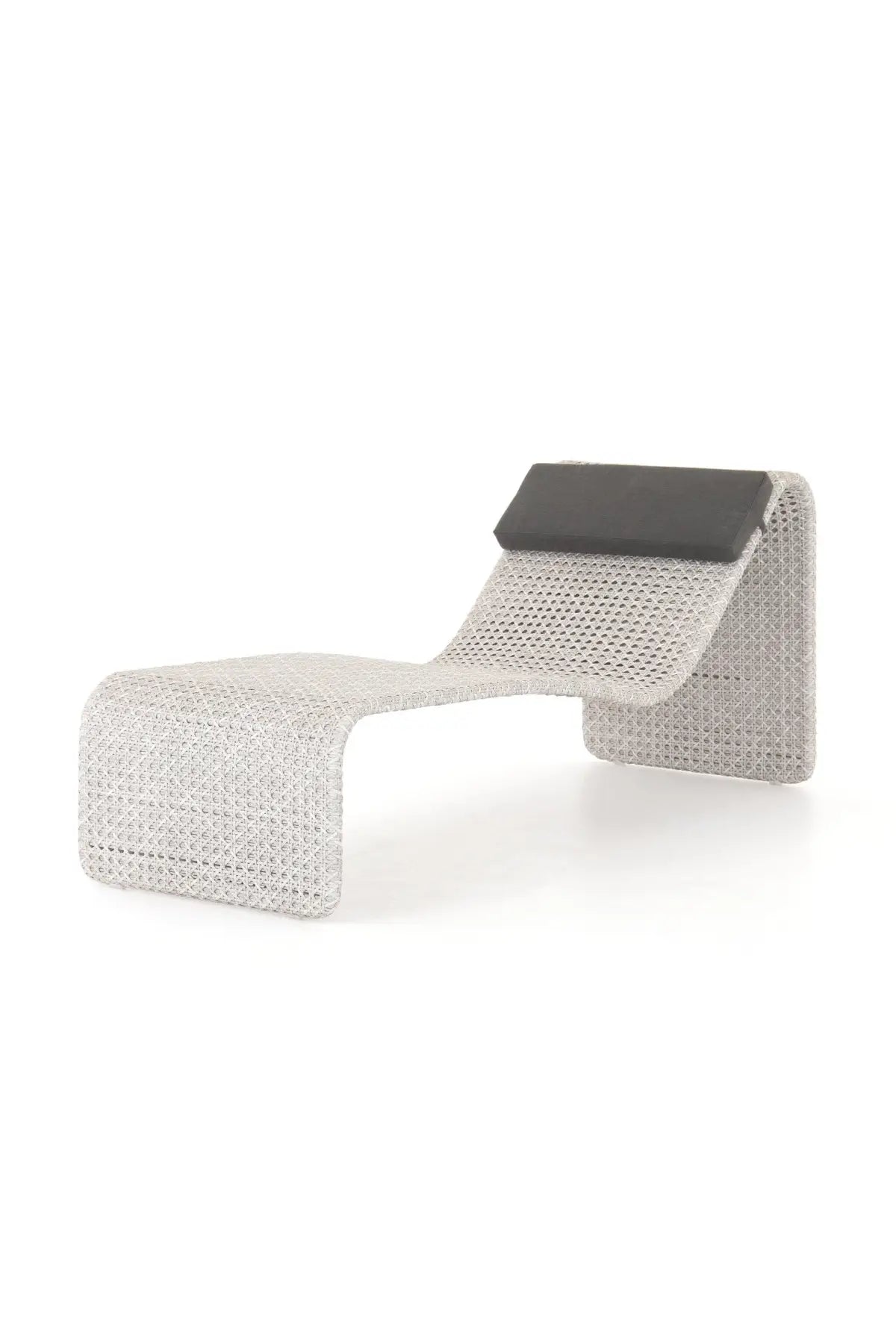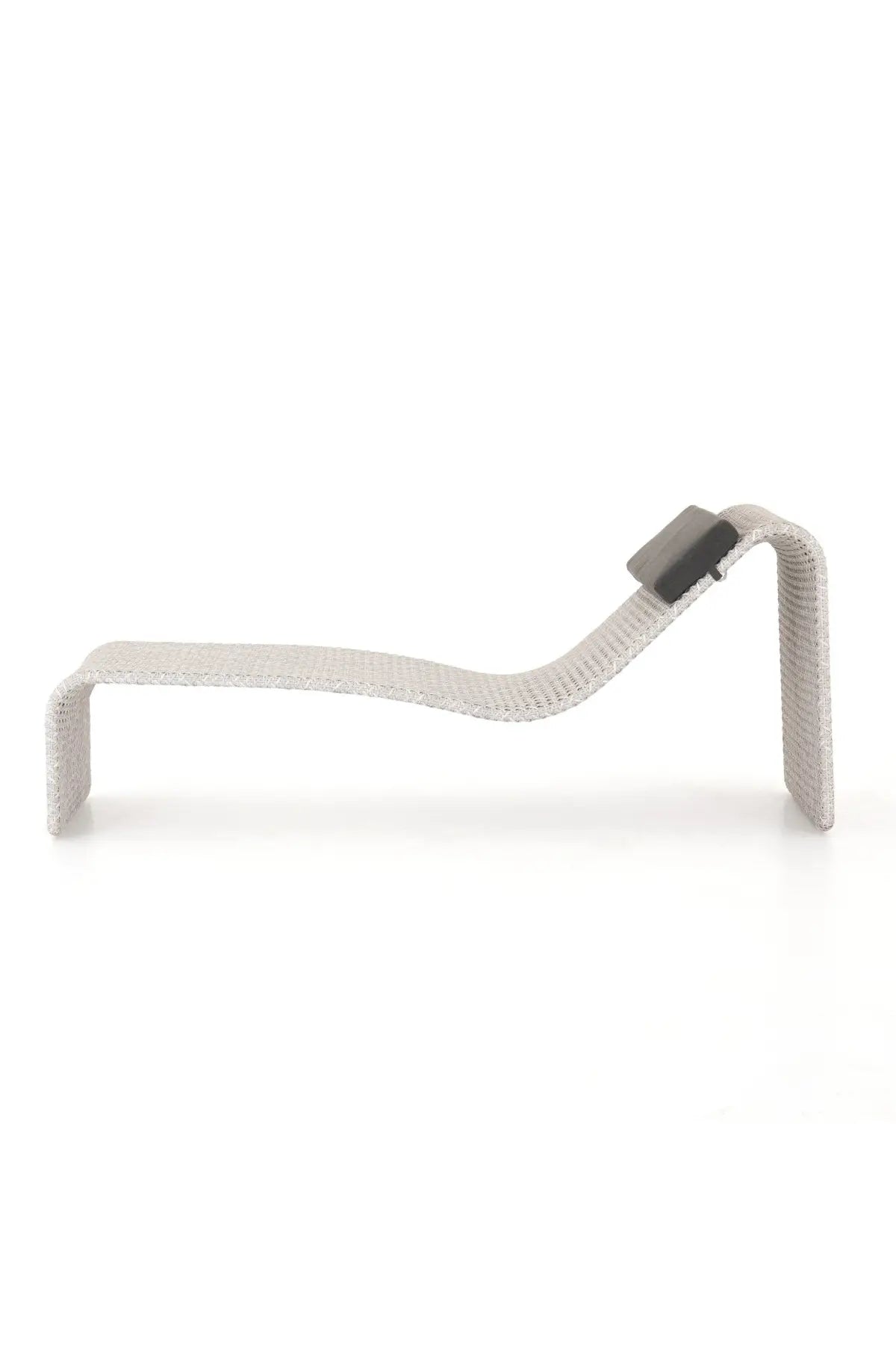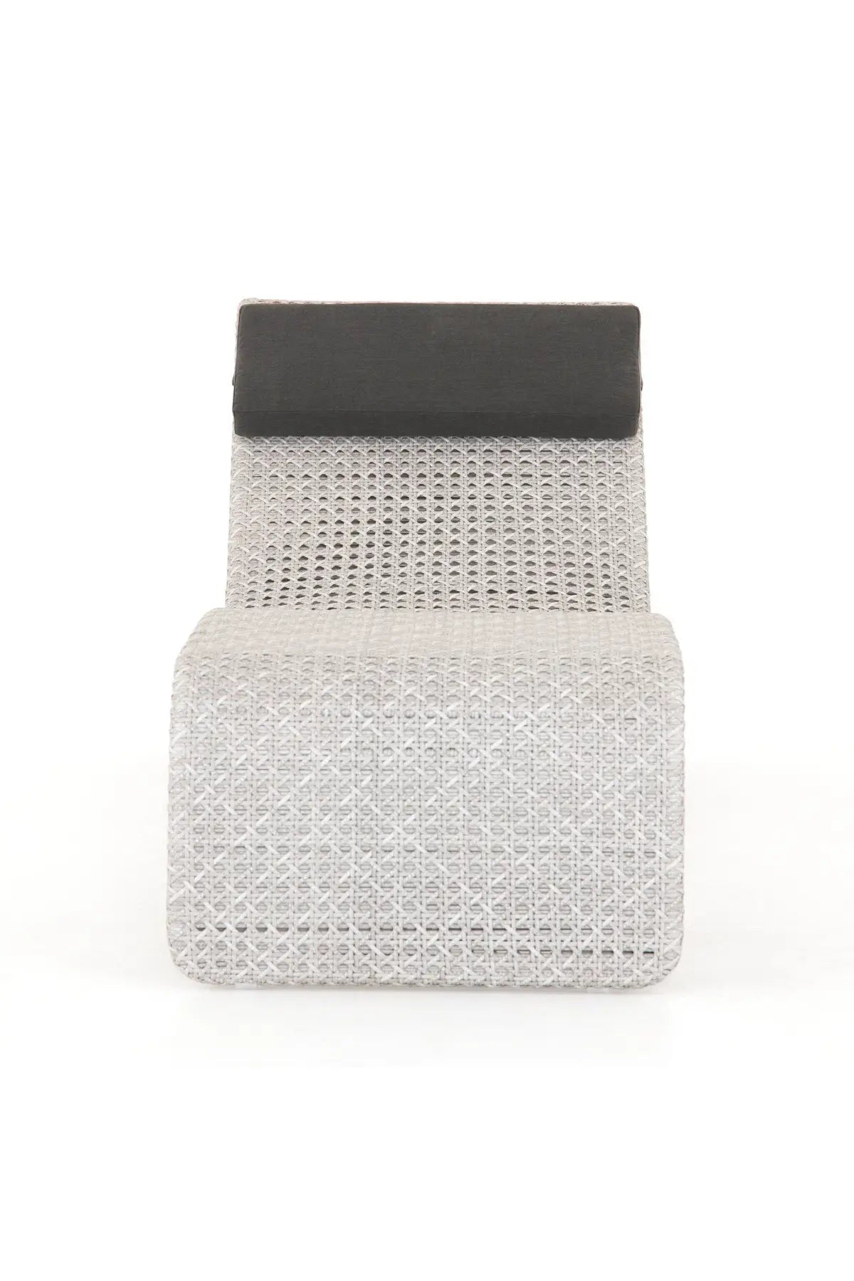 Meet the Paige Outdoor Woven Chaise is ahead of the curve. Finished in a light brushed grey, a woven chaise with a detachable pillow is prime for outdoor lounging. Cover or store inside during inclement weather and when not in use.