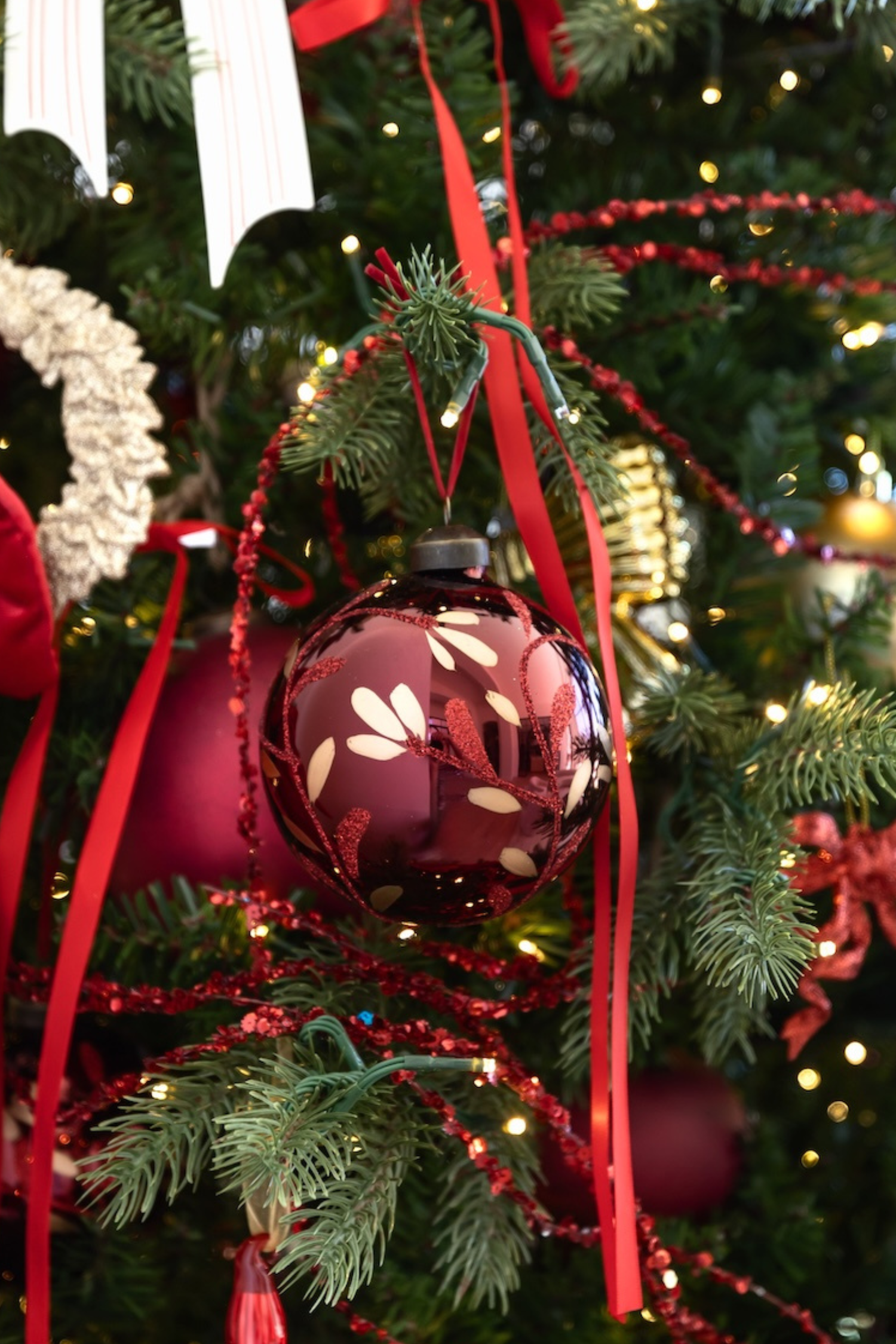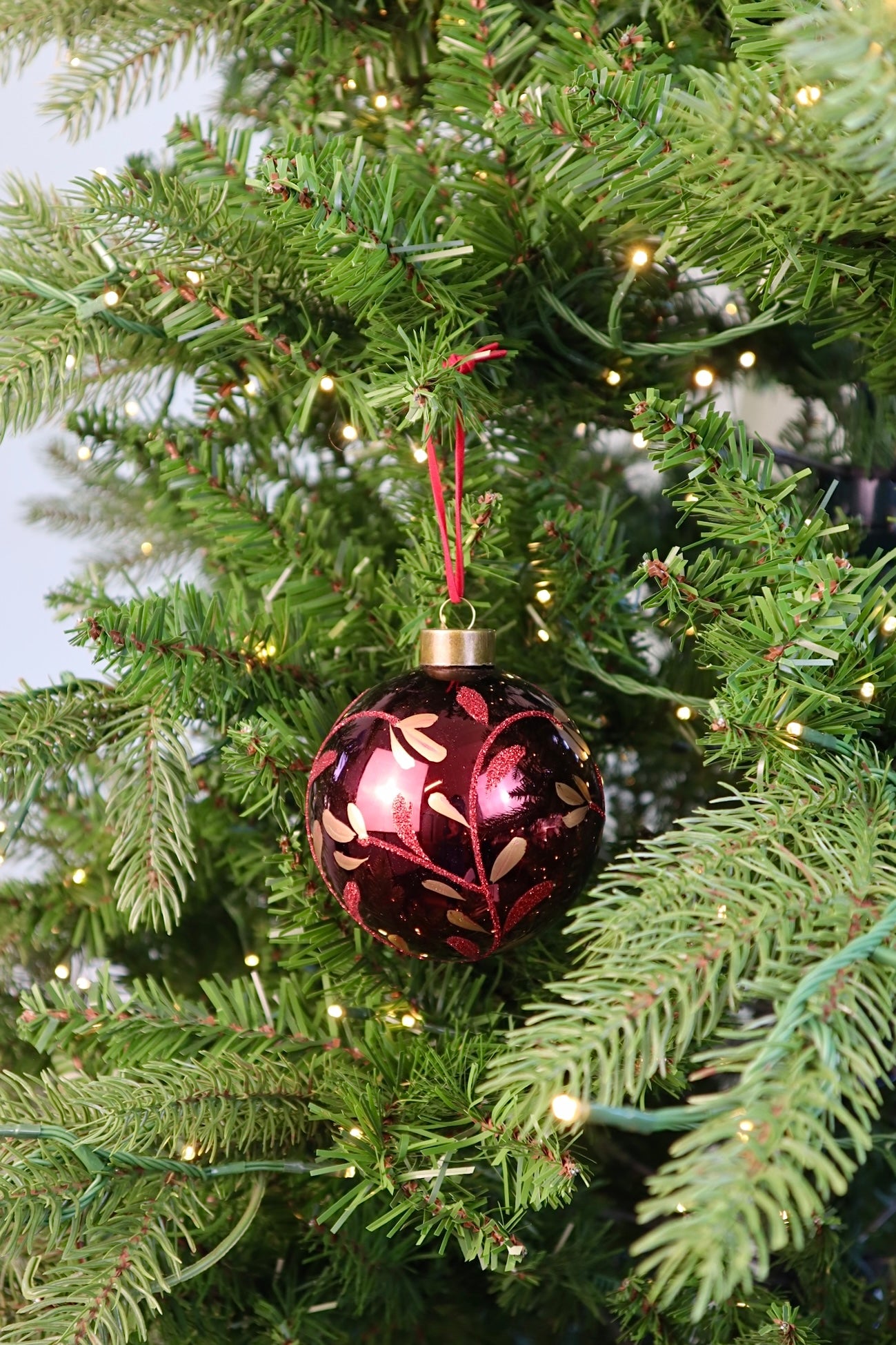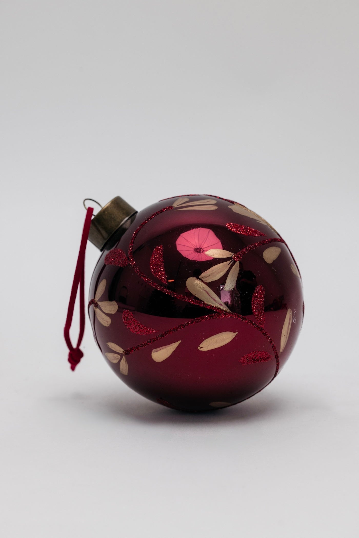 The Painted Leaf Ornament is sure to make an impact! Beautiful, subtle gold and red glitter etched detail that catches the eye. Adds dimension that you will never tire of!