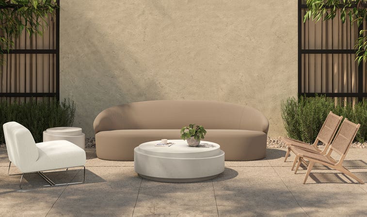 Exuding understated elegance, the low-profile design of the Palma Outdoor Lounge Chair blends a solid teak frame with all-weather wicker. Touched by a sleek warm brown finish, the durable frame cradles a seat and back woven from UV and weather-resistant faux hyacinth.