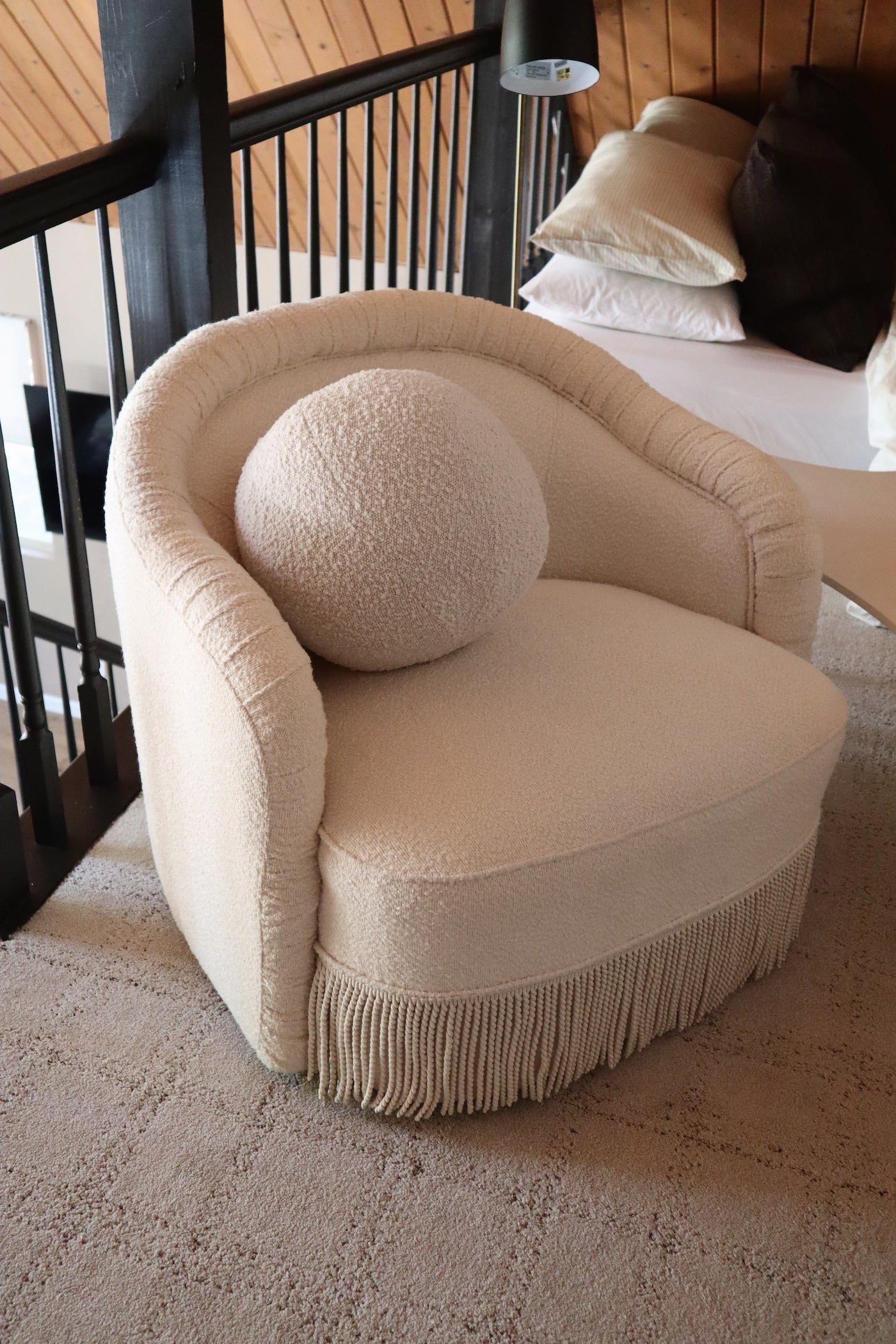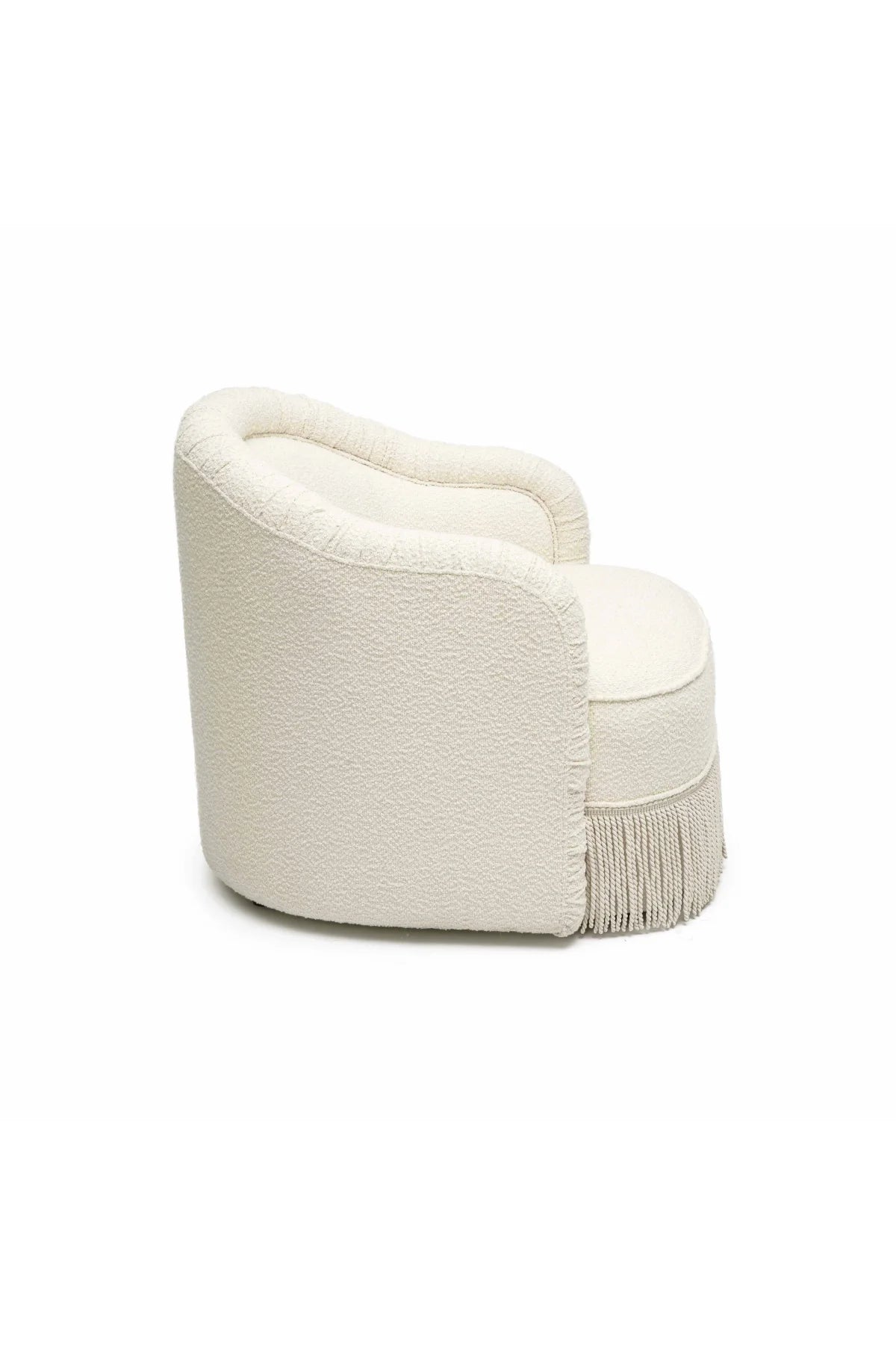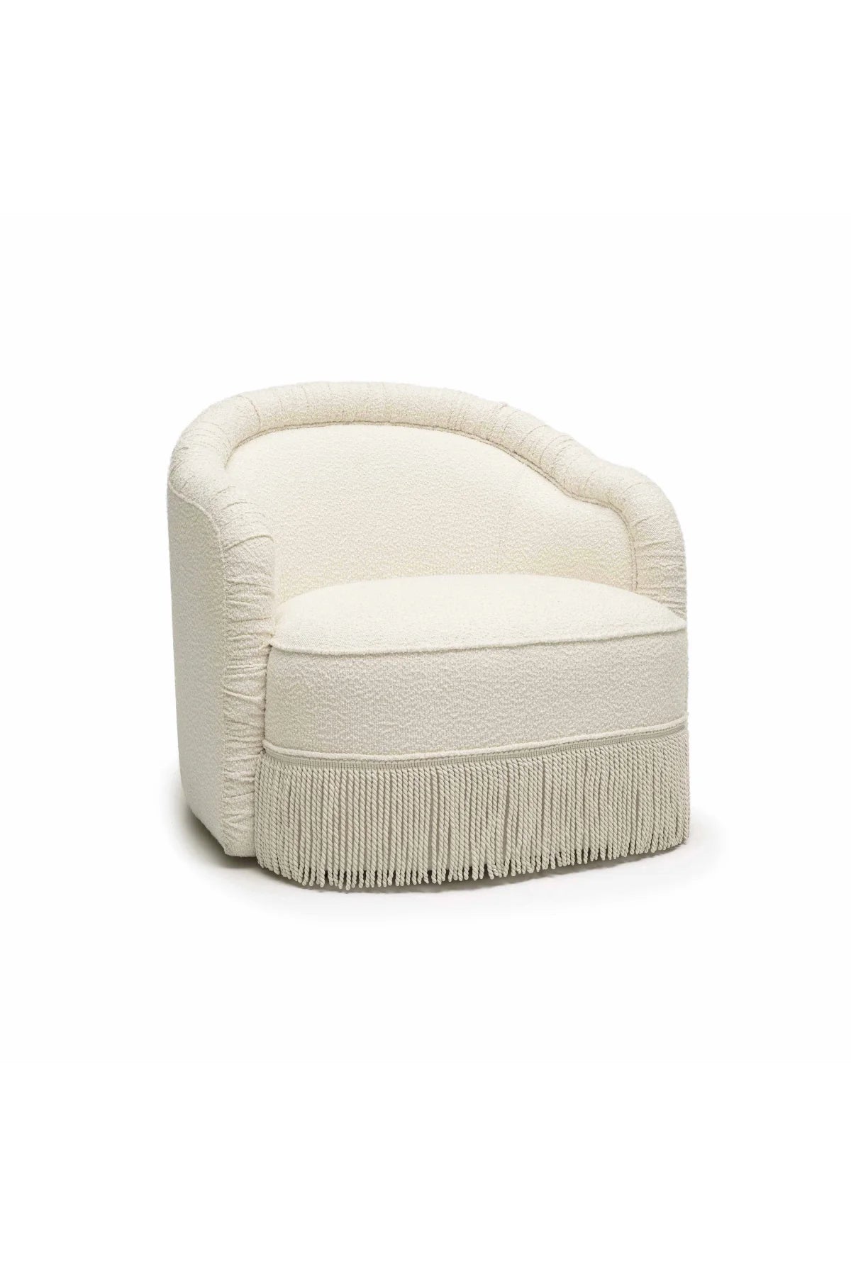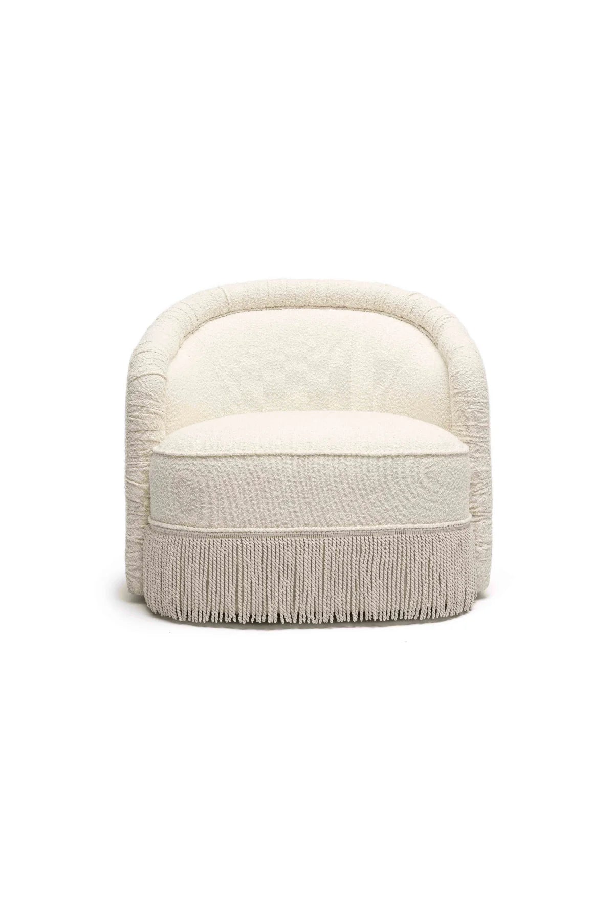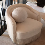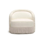 Meet the Pamela Tassel Lounge Chair. This sumptuous armchair boasts exquisite English ruched pleating, accented with high-end tassels that add the perfect decorative element to your space. Its incredibly comfortable design beckons you to unwind and relax, reassured by the fact that its soft, textured appearance is crafted from commercial-grade, environmentally-friendly fabrics made from upcycled plastic bottles.
