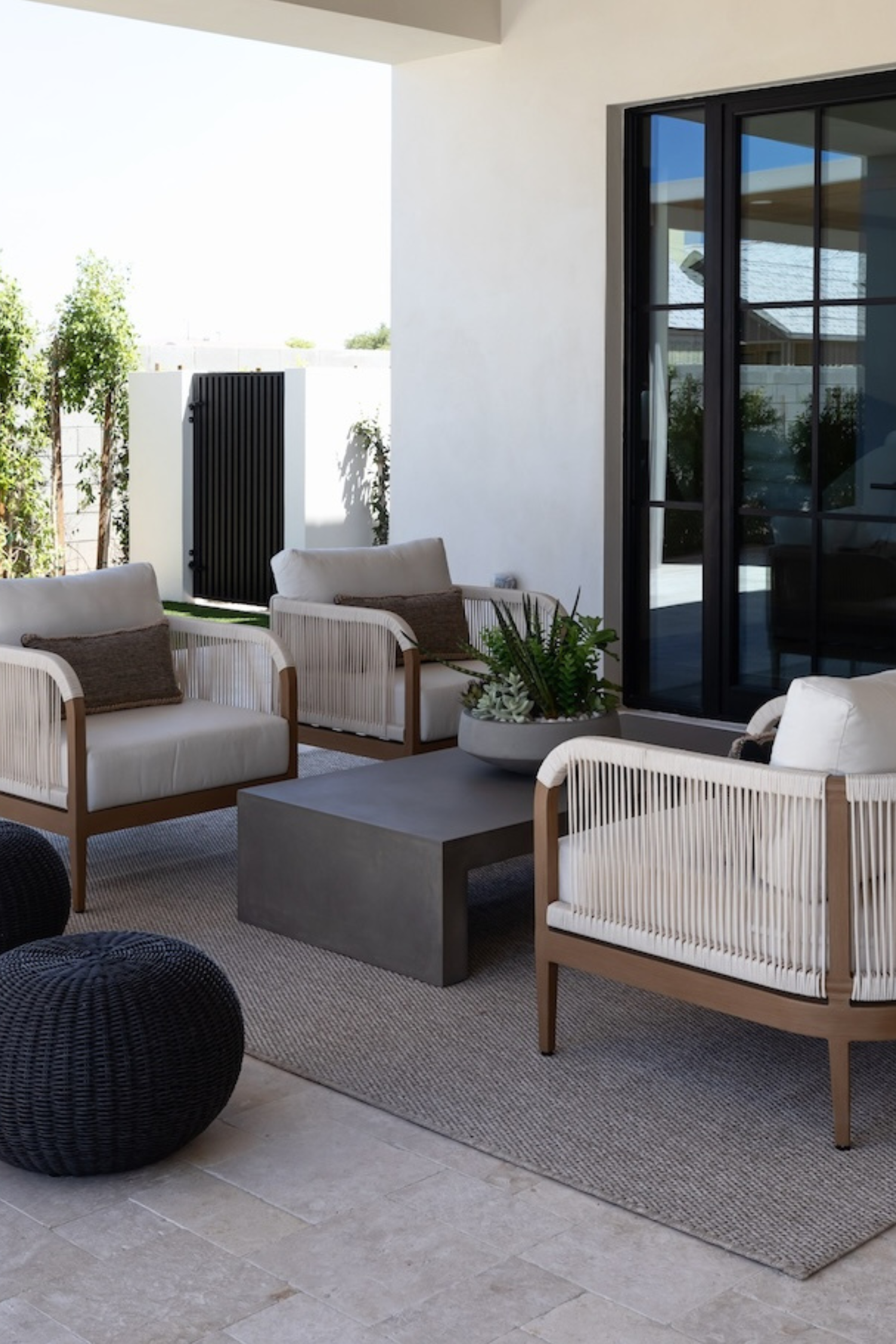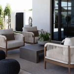 Meet the Parish Coffee Table. Industrial materials in smoothly refined shapes. Dark grey concrete forms a simple waterfall coffee table. Made for indoor or outdoor spaces - cover or store indoors during inclement weather and when not in use.