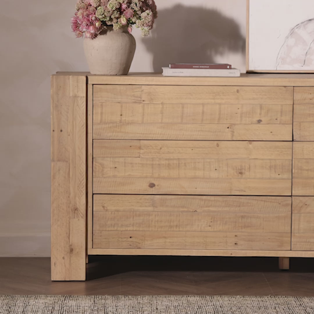 Meet the Perot 6 Drawer Dresser. Beauty in simplicity. A clean, spacious six-drawer dresser of blonde-finished pine can be styled into a wide range of styles thanks to its neutral versatility.