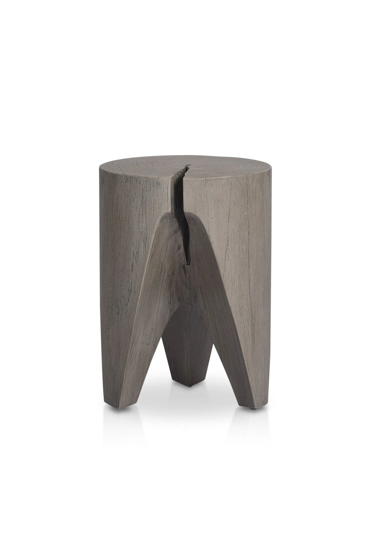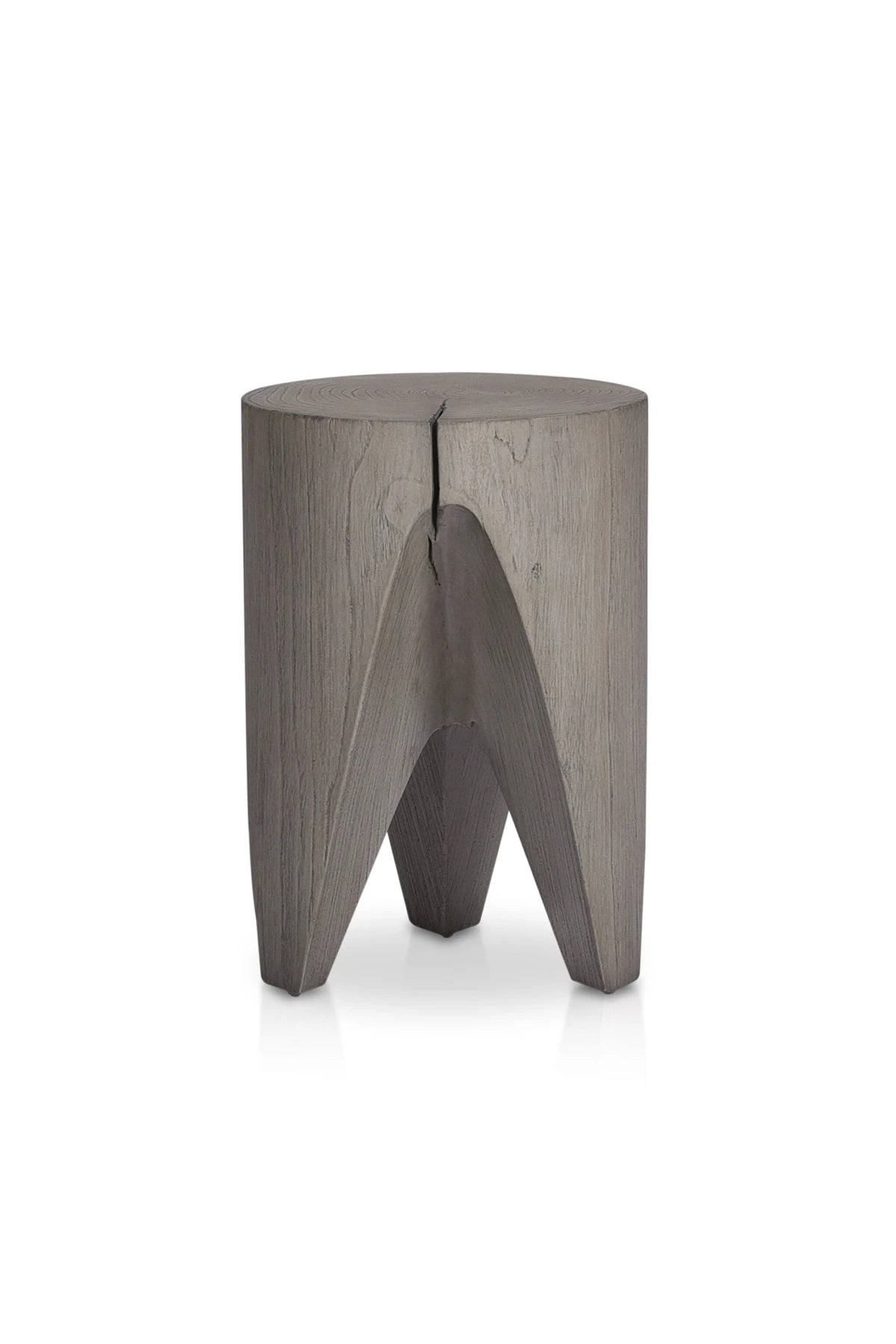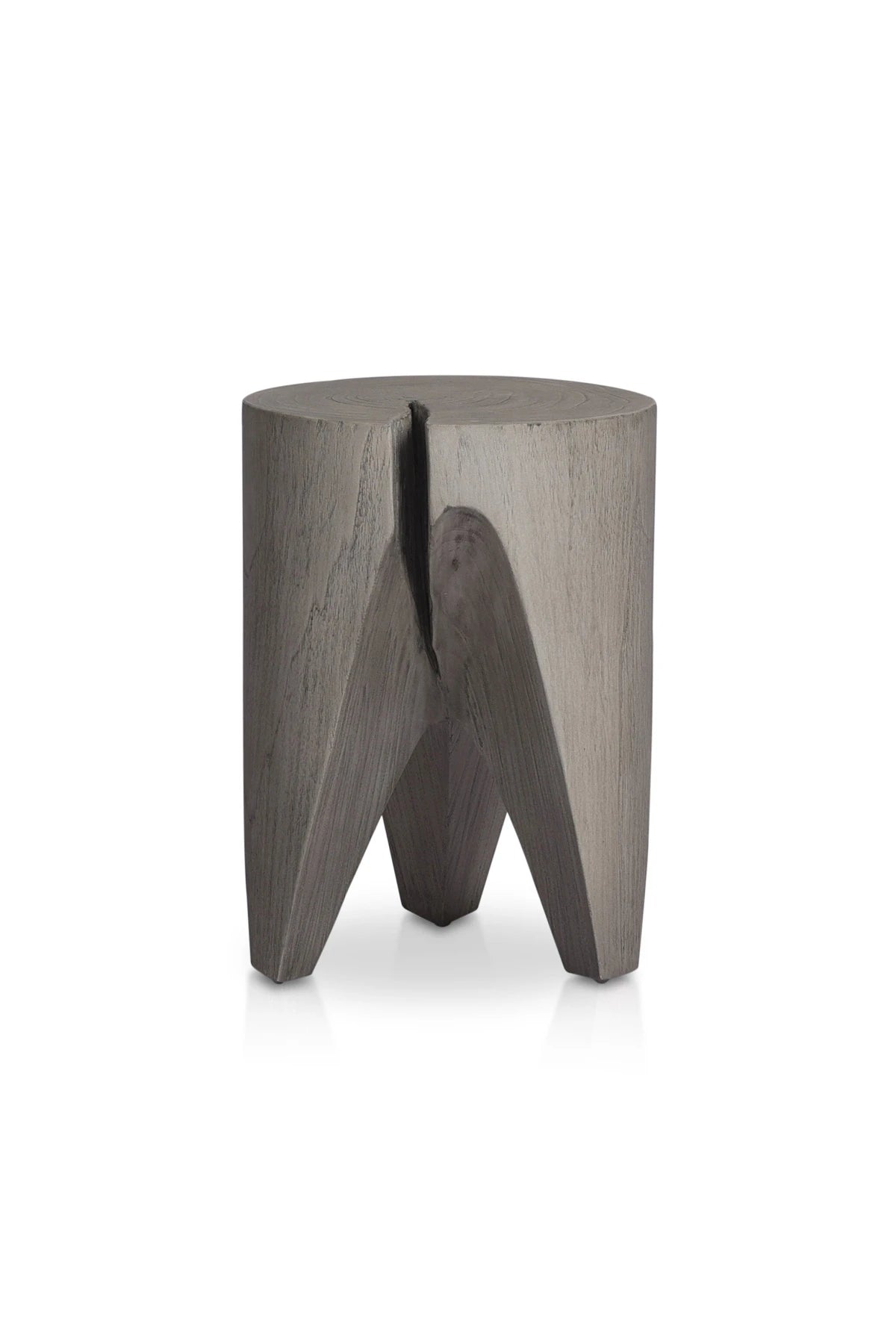 Meet the Petros Outdoor End Table. Organic style with a sculptural spin. Made from grey-finished teak, a beautifully carved three-leg end table provides the perfect place to perch a drink or book, indoors or out. Variances in the wood are normal and to be expected.
