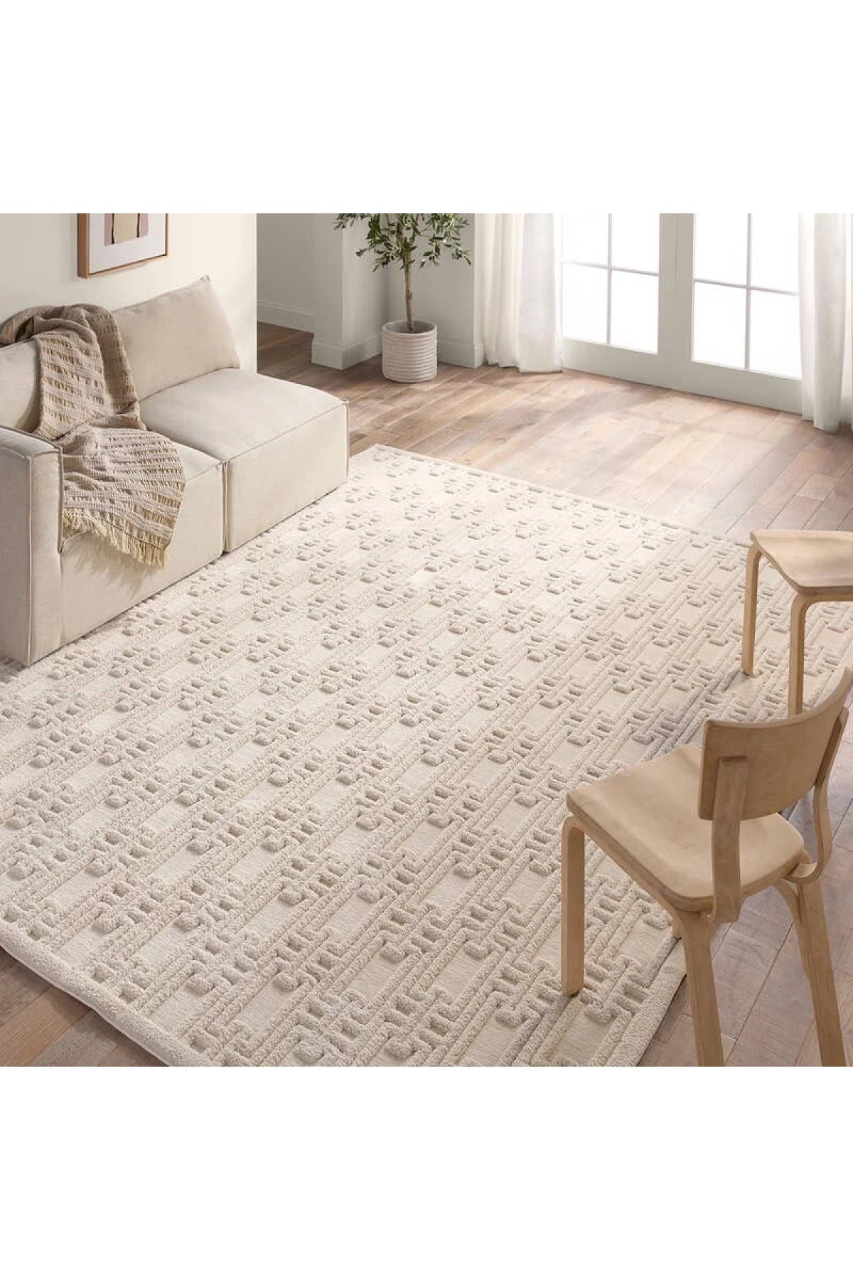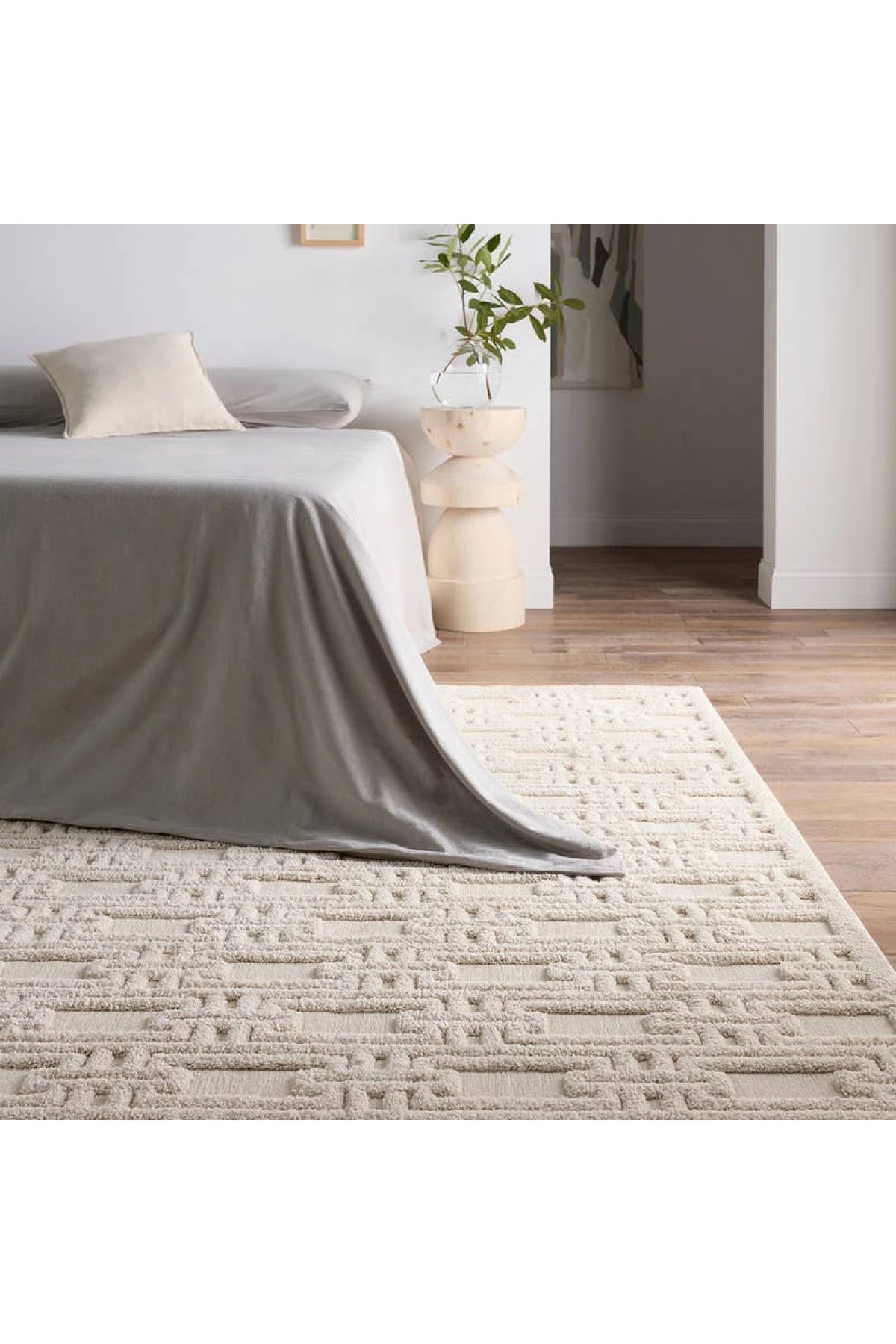 The Petros Rug features a lavishly soft feel and unique high-low pile. Crafted in Turkey with a polyester and chenille blend, this plush area rug thrives in low traffic spaces of the home such as bedrooms and formal living rooms. Samples are modeled at our North Scottsdale/Phoenix location.