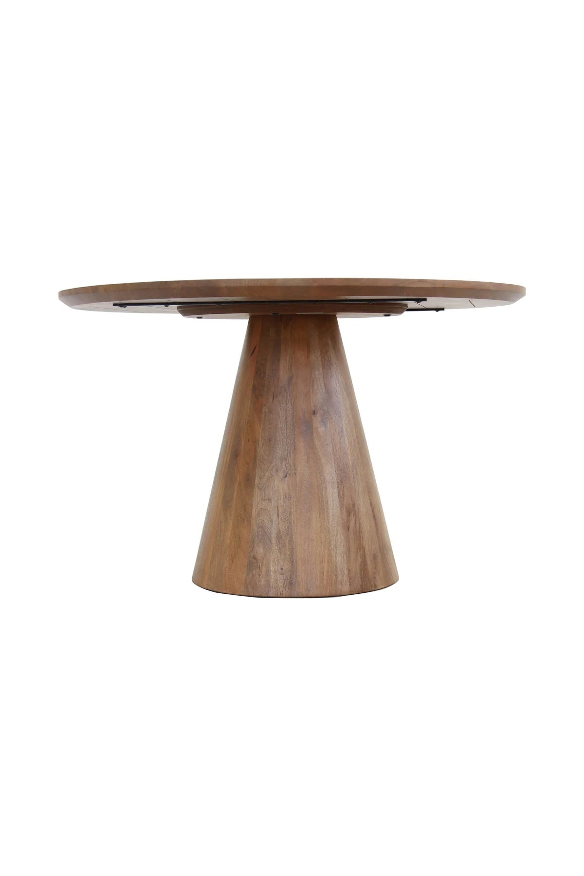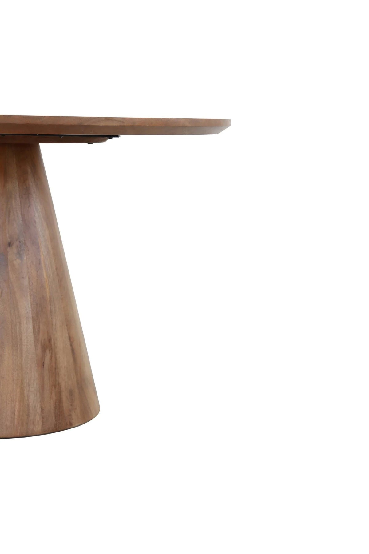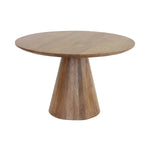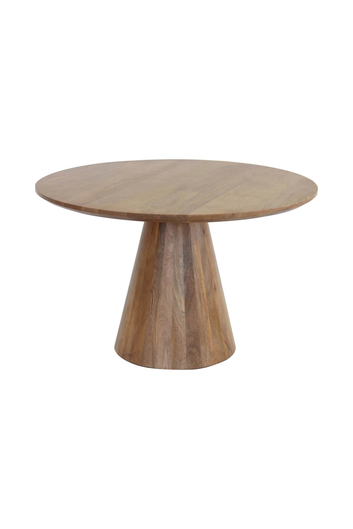 Meet the Peyton Dining Table. This round dining table, crafted from solid wood, combines elegance with durability. Its timeless design makes it a perfect centerpiece for any dining room. Ideal for gatherings, this table enhances your dining space with its natural beauty and sturdy construction.
