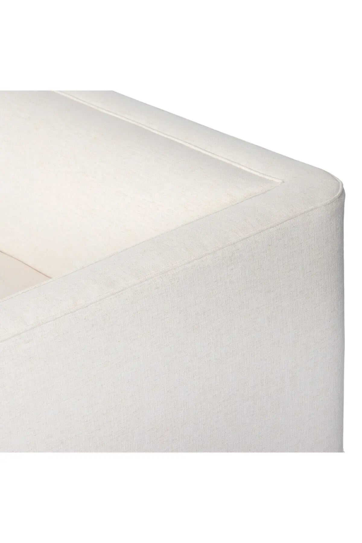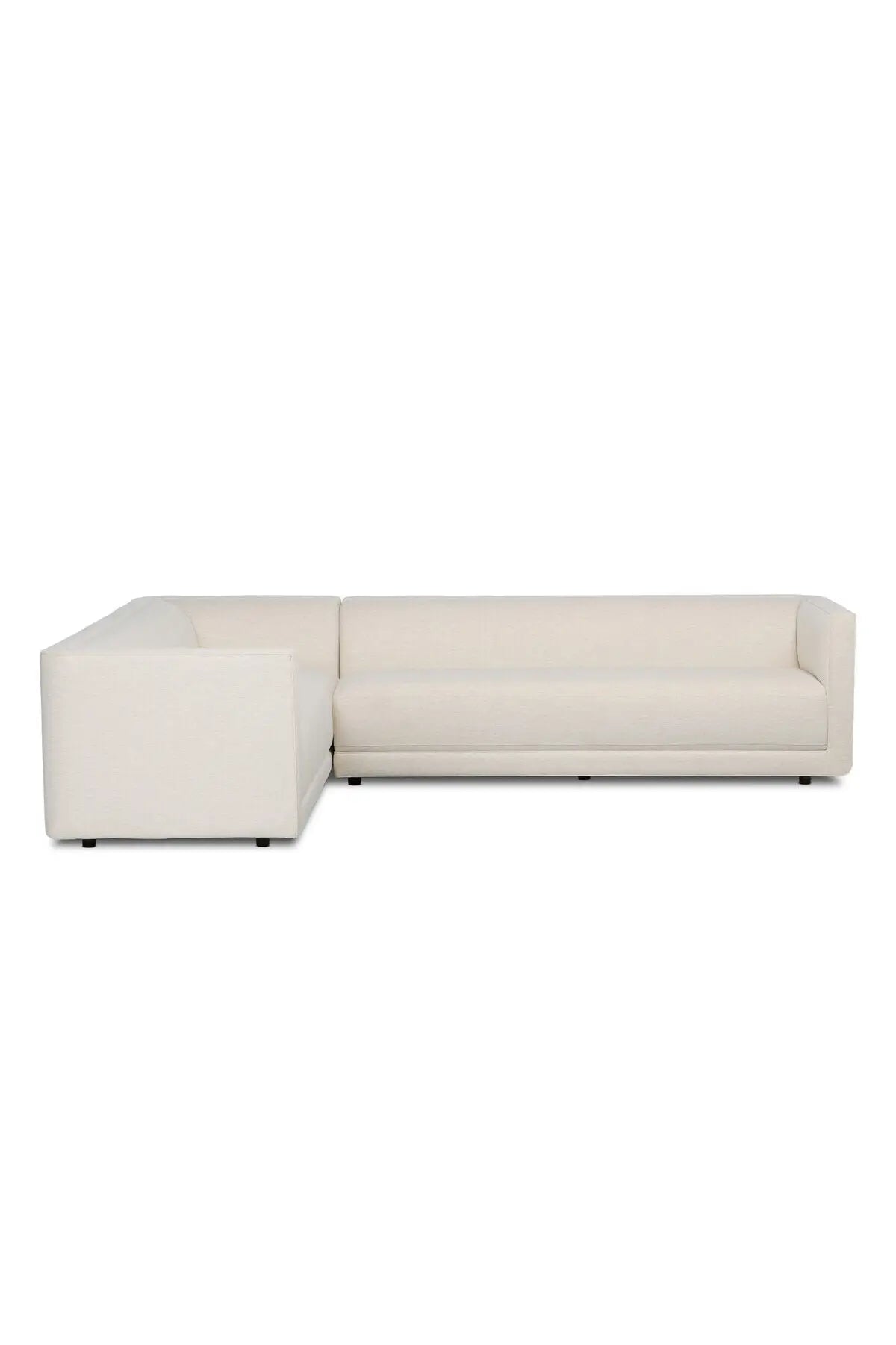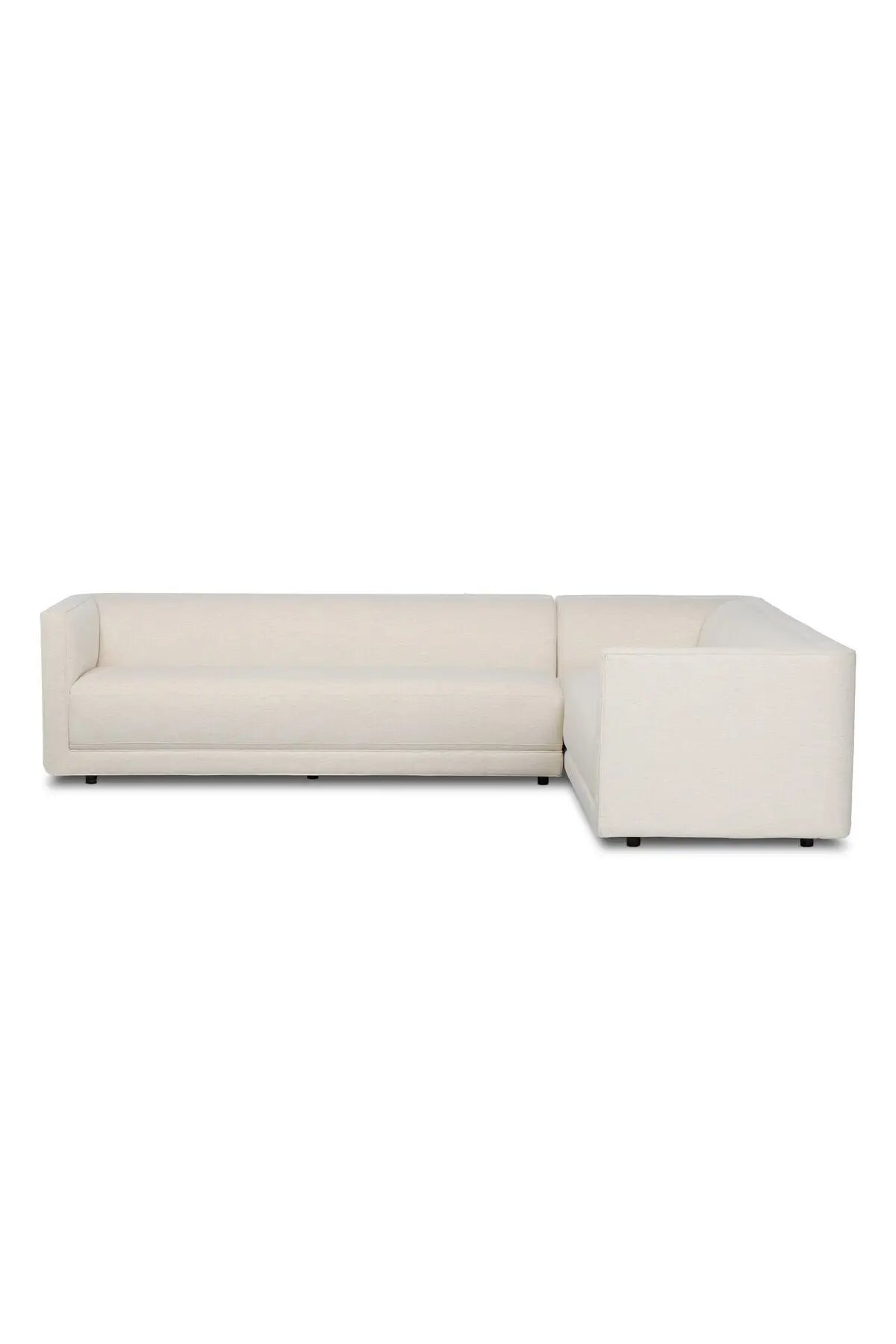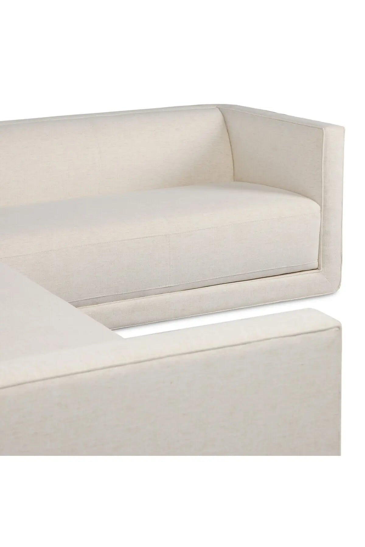 Meet the Phillip 2-Piece Sectional. A clean, angular sectional in an eye-catching color. Upholstered in an olive cotton blend, with blind stitching along the seat and back cushions. The slight pronounced seat cushion creates an illusion of being loose, but is actually a fixed cushion with expert tailoring. A piping channel detail gives the arm a finished look.