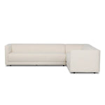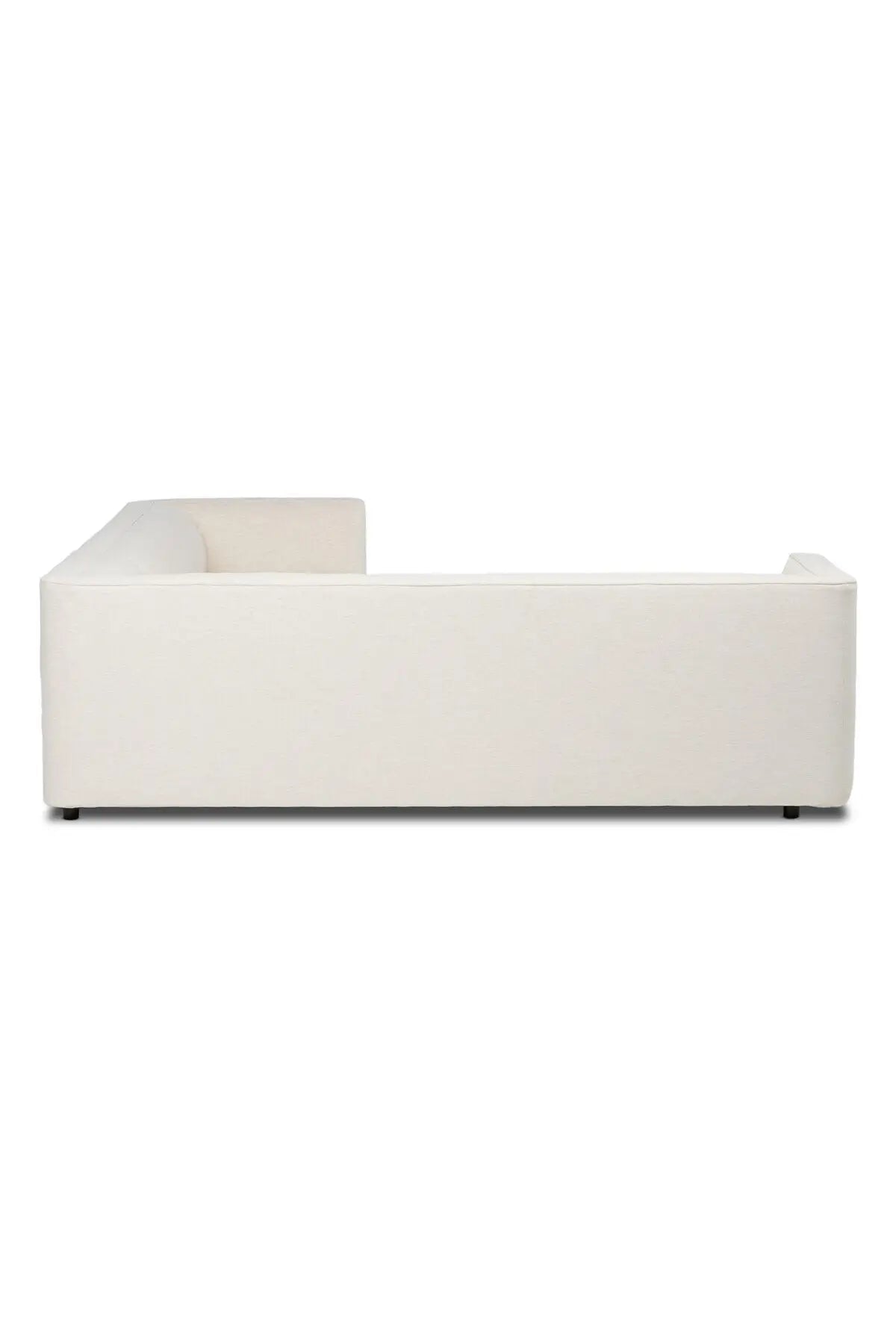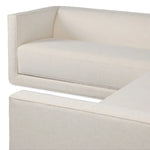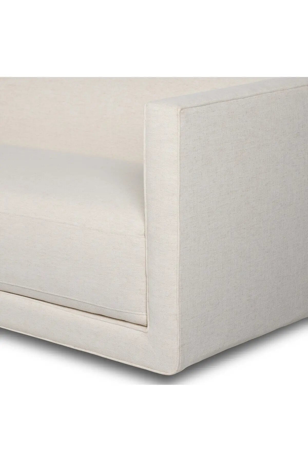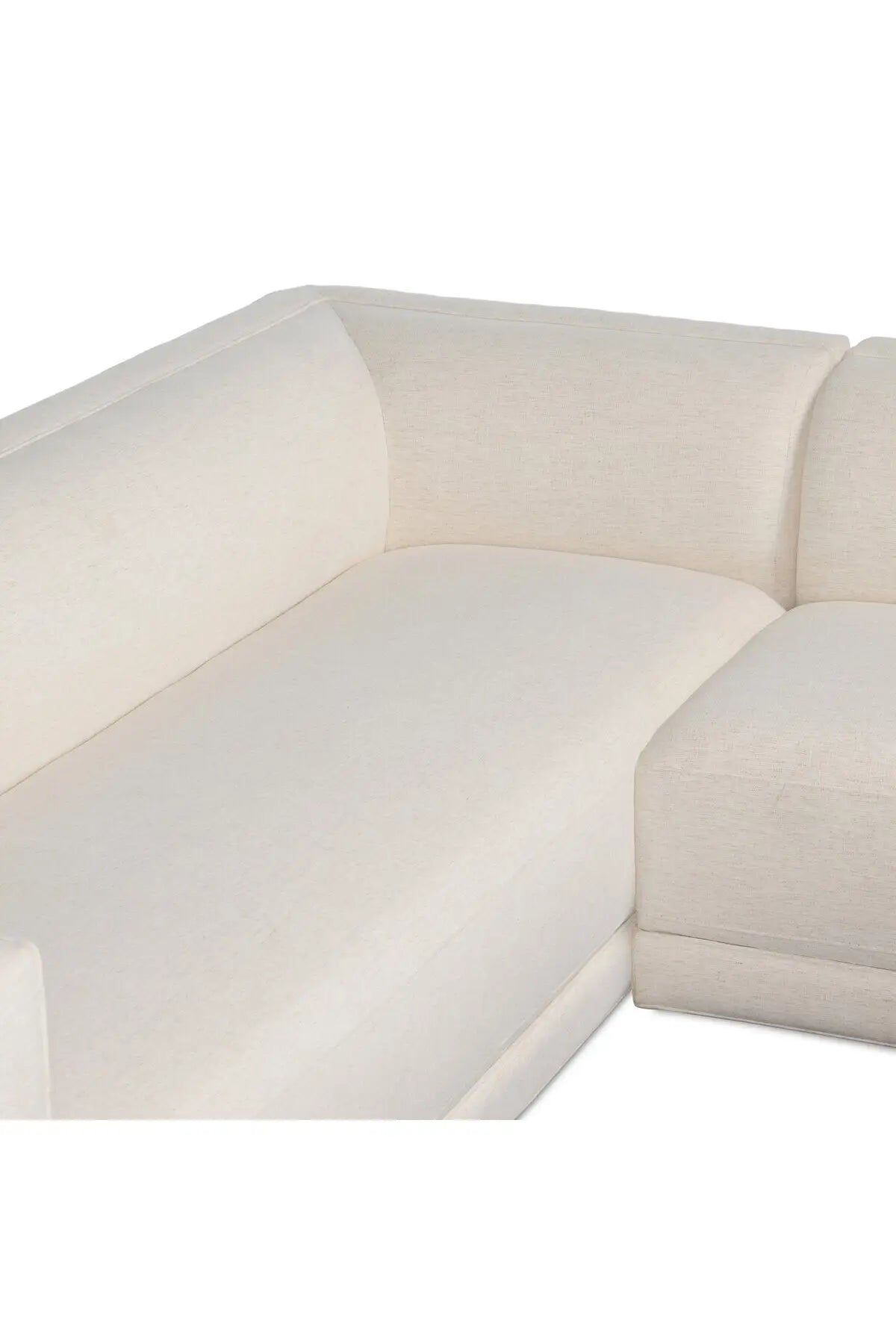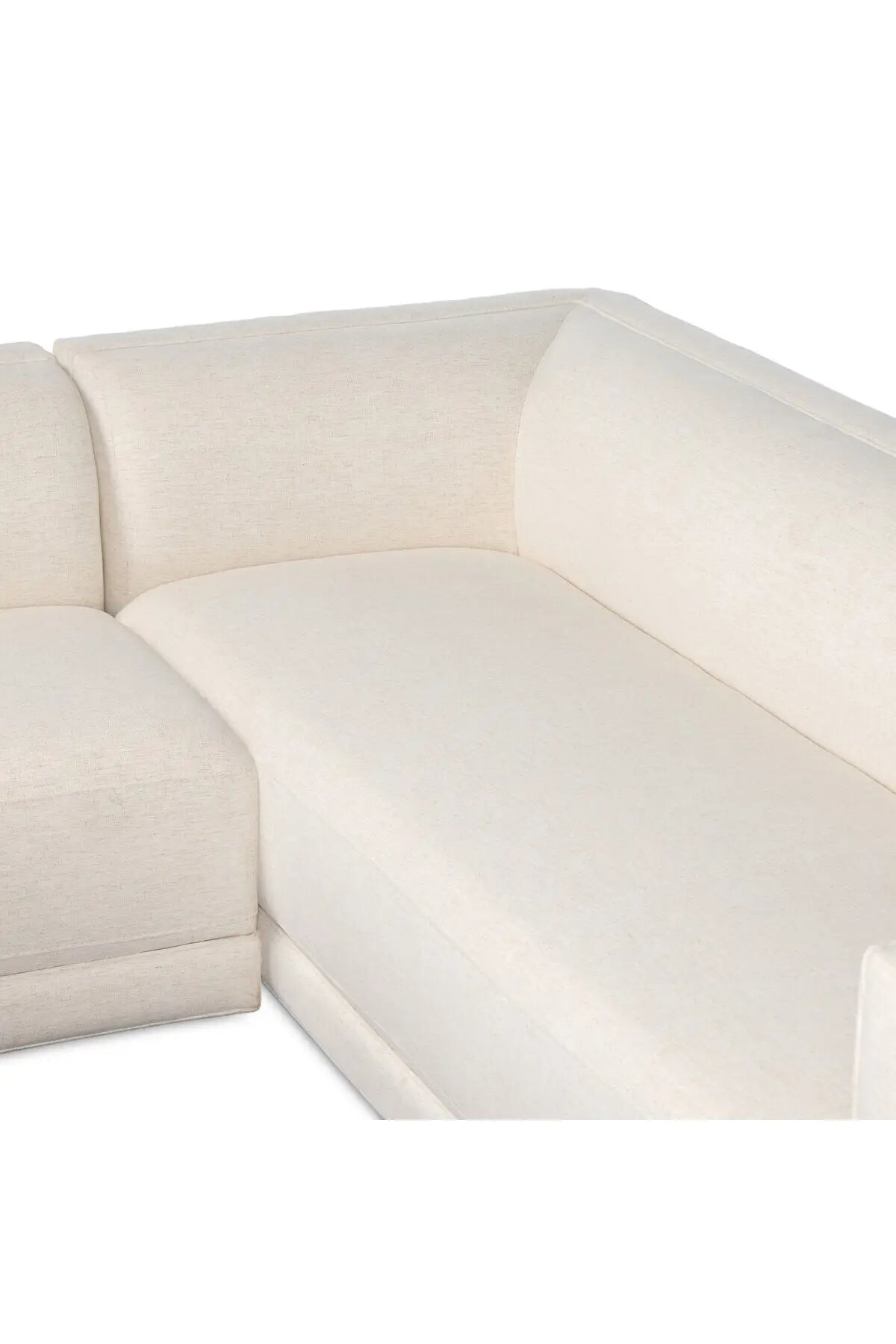 Meet the Phillip 2-Piece Sectional. A clean, angular sectional in an eye-catching color. Upholstered in an olive cotton blend, with blind stitching along the seat and back cushions. The slight pronounced seat cushion creates an illusion of being loose, but is actually a fixed cushion with expert tailoring. A piping channel detail gives the arm a finished look.