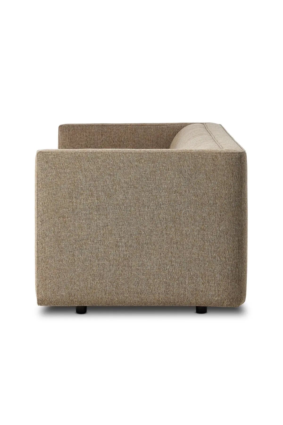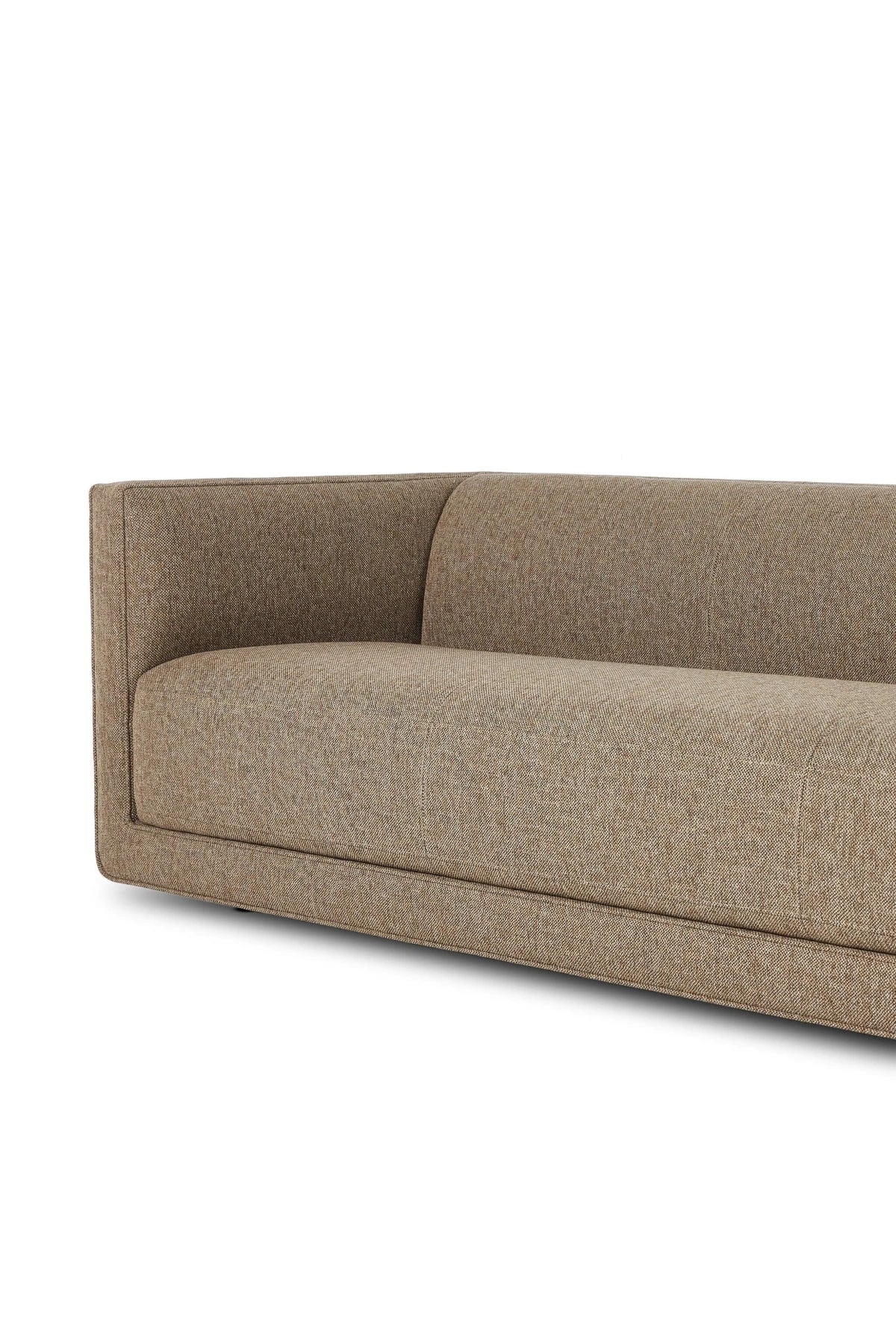 Meet the Phillip Sofa. Style meets substance in this sleek sofa upholstered in high-performance fabric. Blind stitching along the seat and back cushions create a polished complement to the heritage frame. The slight pronounced seat cushion creates an illusion of being loose, but is actually a fixed cushion with expert tailoring.
