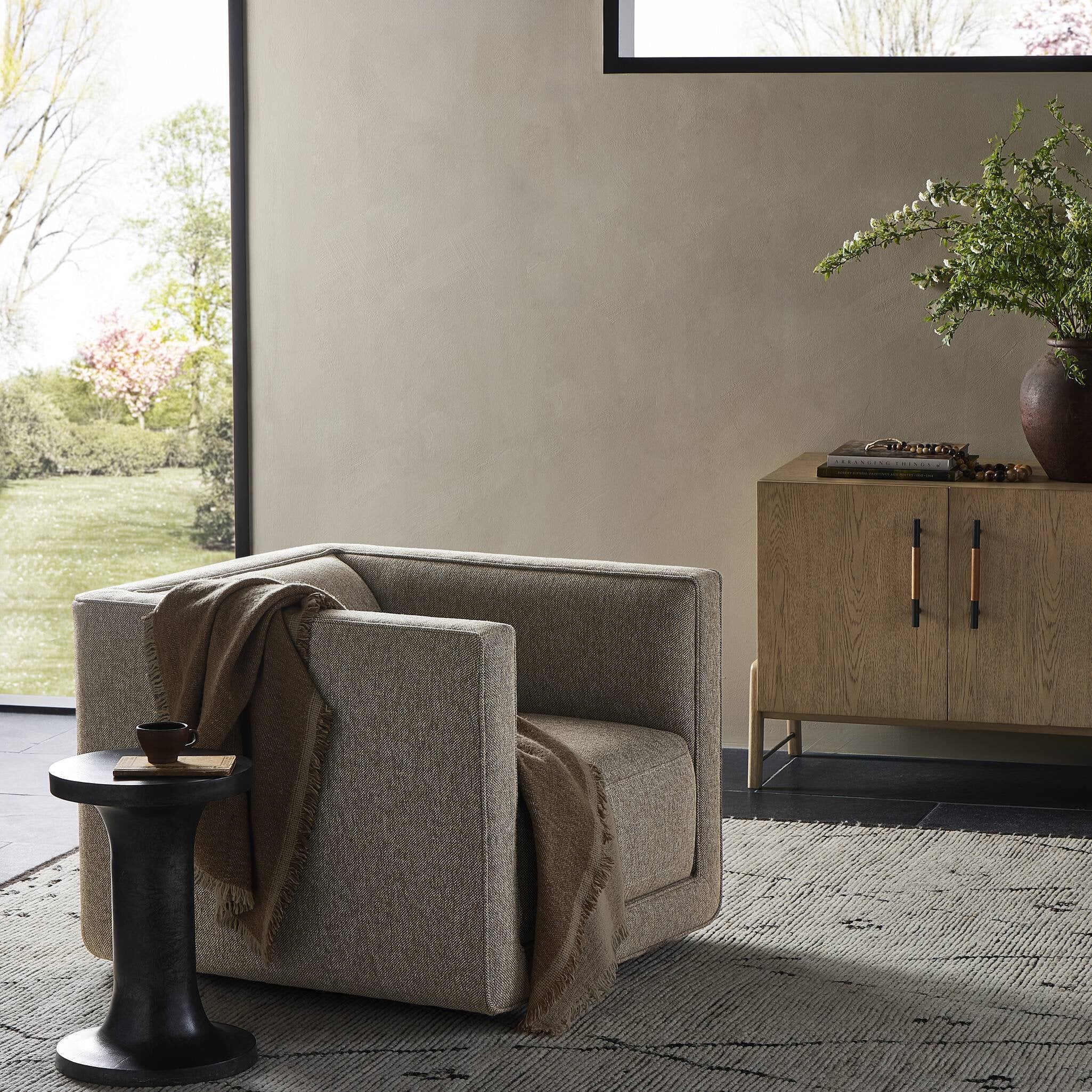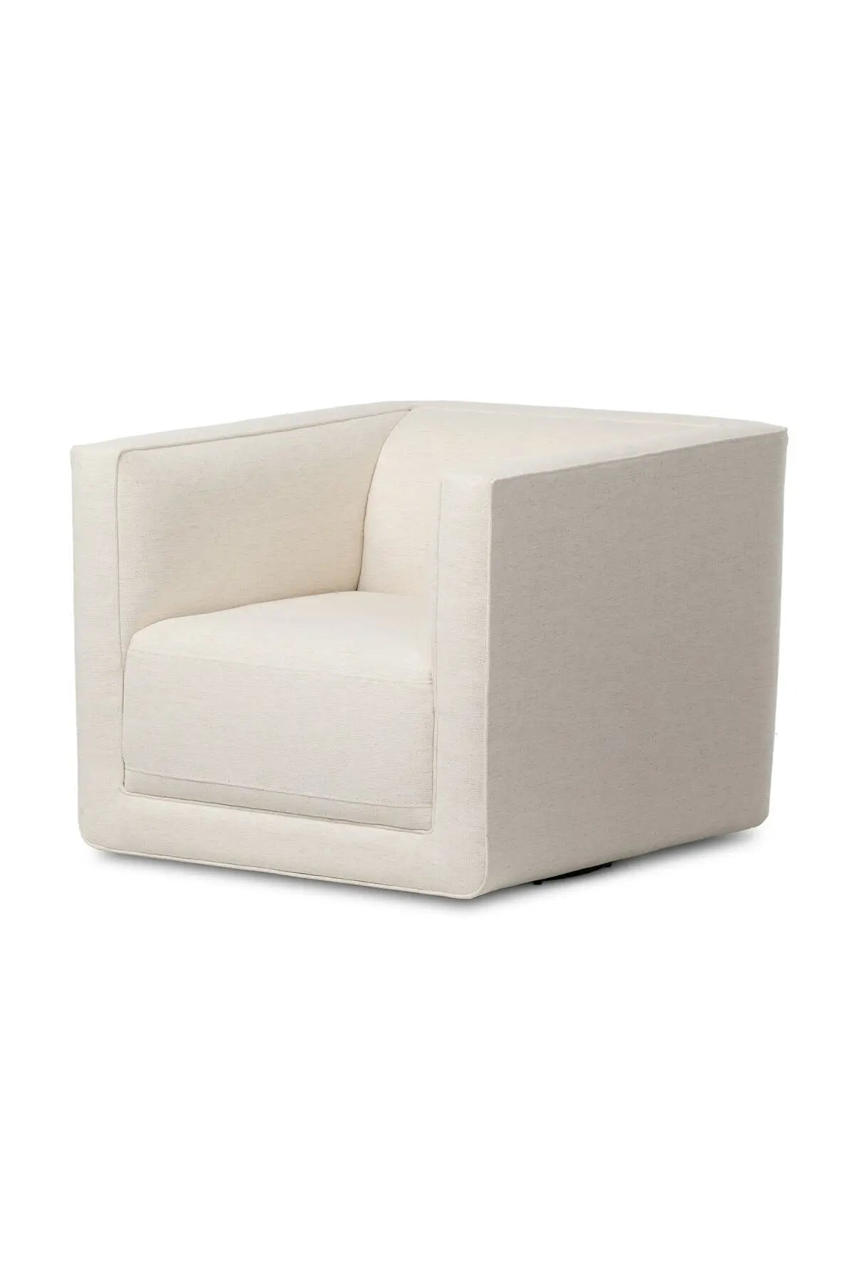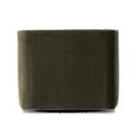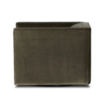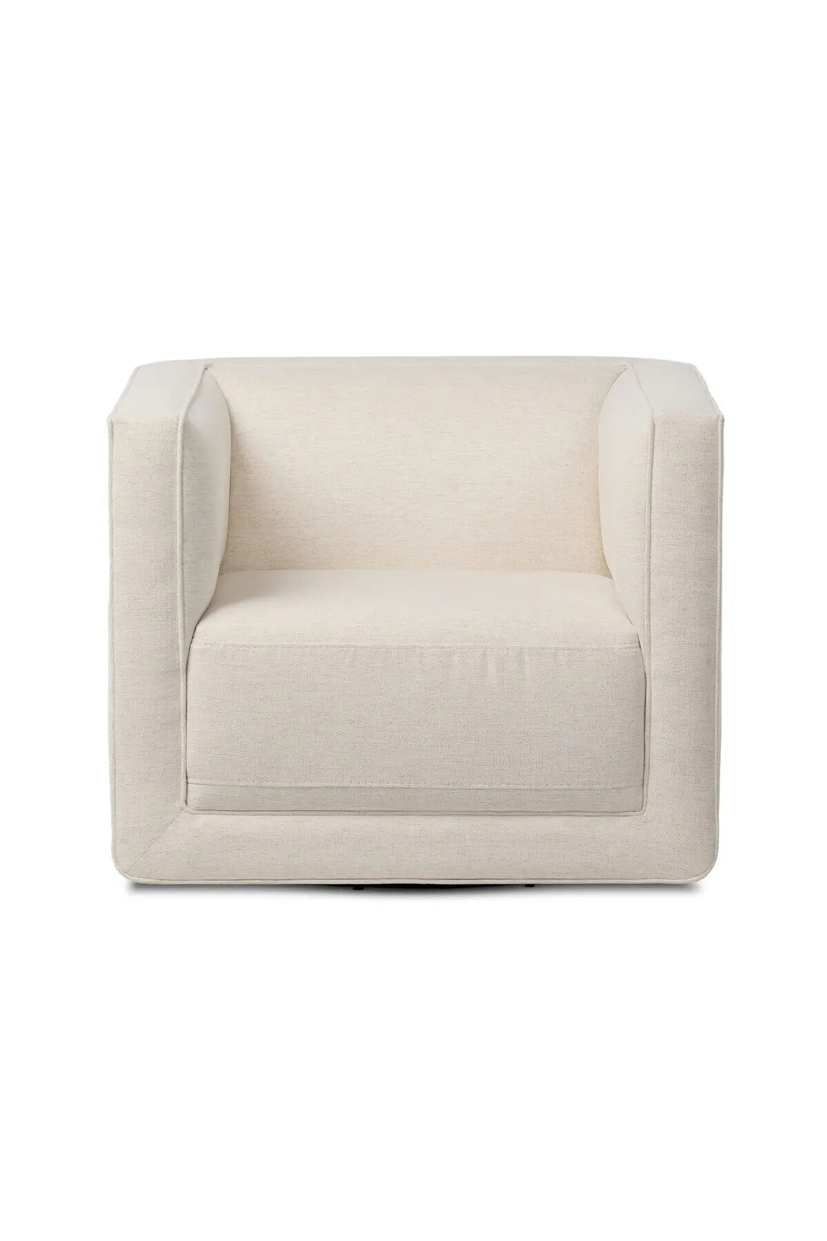 Meet the Phillip Swivel Chair. Style meets substance in this olive cotton-blend swivel chair. Blind stitching along the seat and back cushions create a polished complement to the heritage frame. The slight pronounced seat cushion creates an illusion of being loose, but is actually a fixed cushion with expert tailoring. A piping channel detail gives the arm a finished look.