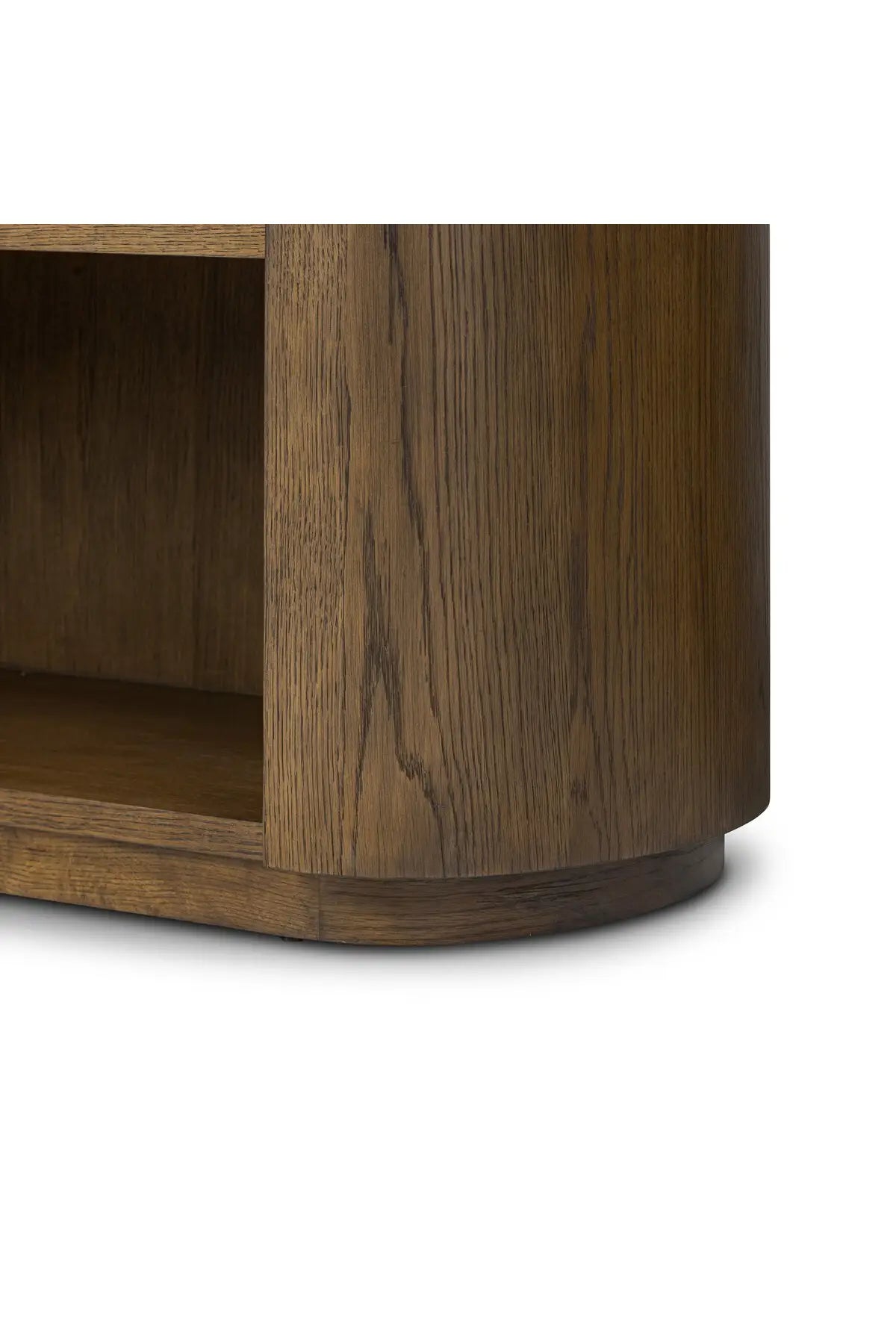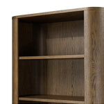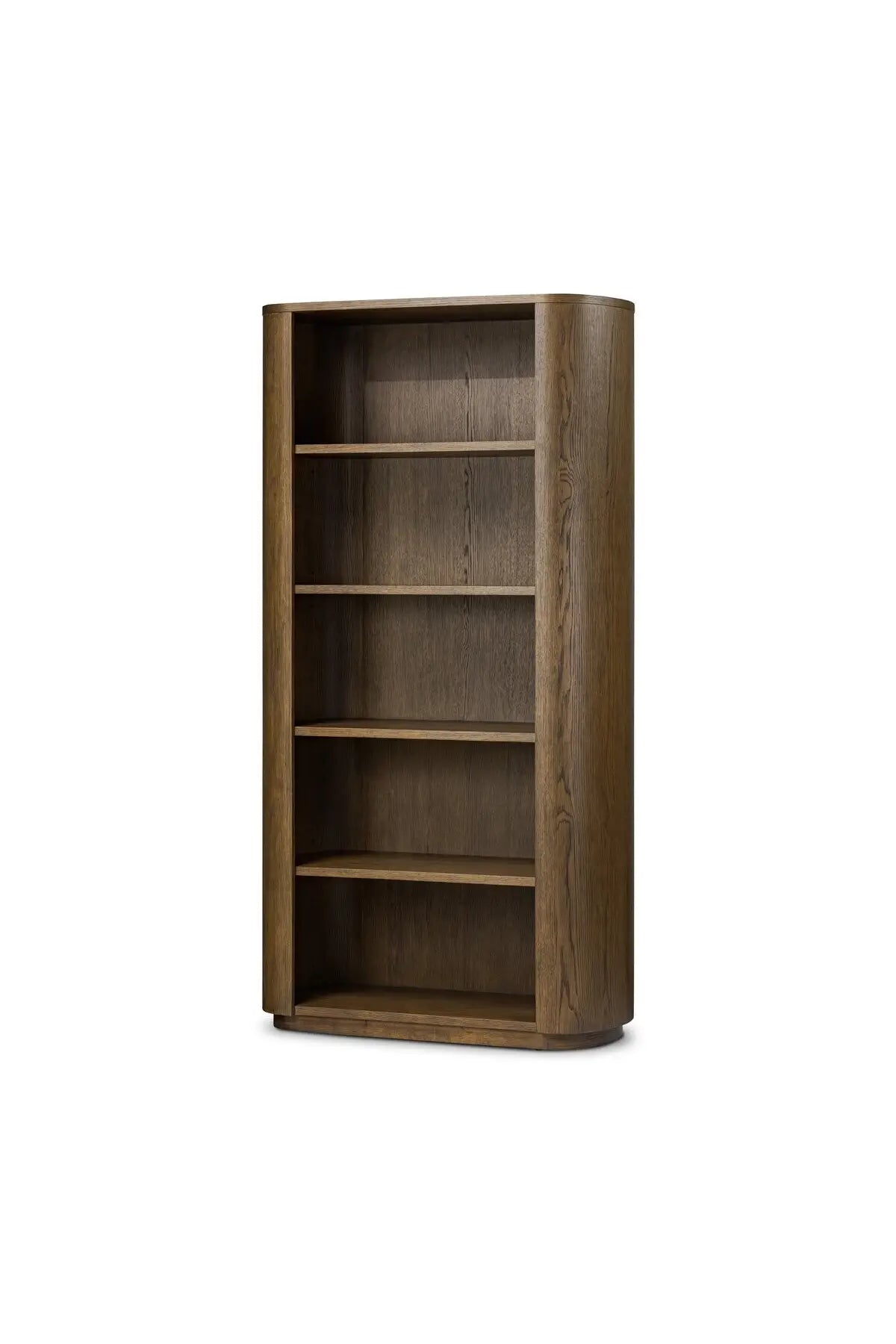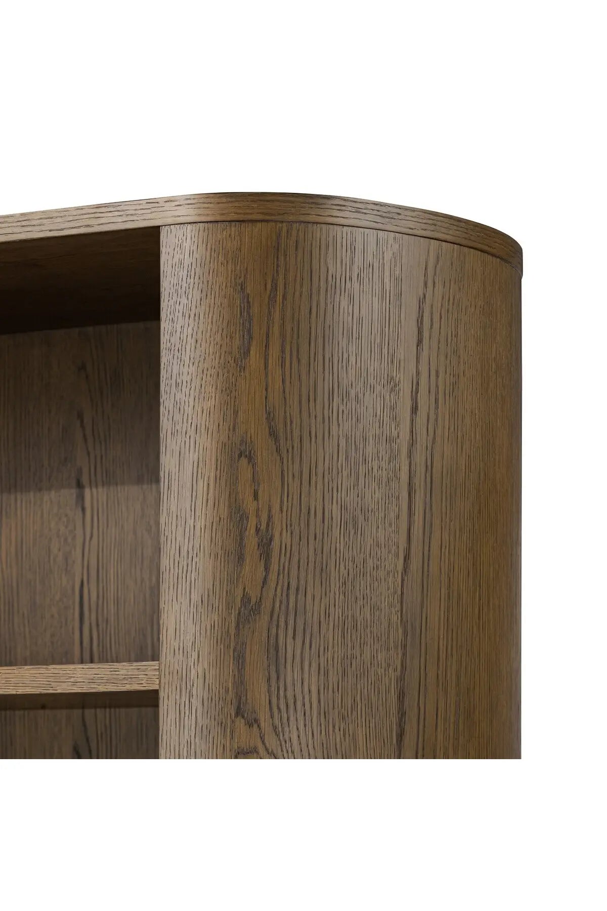 Meet the Pilar Bookcase. With half-cylinder sides inspired by Eighties design, oak works warmth into any room in your home. Spacious shelves create endless storage and display options for favorite books and keepsakes.