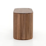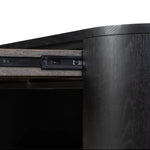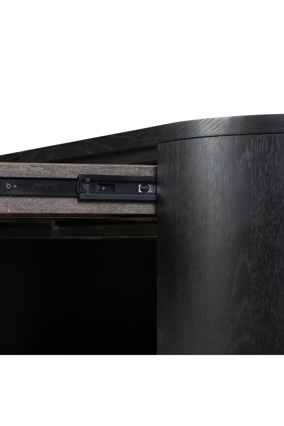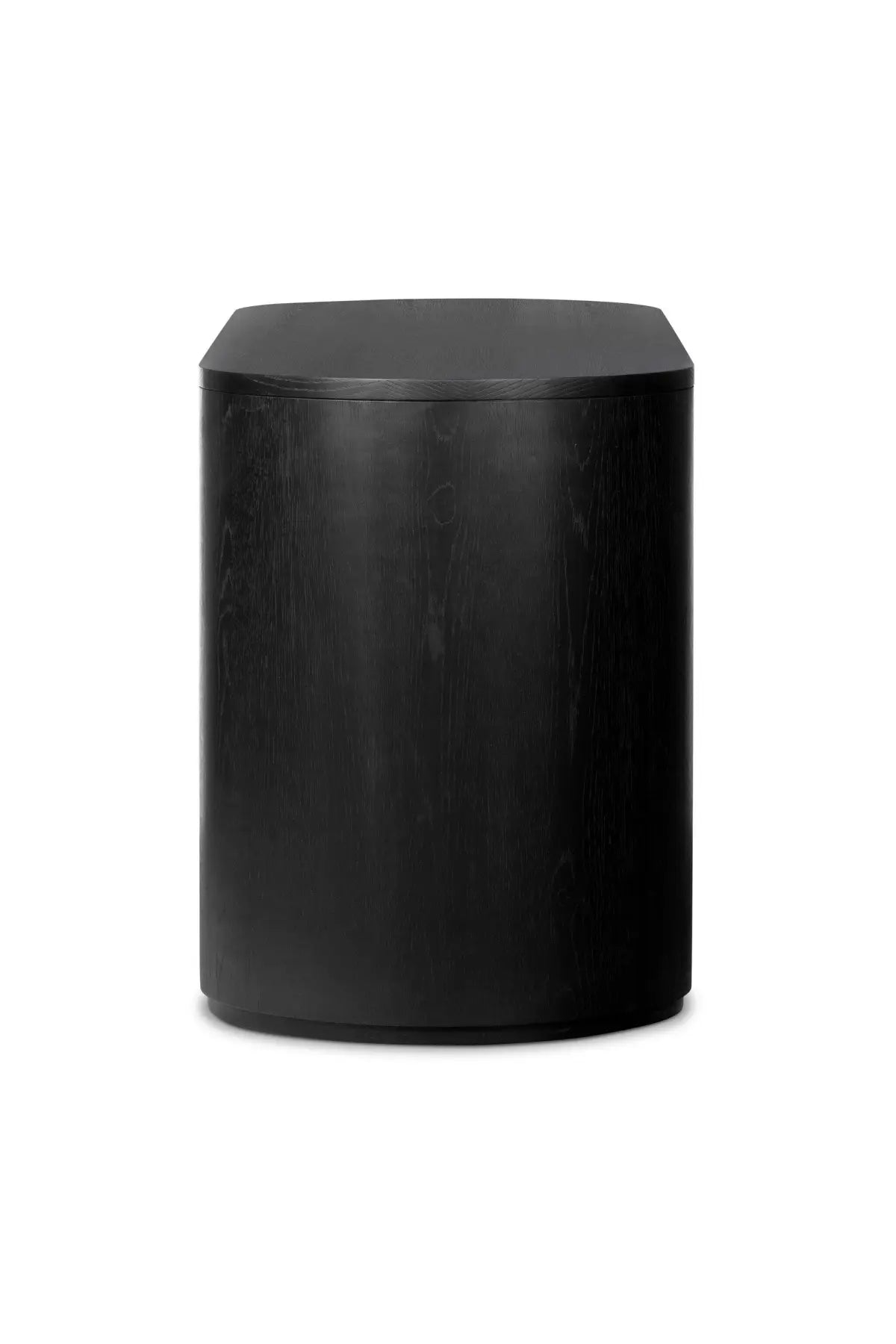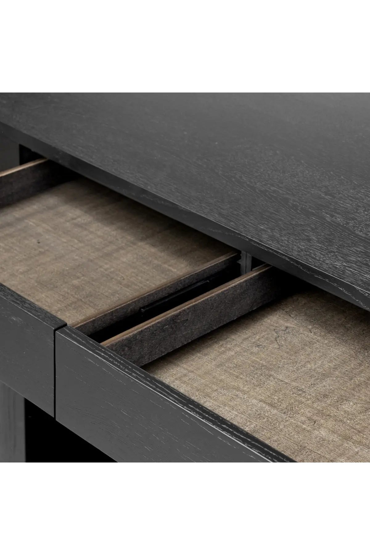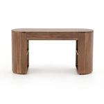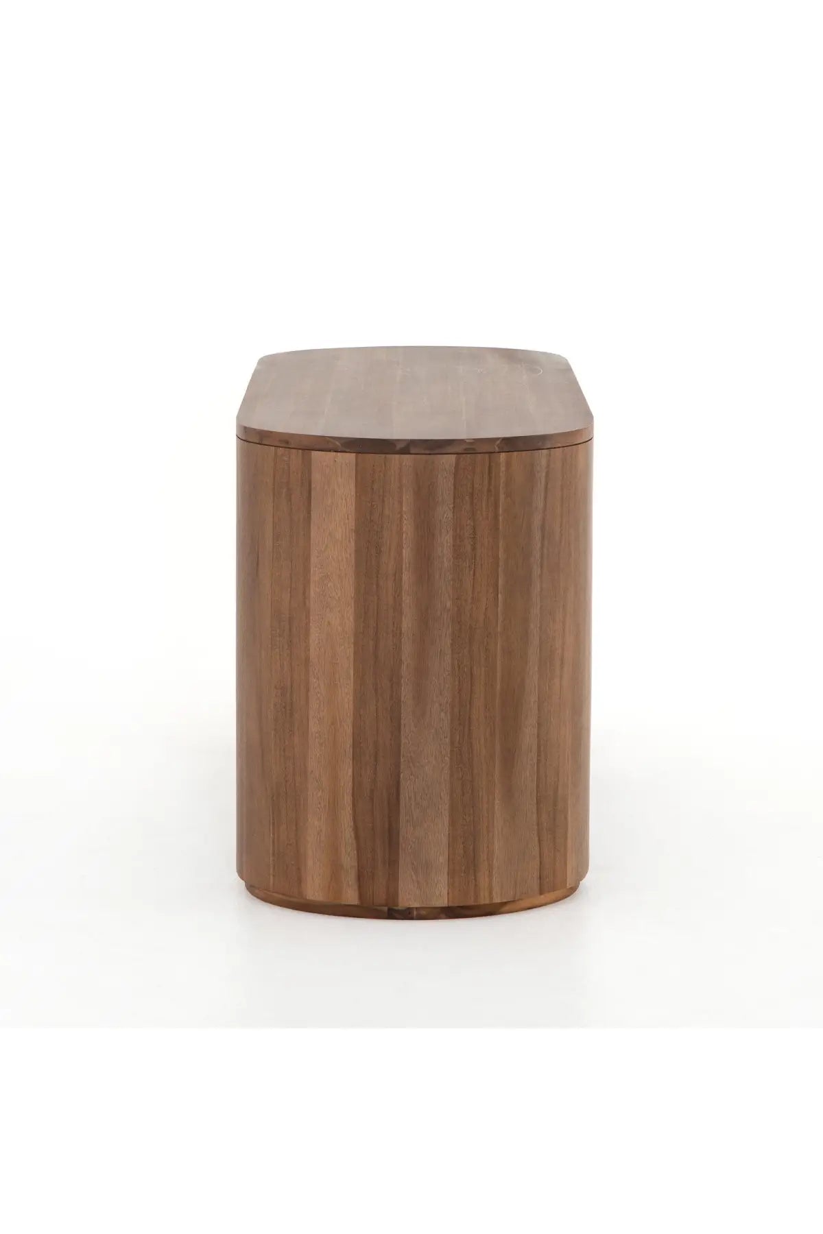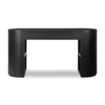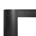Meet the Pilar Desk. Finished in a rich caramel brown and brushed ebony forms a pill-inspired shape to nod Eighties-era design. Half-cylinder bases feature open interior shelving, with two top pencil drawers to keep supplies handy.