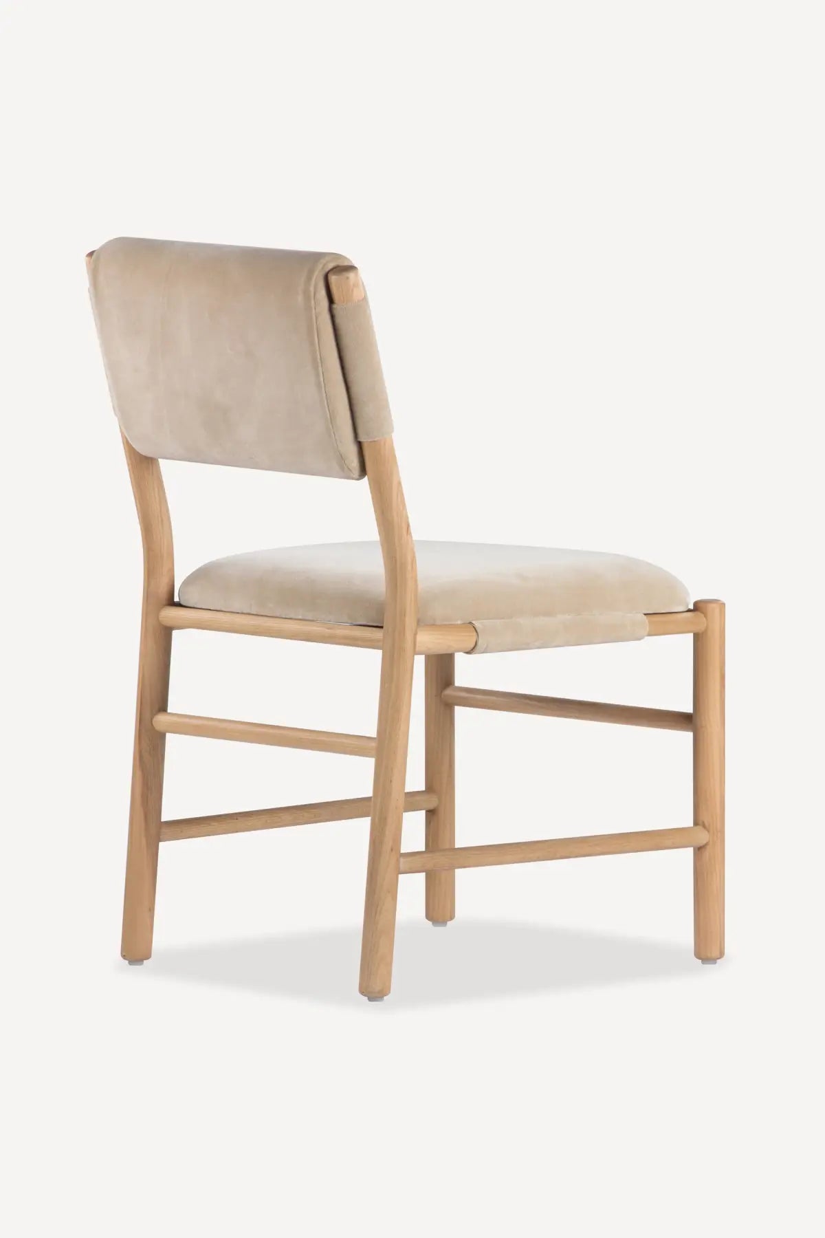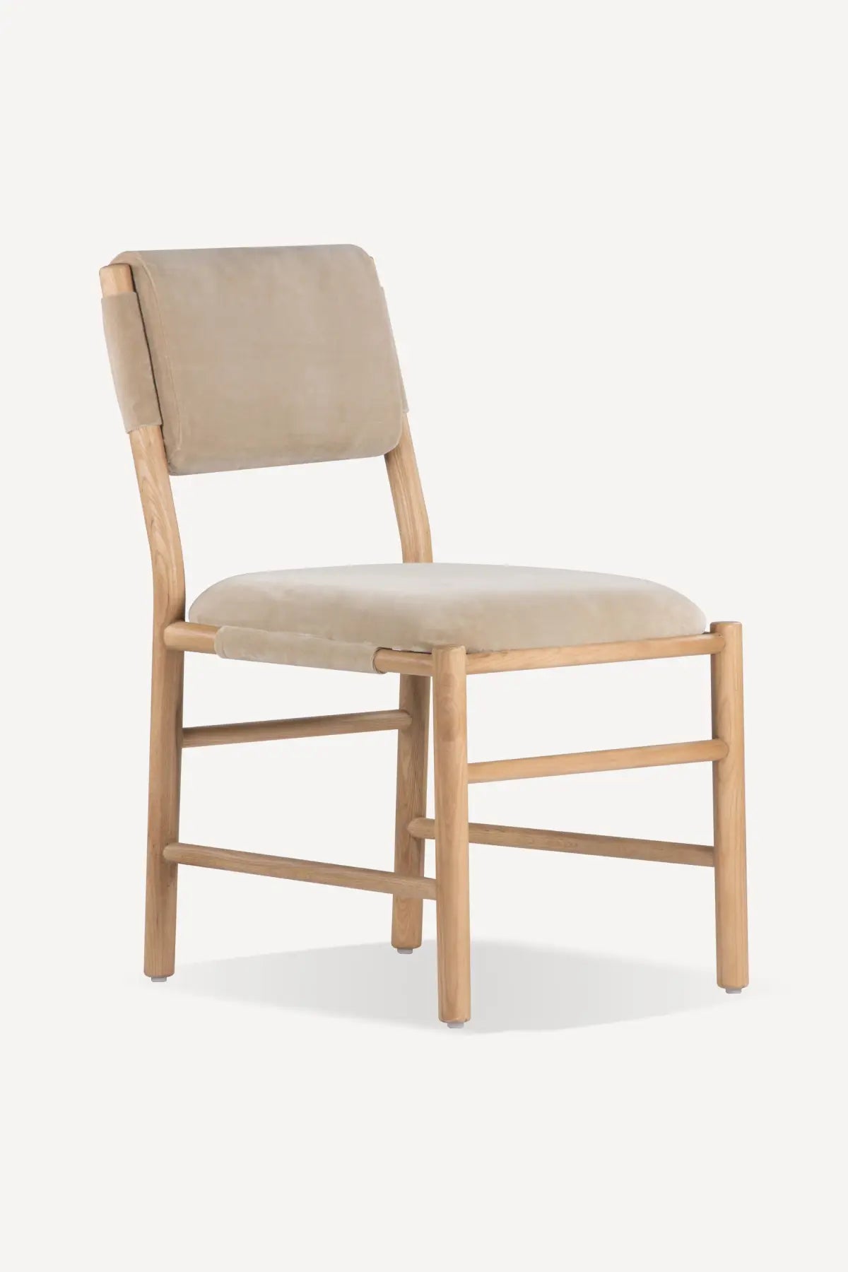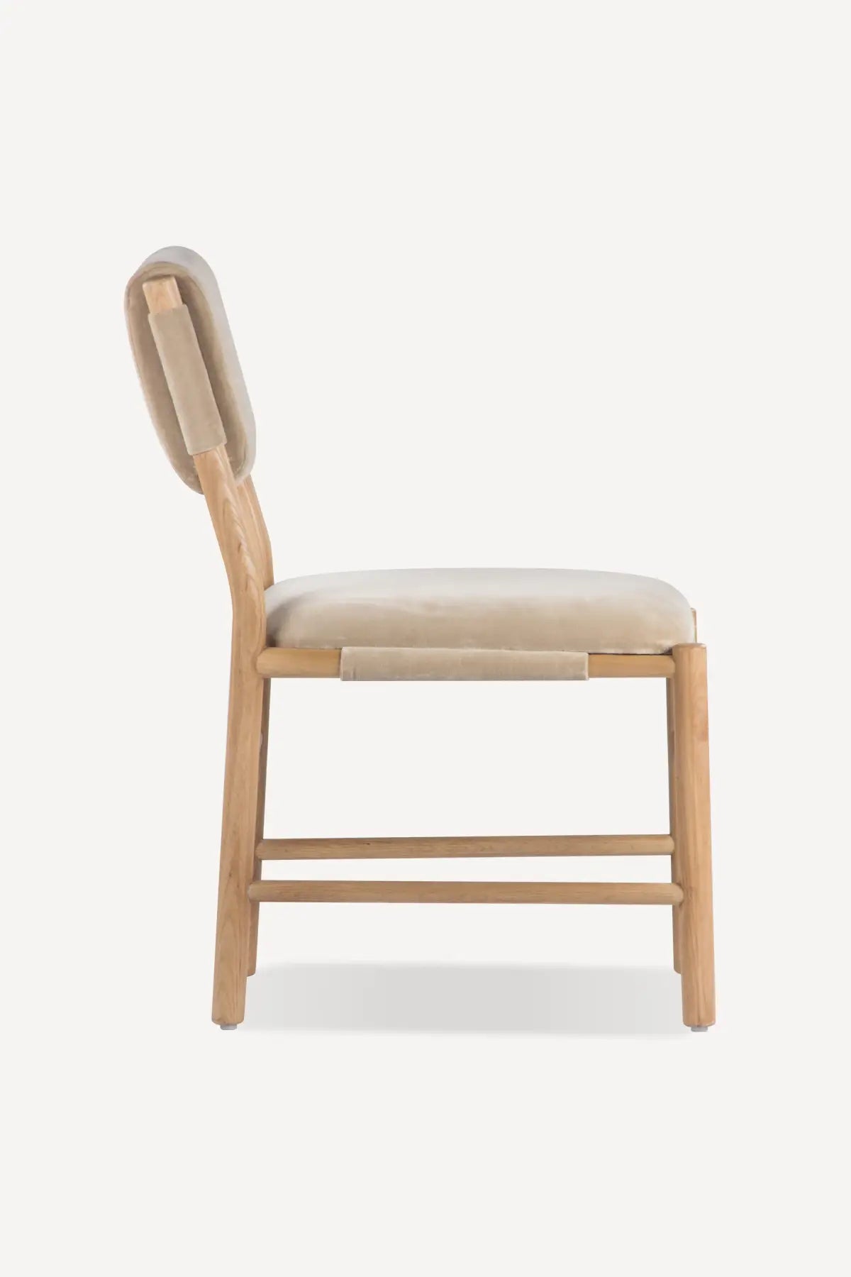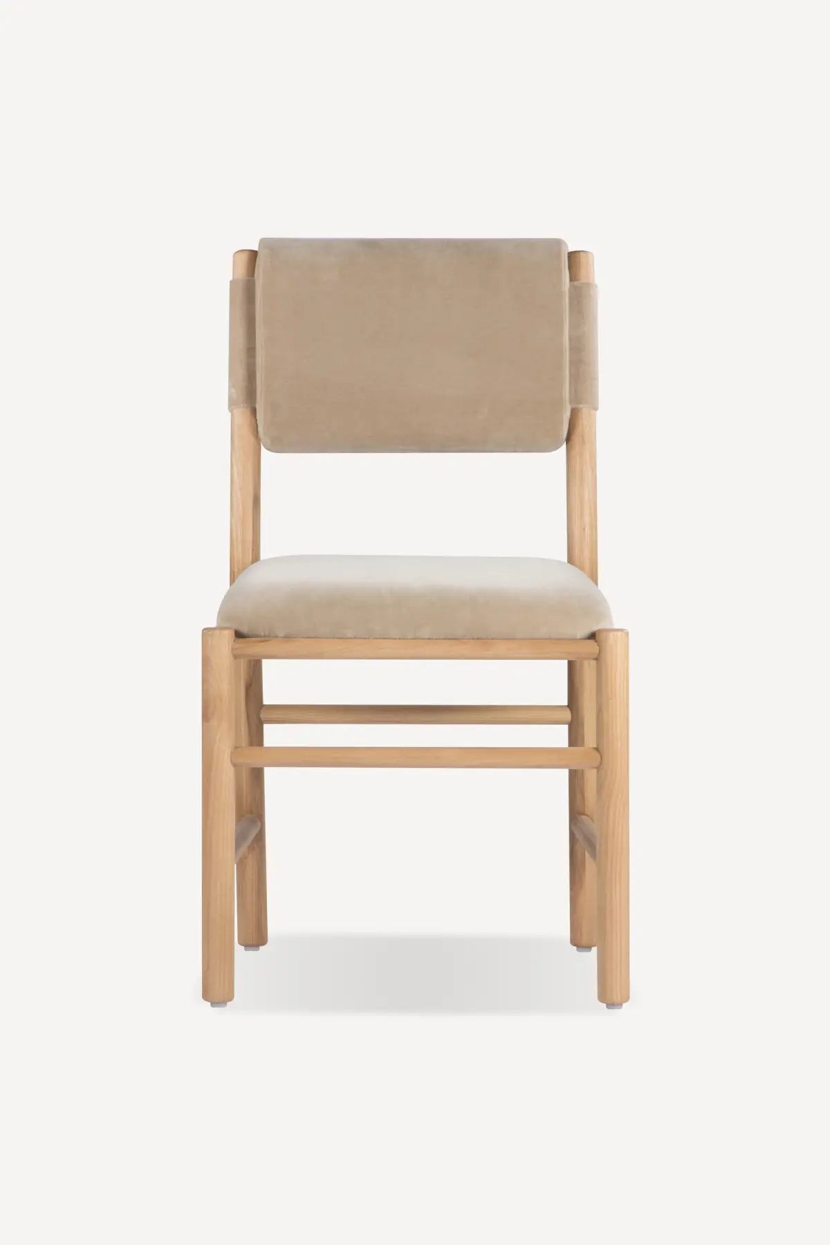 Modern and minimal in design, the Piper Dining Chair features a solid Ash frame and performance velvet fabric upholstery. With gentle wrapping details and soft, rounded legs, this chair is a simple yet elegant piece suitable for any dining space.