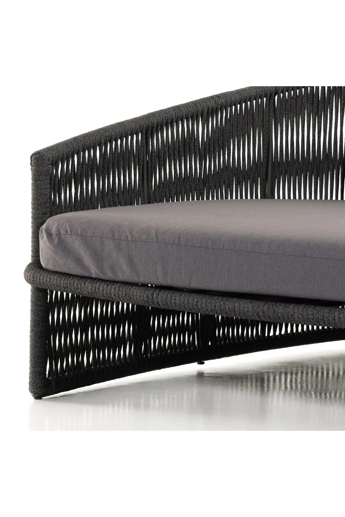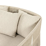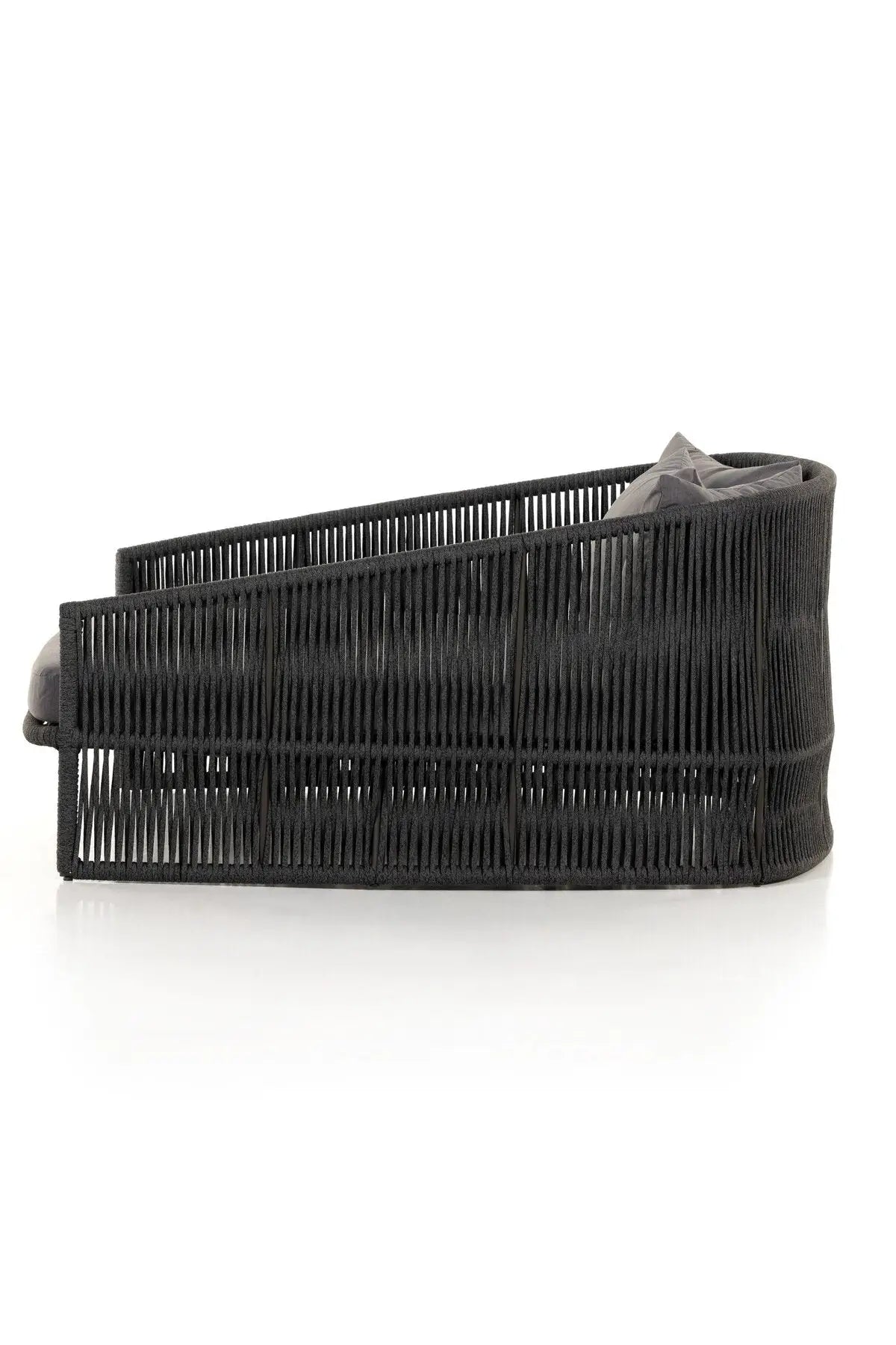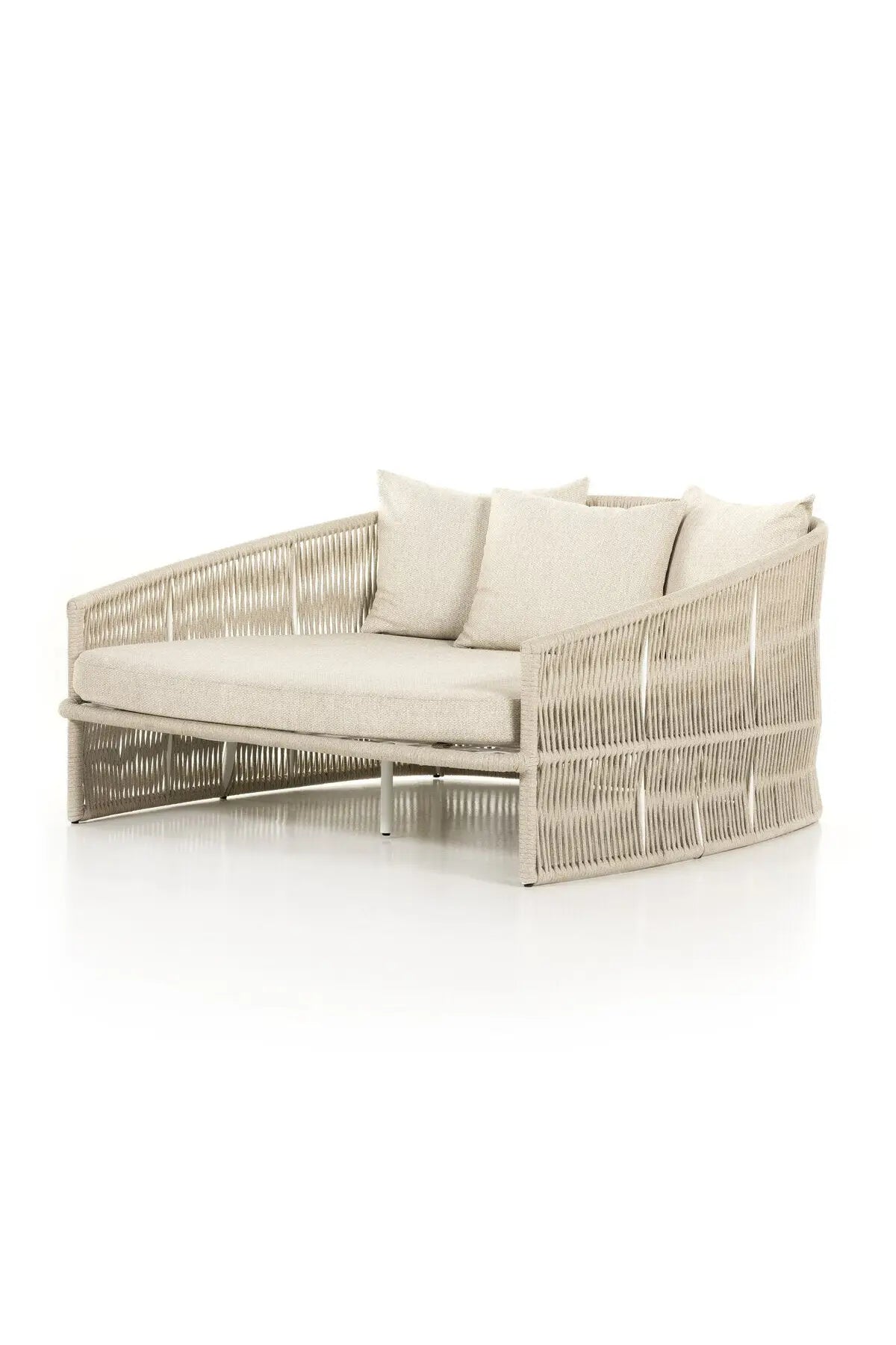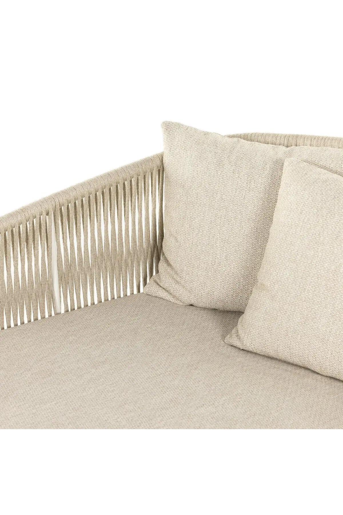 Meet the Porto Outdoor Daybed. The perfect place for outdoor daydreaming. A beautiful rope-based design is woven across a durable aluminum frame. Topped with a wide cushion and throw pillows, all upholstered in 100% olefin, known for its UV-resistant, water-repellent and quick-drying abilities. Cover or store inside during inclement weather and when not in use.