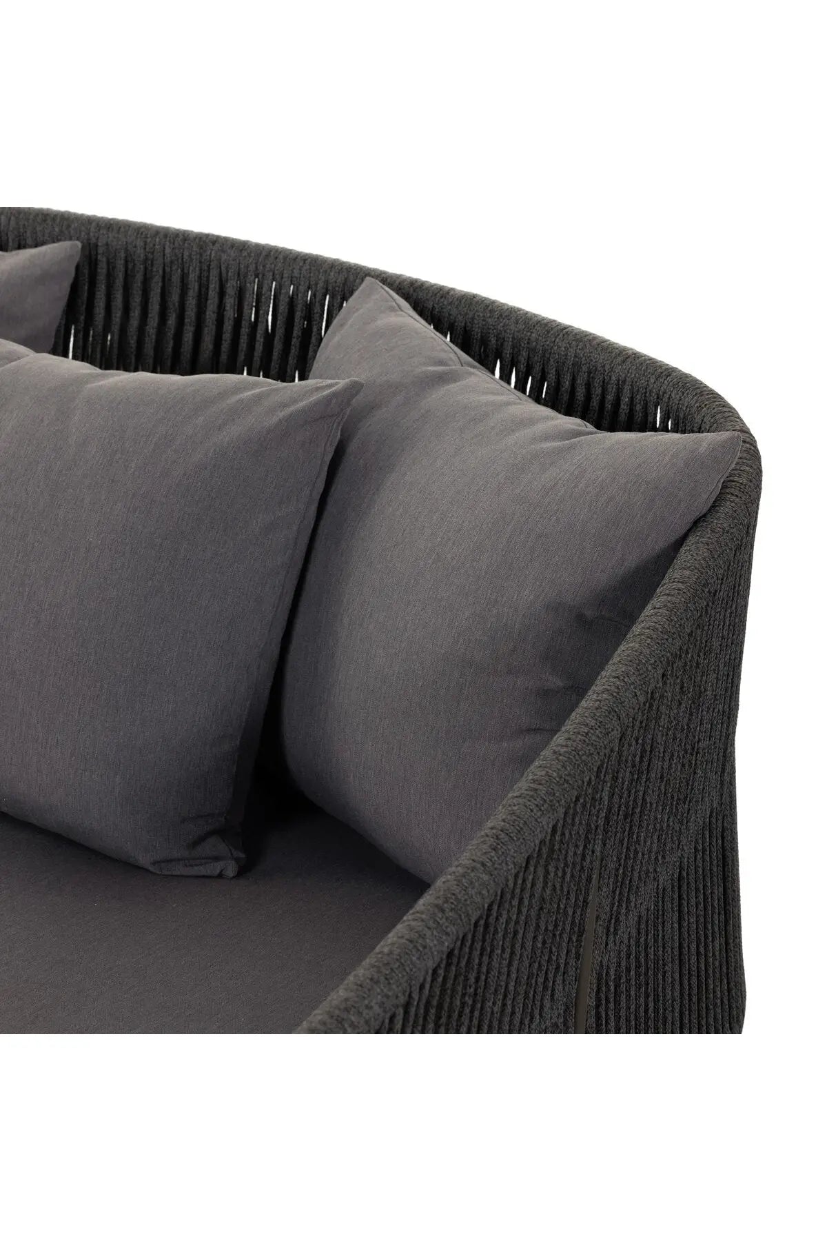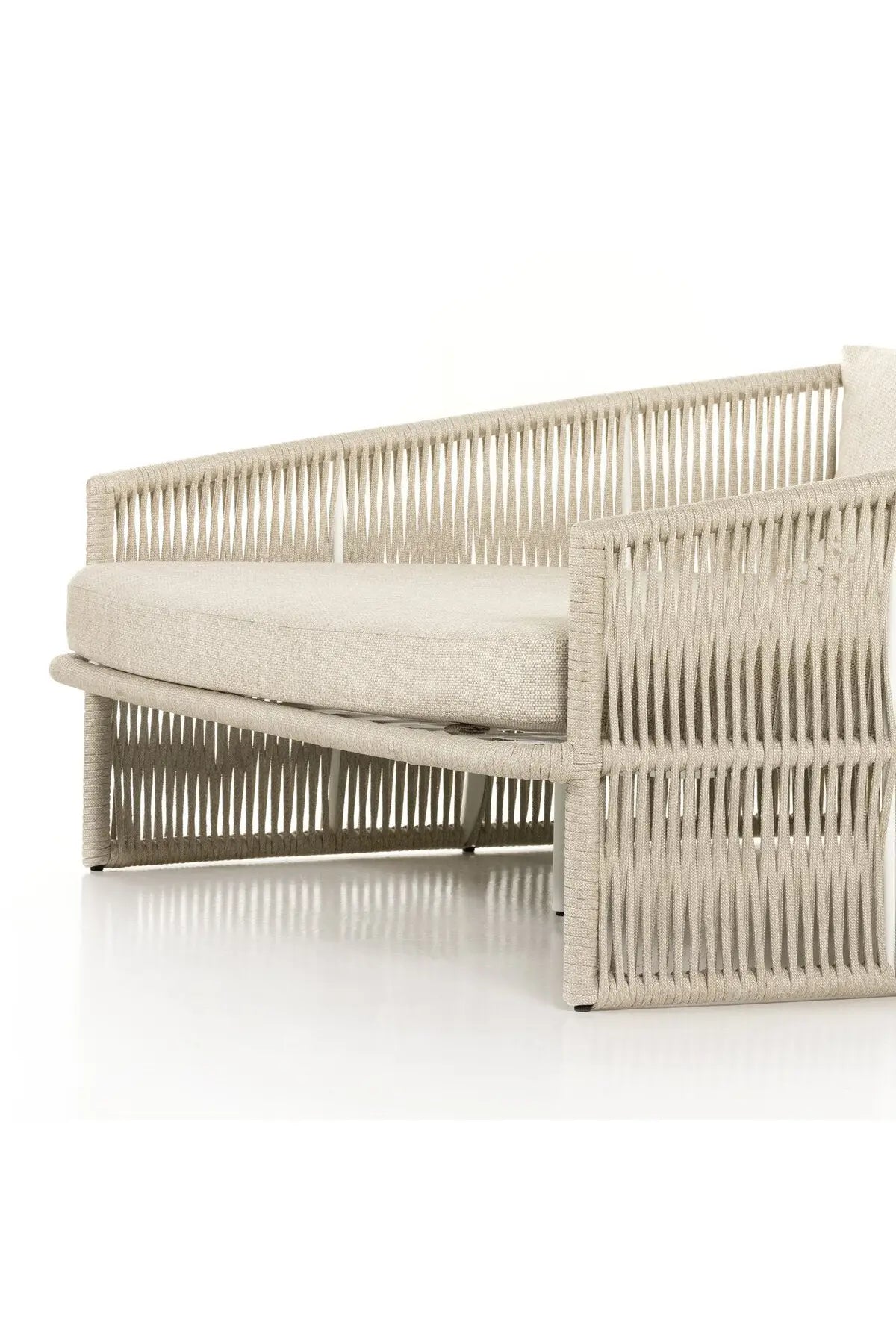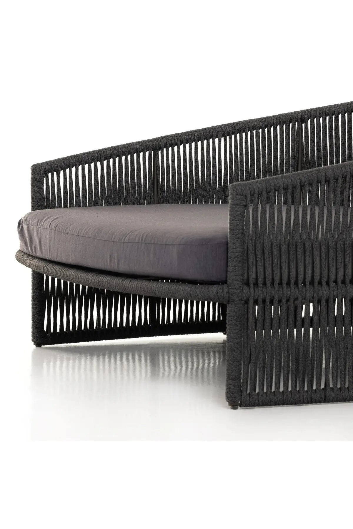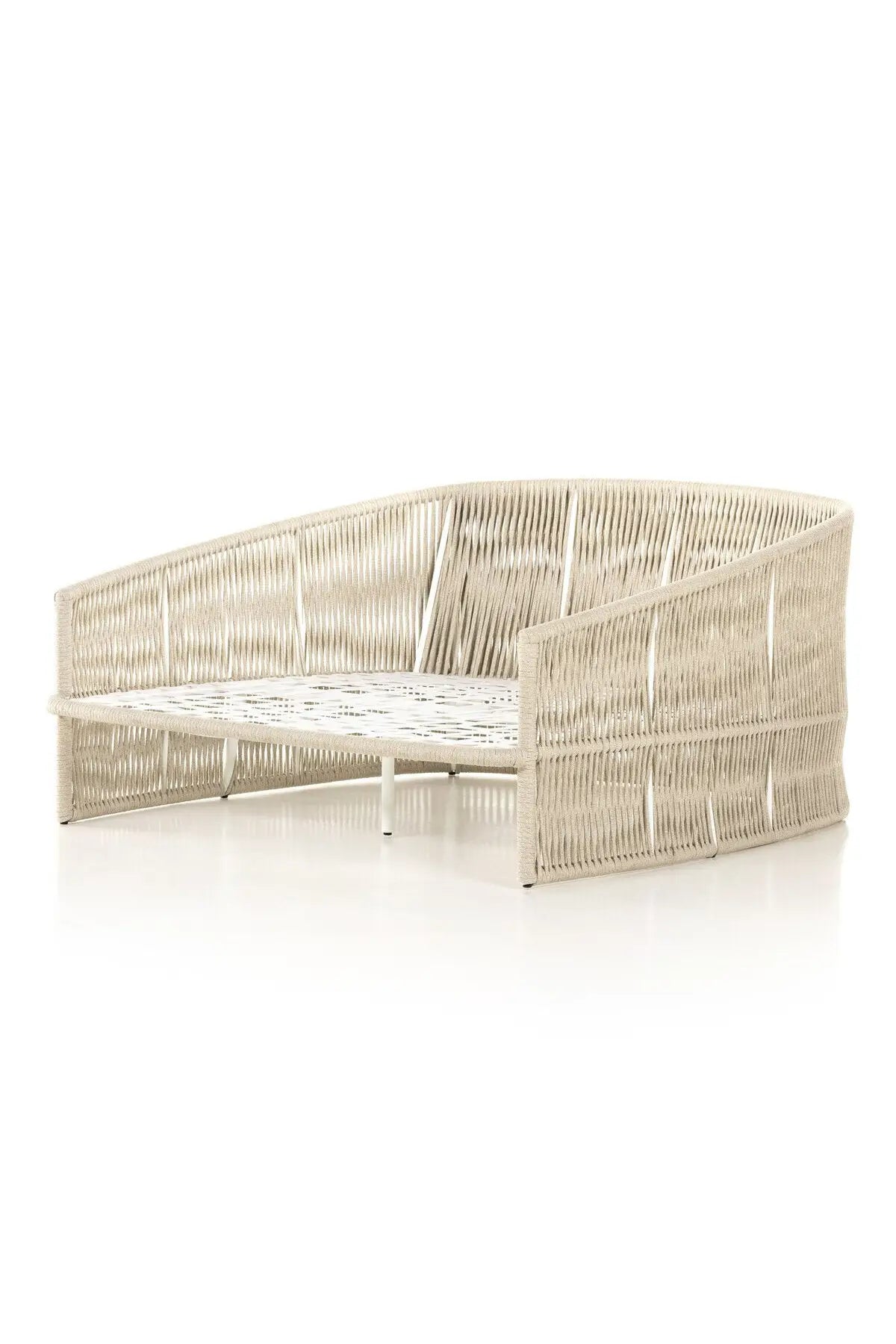 Meet the Porto Outdoor Daybed. The perfect place for outdoor daydreaming. A beautiful rope-based design is woven across a durable aluminum frame. Topped with a wide cushion and throw pillows, all upholstered in 100% olefin, known for its UV-resistant, water-repellent and quick-drying abilities. Cover or store inside during inclement weather and when not in use.