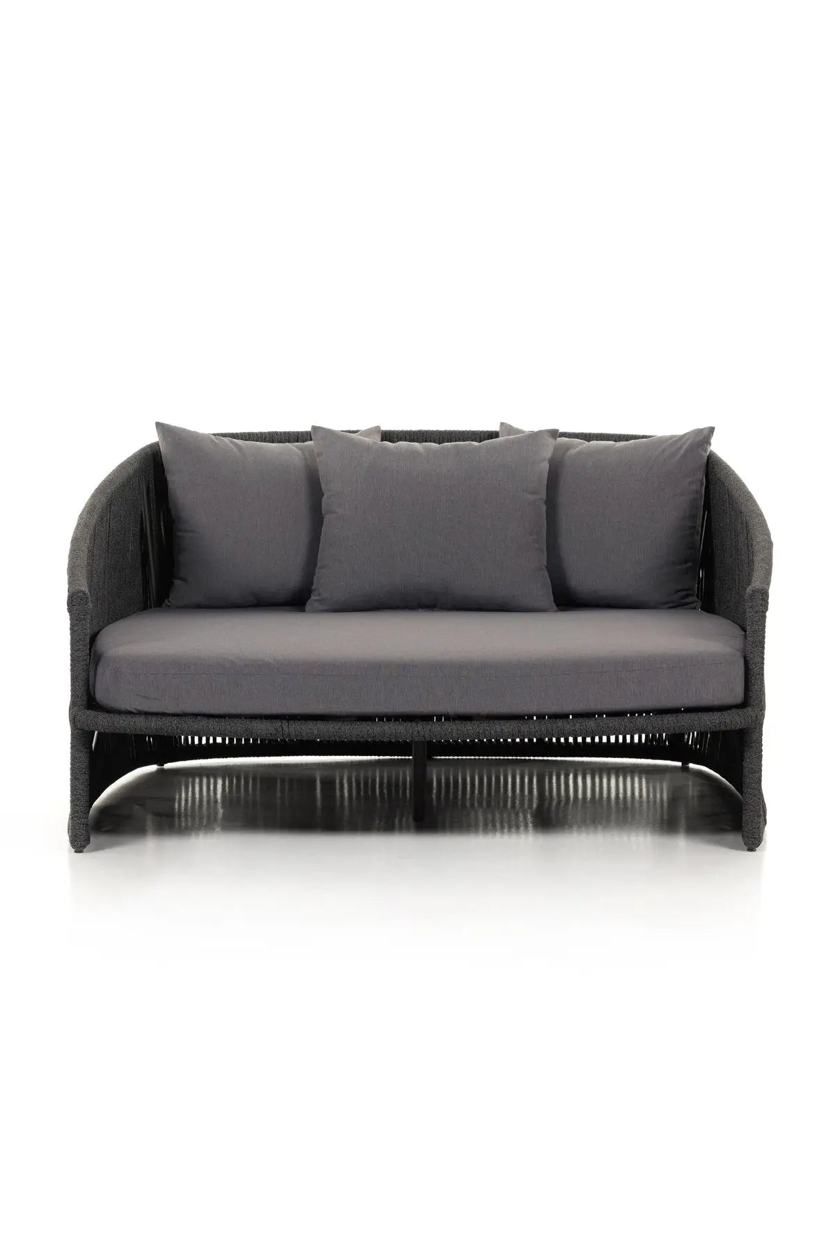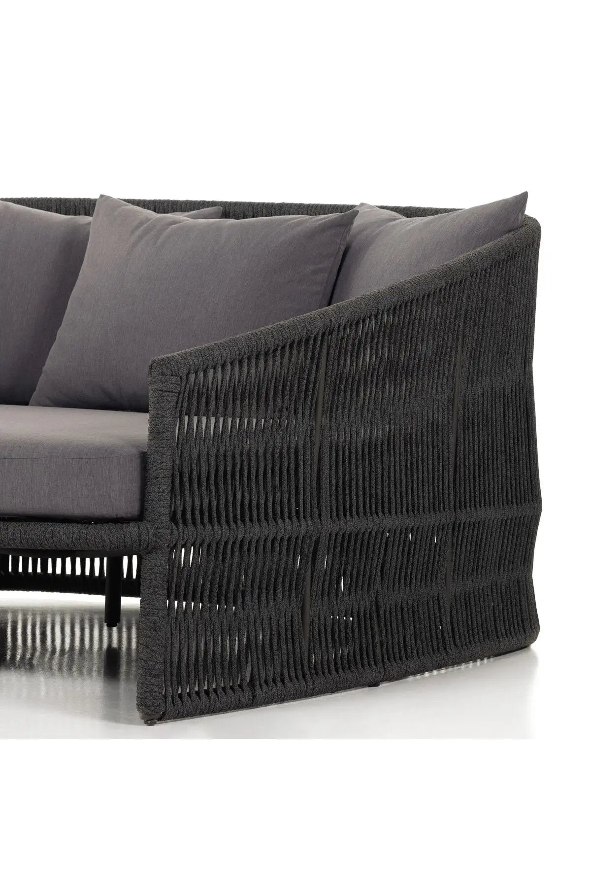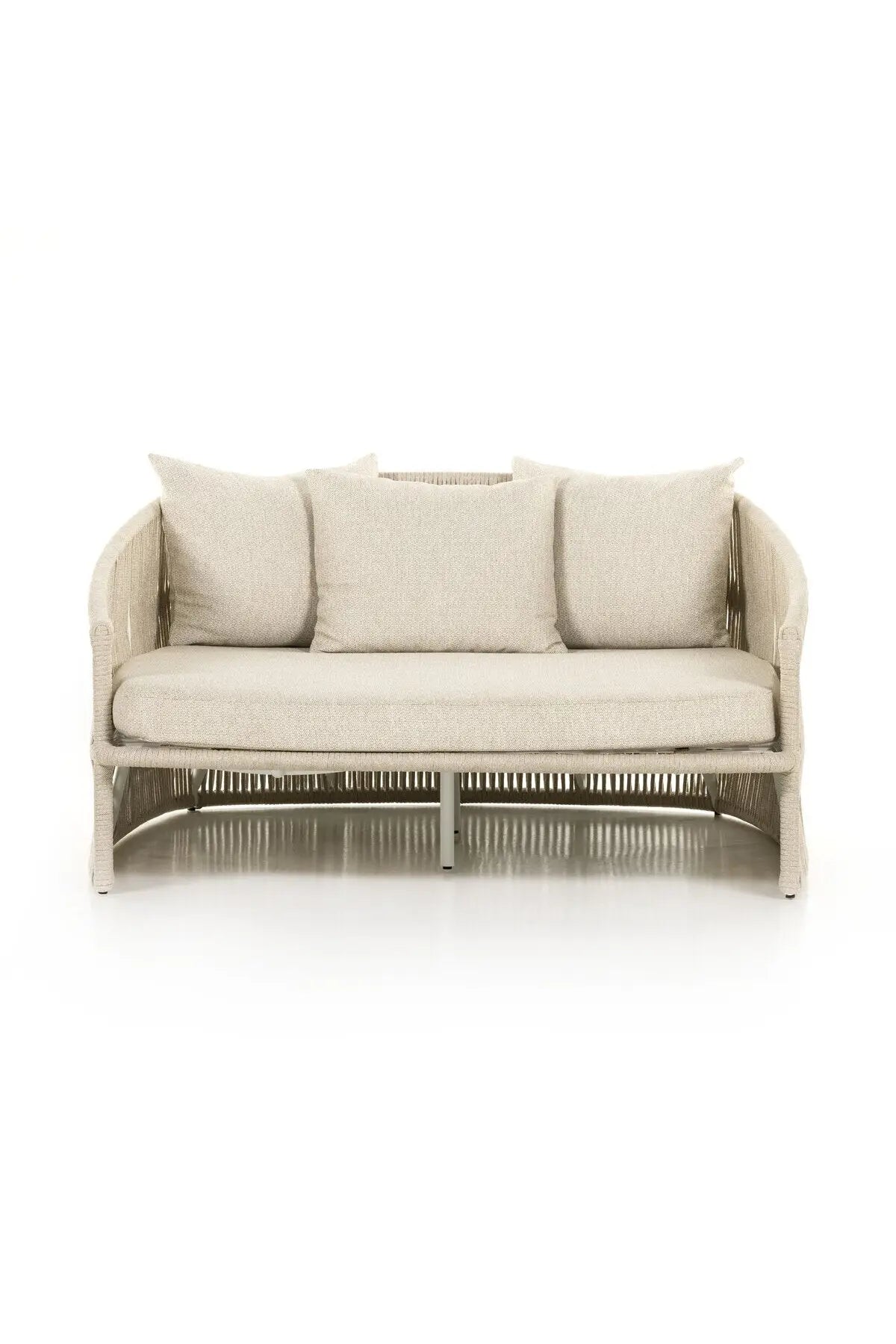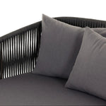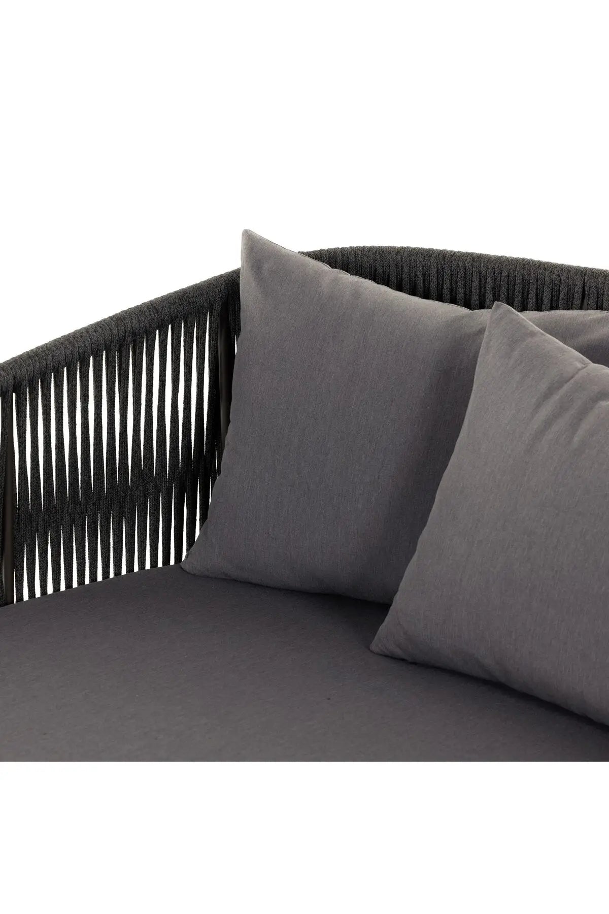 Meet the Porto Outdoor Daybed. The perfect place for outdoor daydreaming. A beautiful rope-based design is woven across a durable aluminum frame. Topped with a wide cushion and throw pillows, all upholstered in 100% olefin, known for its UV-resistant, water-repellent and quick-drying abilities. Cover or store inside during inclement weather and when not in use.