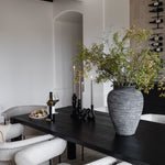 Well-rounded and honest, the Post Large Dining Table gentle geometries come alive with each dining experience. A natural beauty in solid, blackened oak with a semi-gloss finish, this dining table shows off oak's beautiful grain patterning and shades.