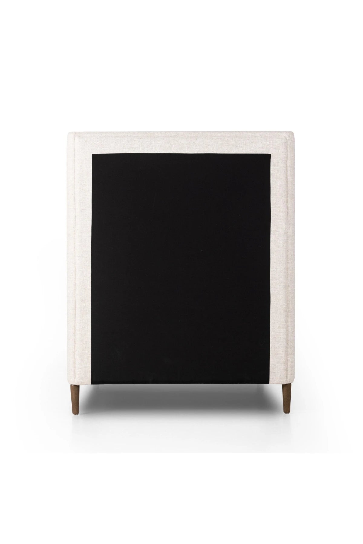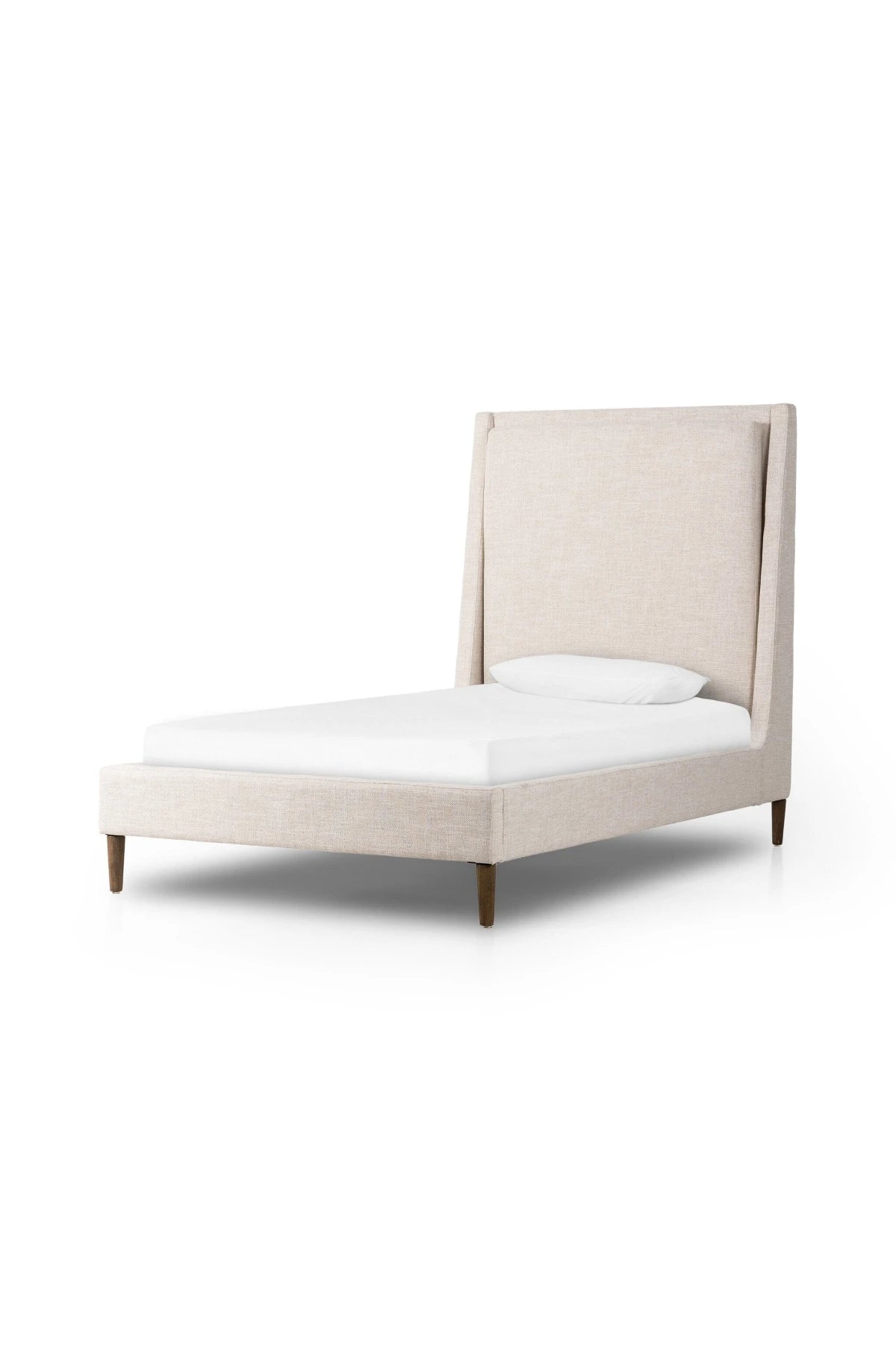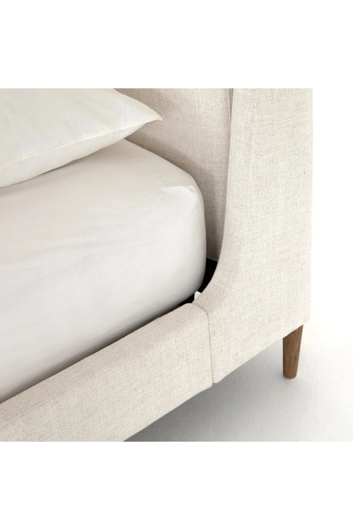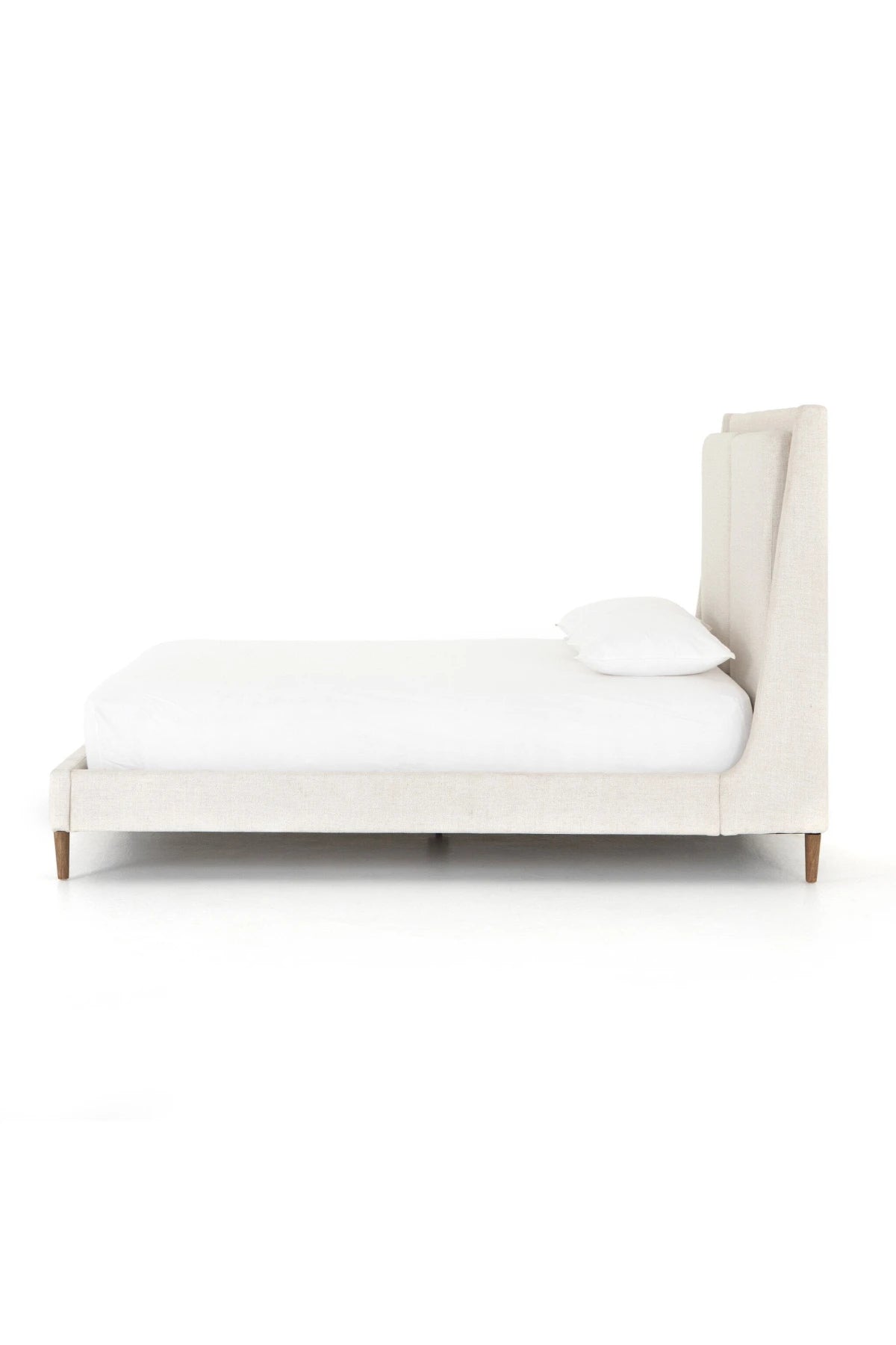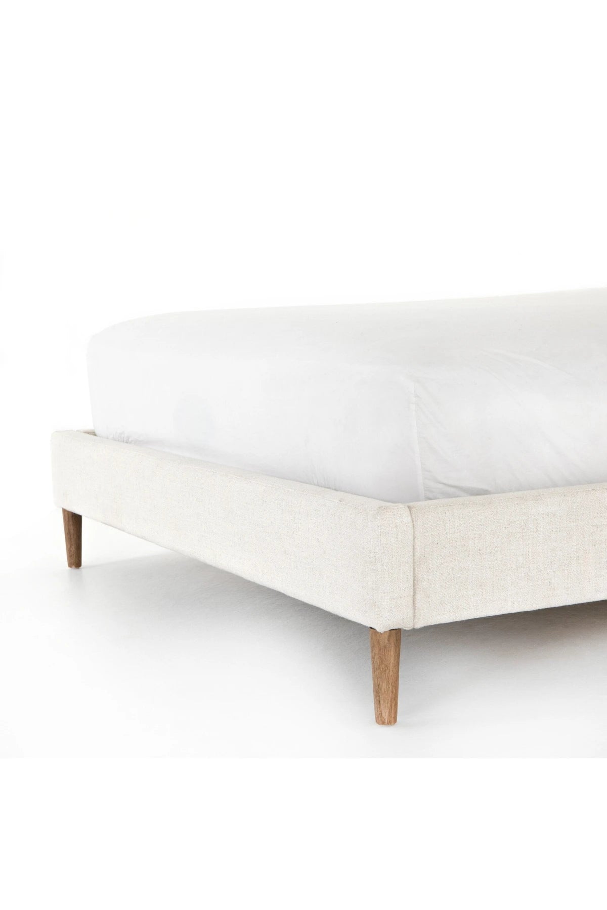 The Potter Bed is light, livable luxury. Upholstered in a cream linen-blend, a tapered headboard features fixed overscale pillows, for a calming look with great depth. Wire-brushed parawood legs lend a warm, natural finishing touch.
