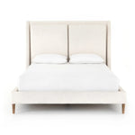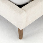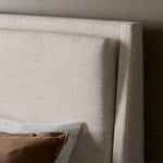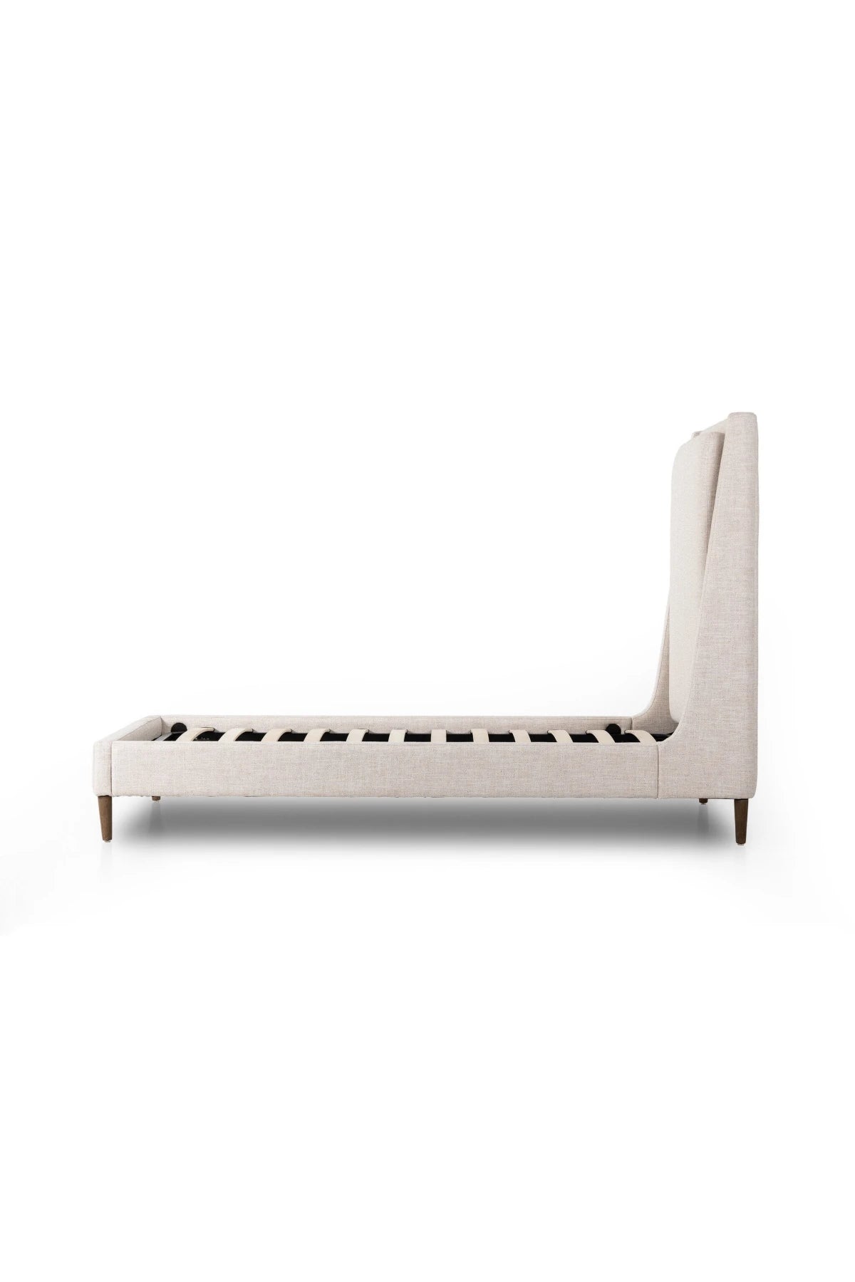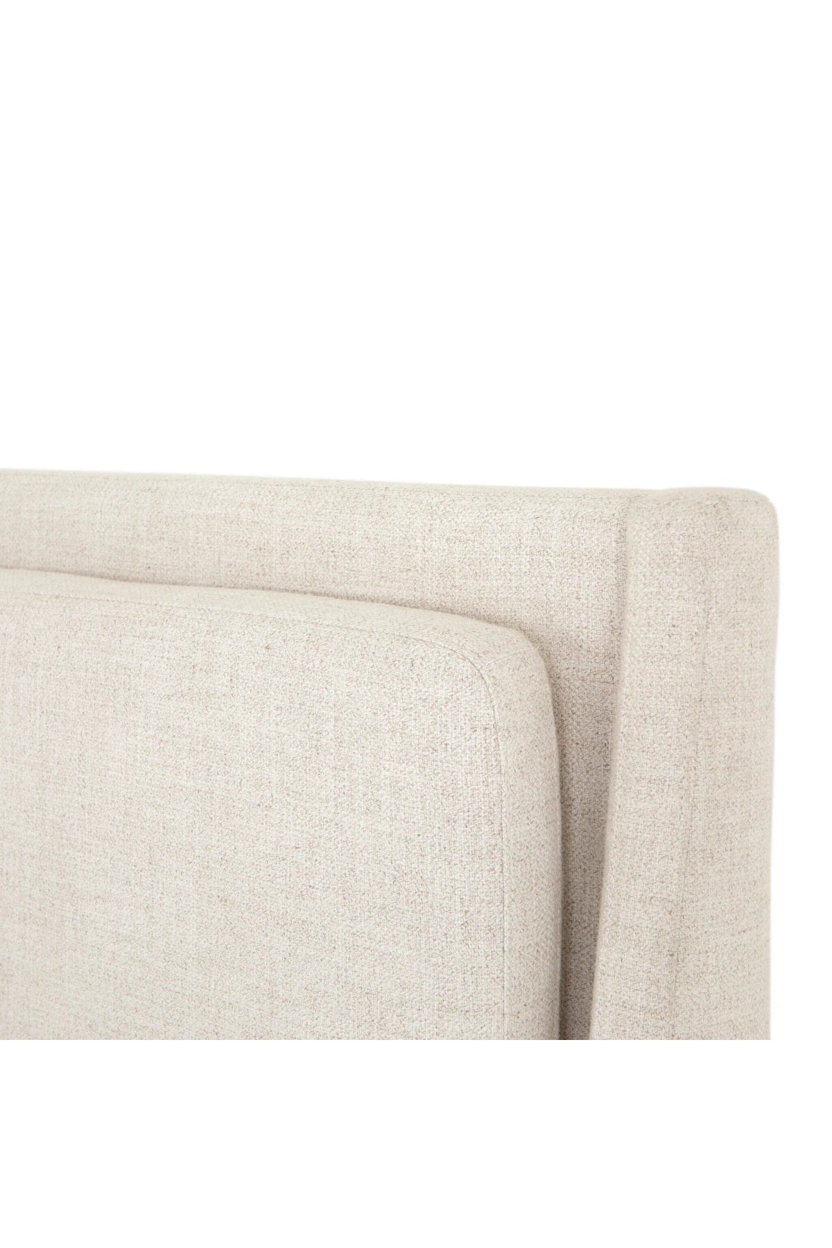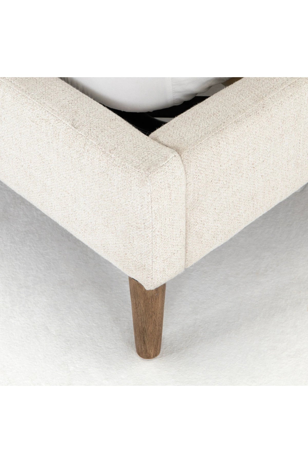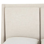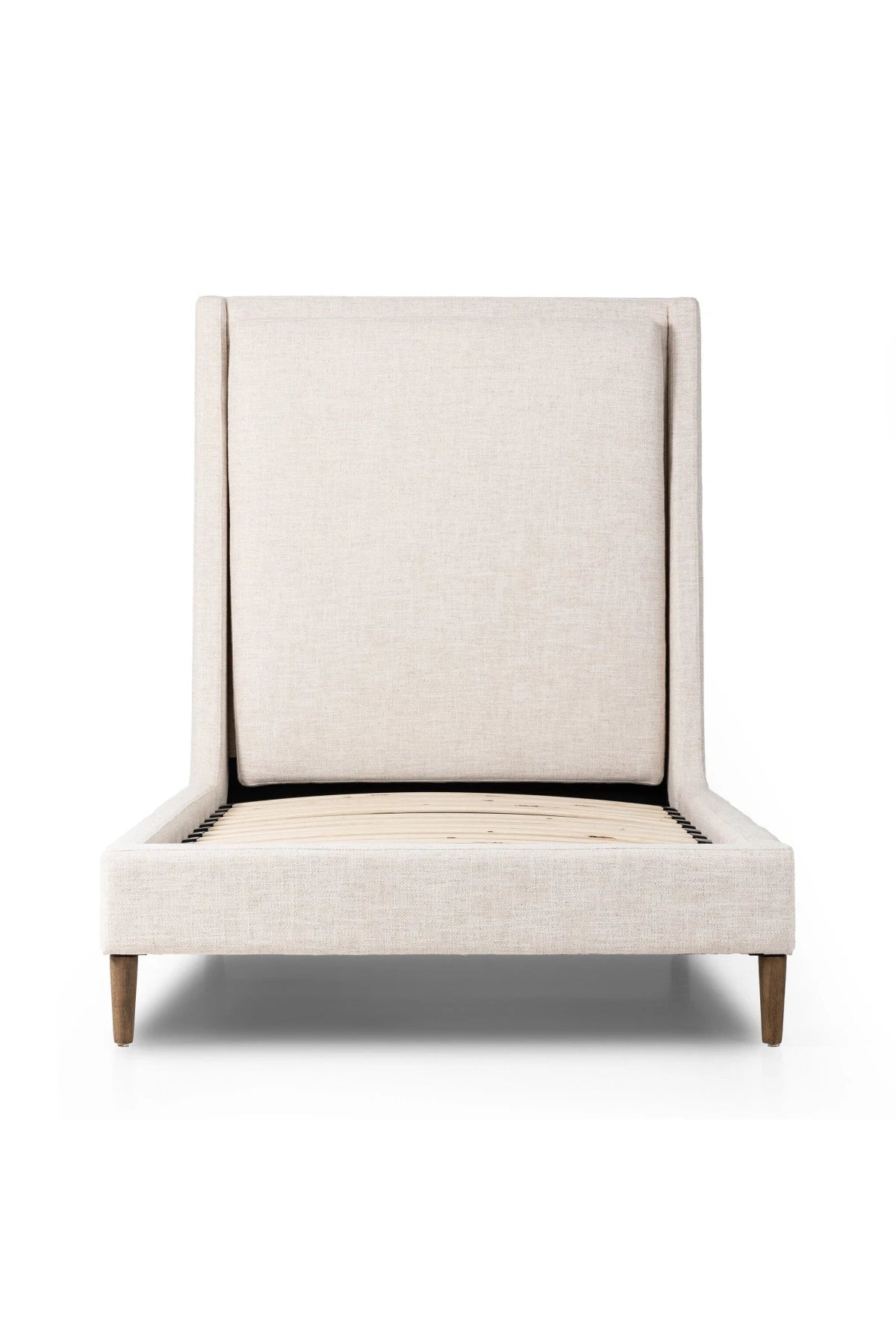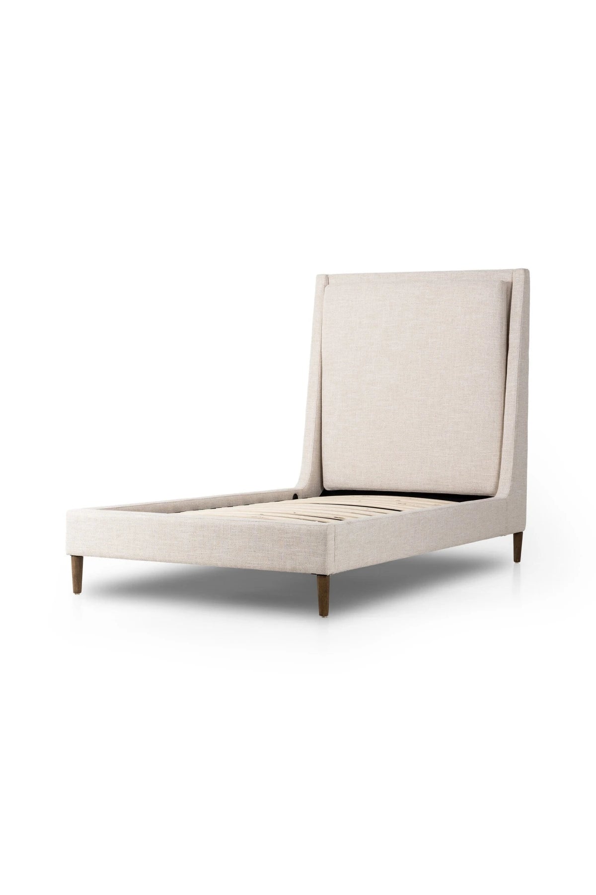 The Potter Bed is light, livable luxury. Upholstered in a cream linen-blend, a tapered headboard features fixed overscale pillows, for a calming look with great depth. Wire-brushed parawood legs lend a warm, natural finishing touch.
