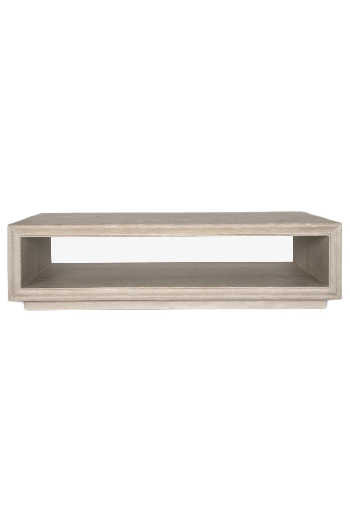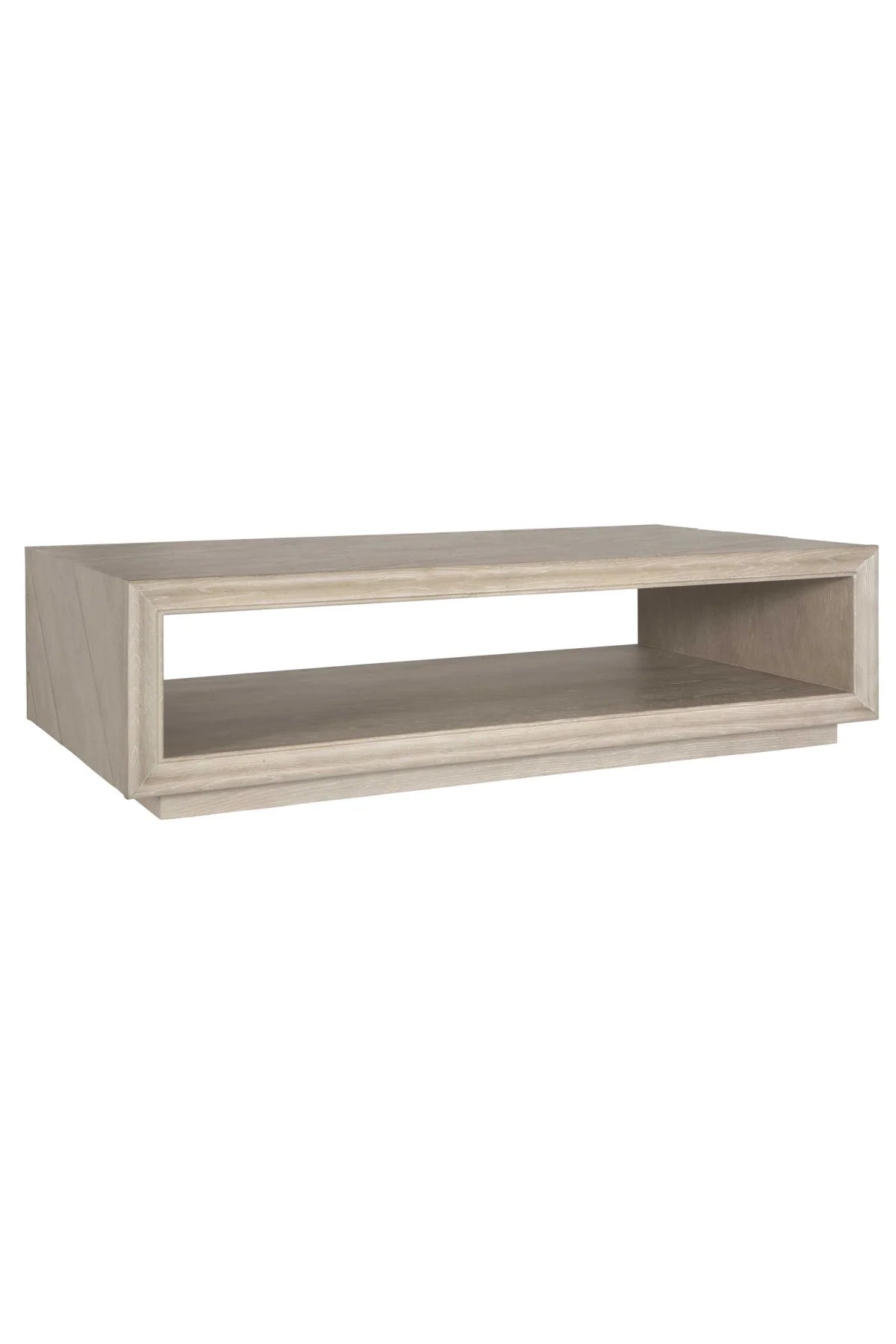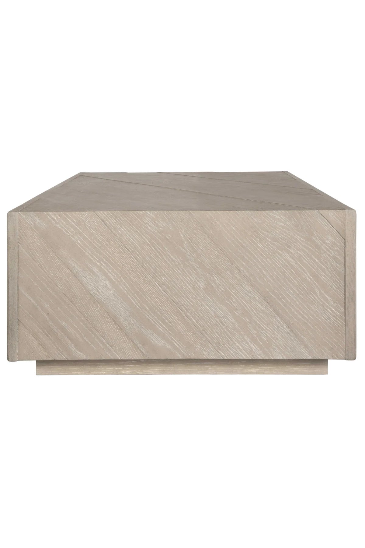 The Prism Coffee Table is known for its clean rectangular shape providing ample surface area for displaying decorative items or storing essentials. With a decorative face in light oak solids with oak veneer.