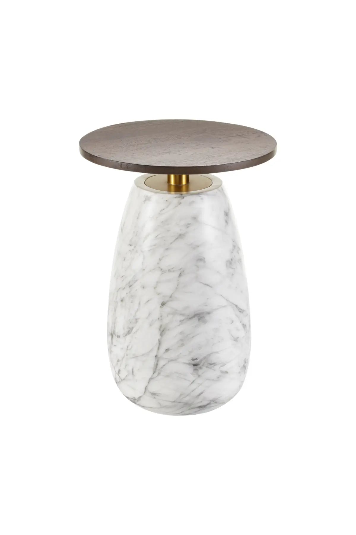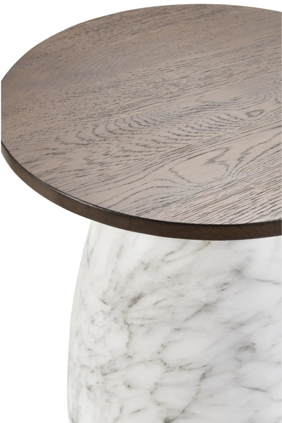 Materials: Top: Wood Veneer, Base: Resin, Stainless Steel