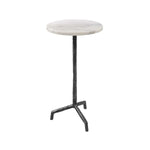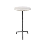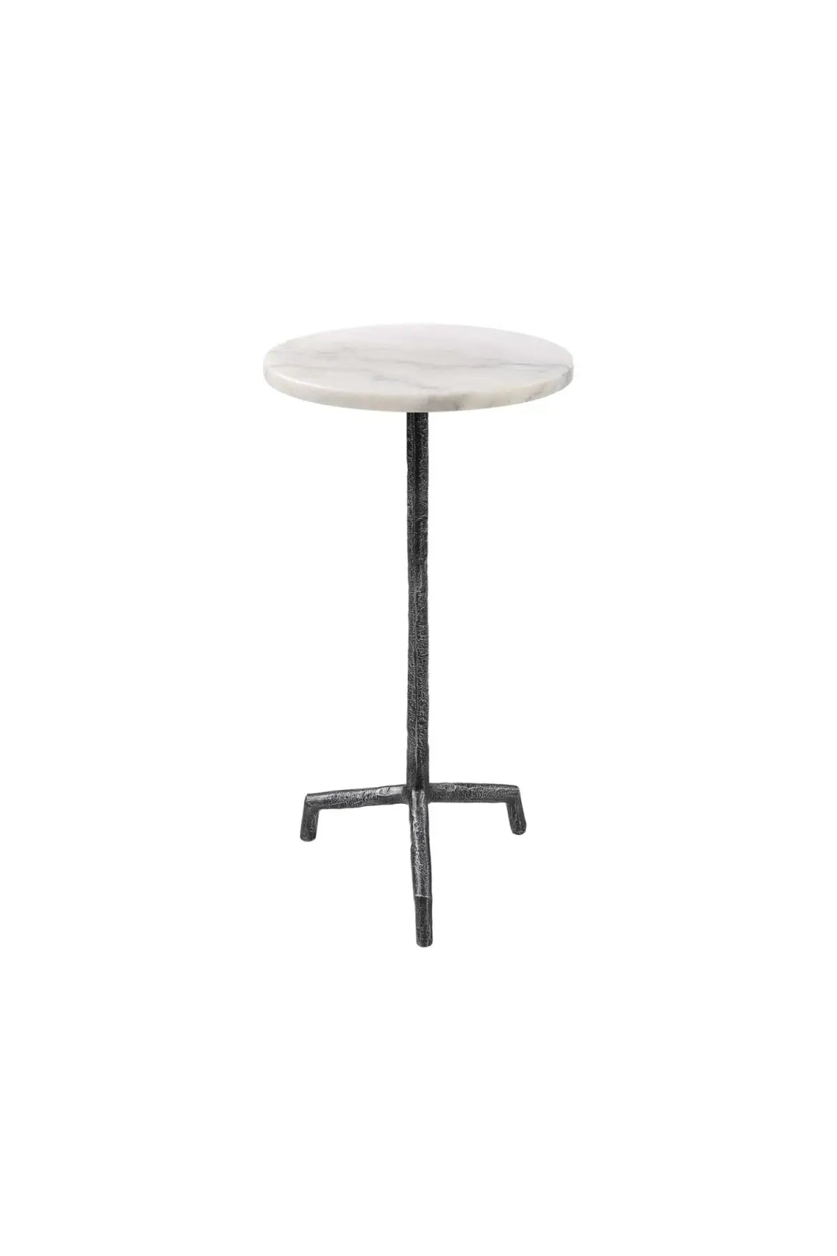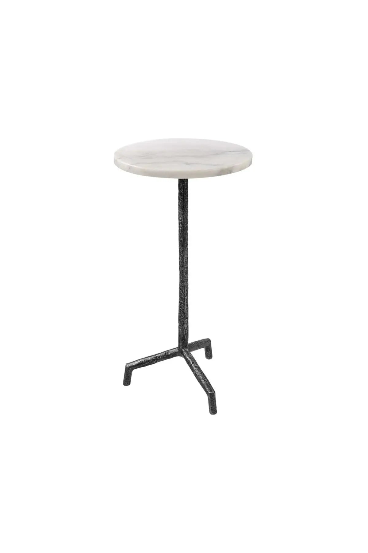The Puritan Drink Table is the perfect resting place for your beverage or favorite novel. The heavily textured iron base is finished in a rustic aged black and topped with naturally veined white marble.