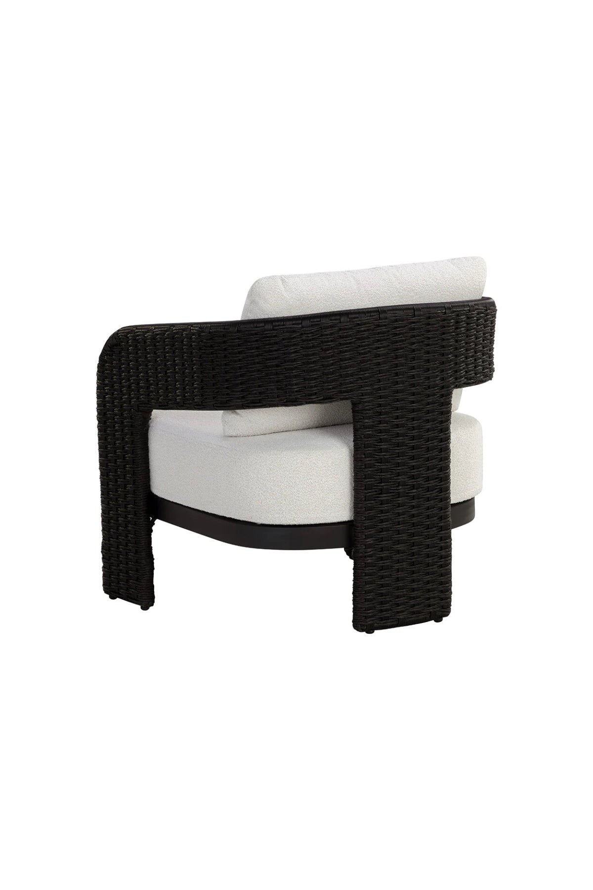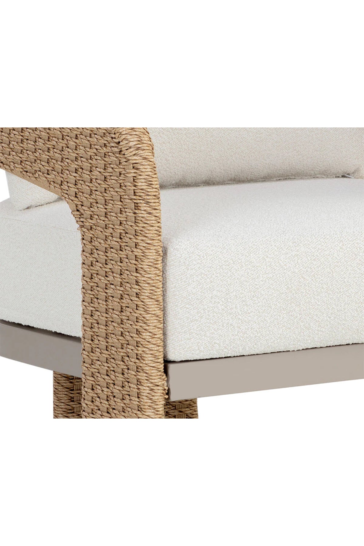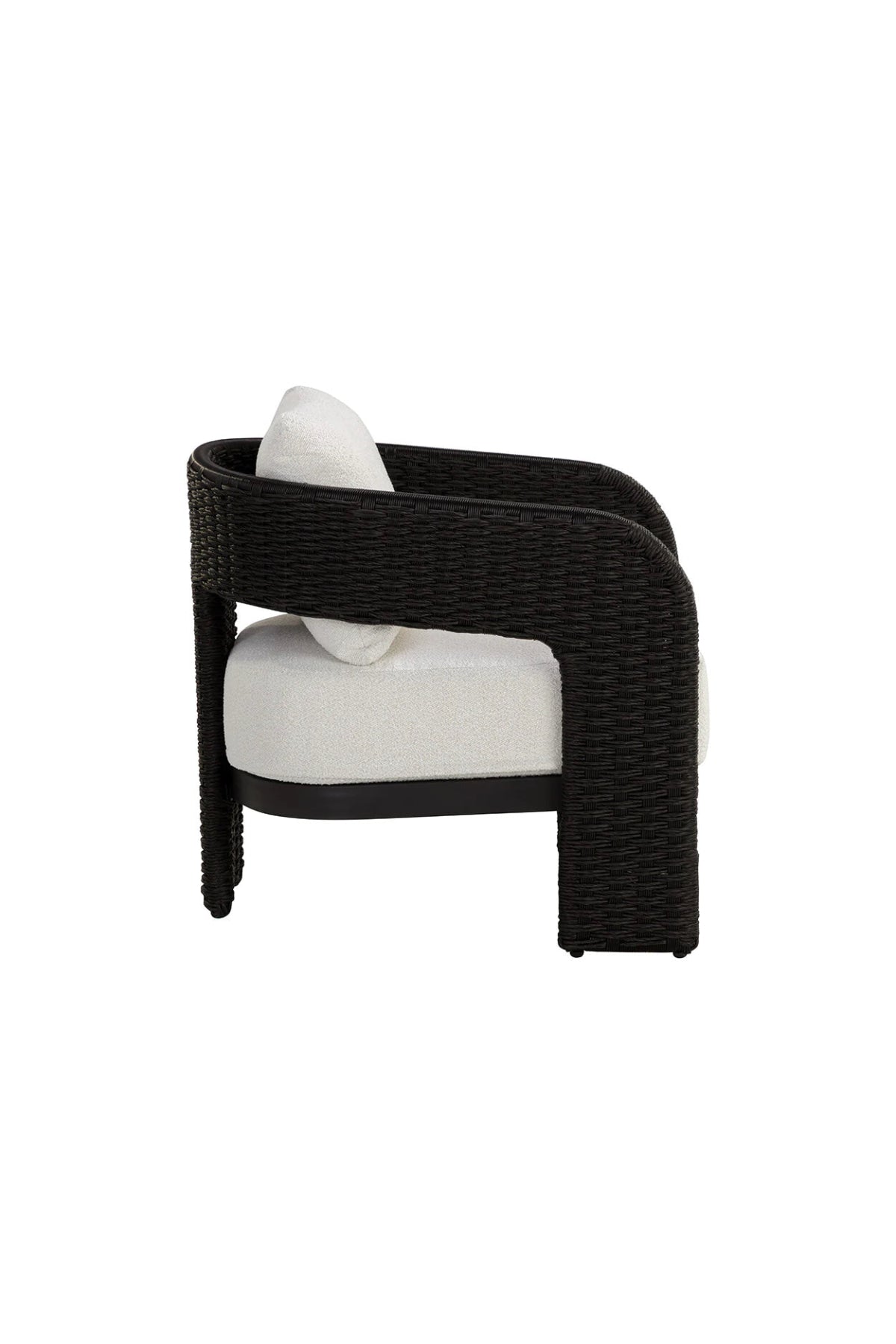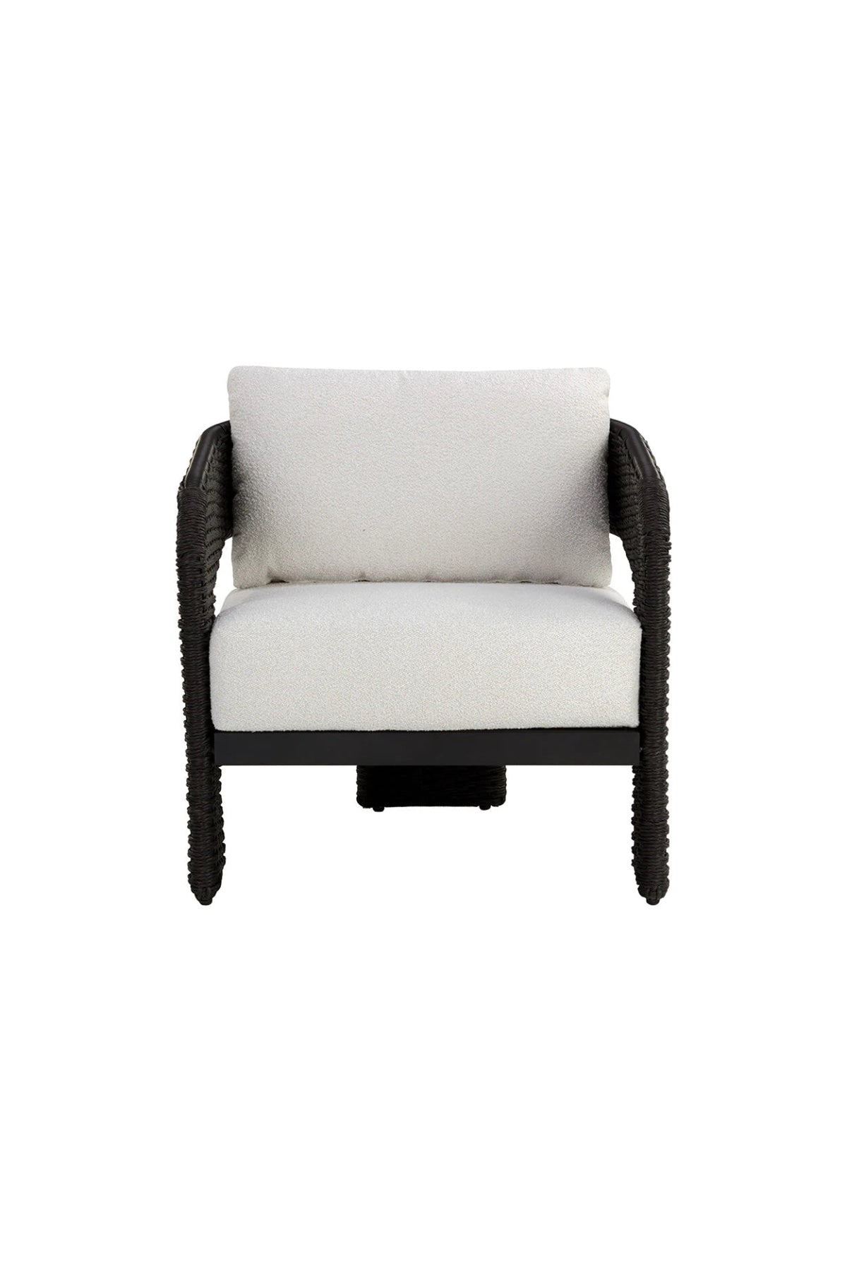 The geometric curves of the Pylos Lounge Chair will effortlessly stand out in any outdoor area. Twisted wicker wraps around an aluminum frame for a defined, textured look. Soft cushioning in our louis cream outdoor boucle performance fabric ties the look together. Performance fabric is moisture repellent, durable and easy to clean. Suitable for indoor and covered outdoor spaces.