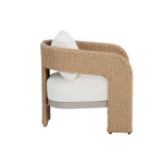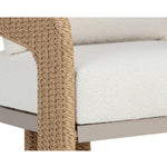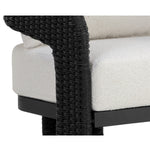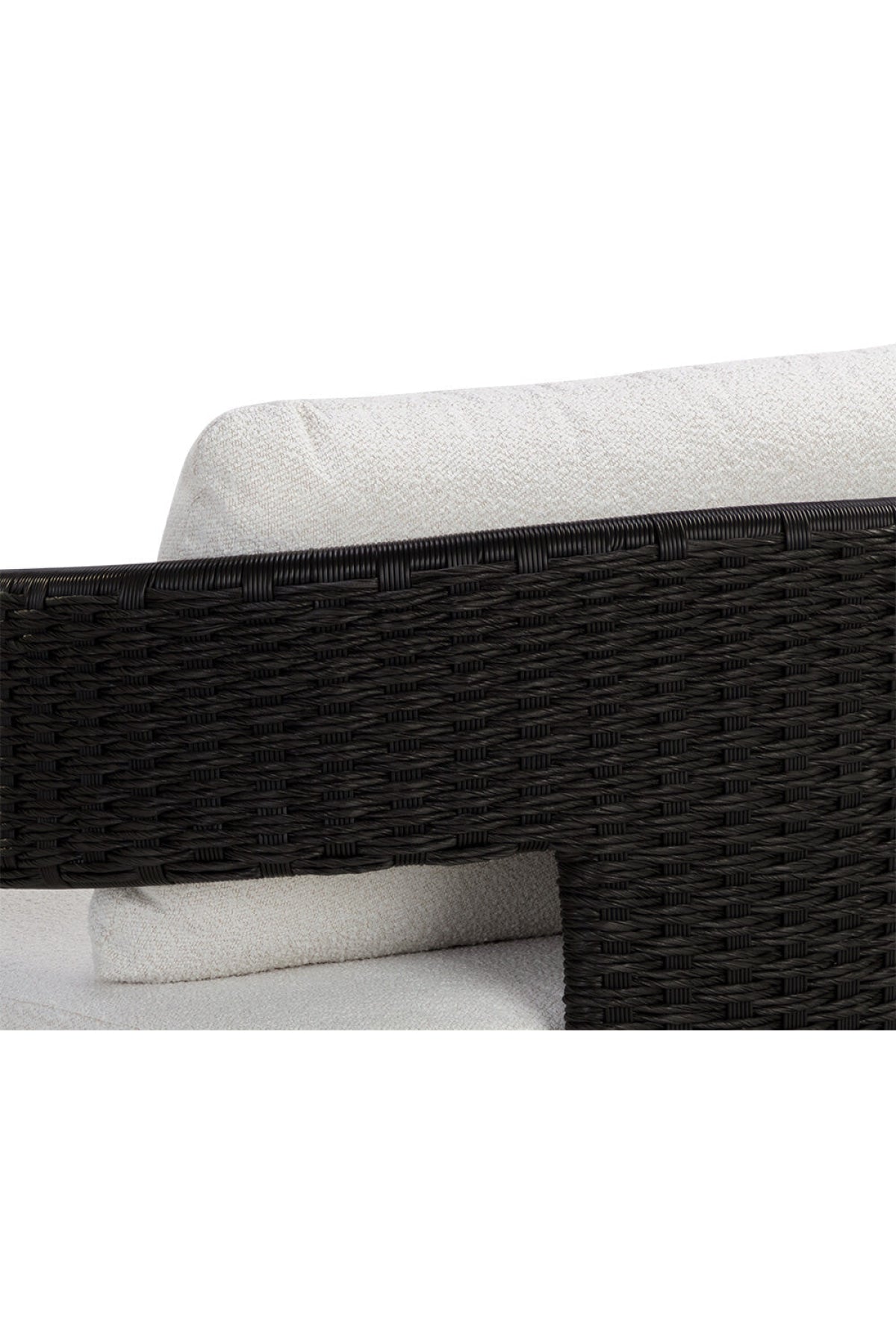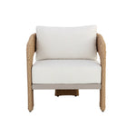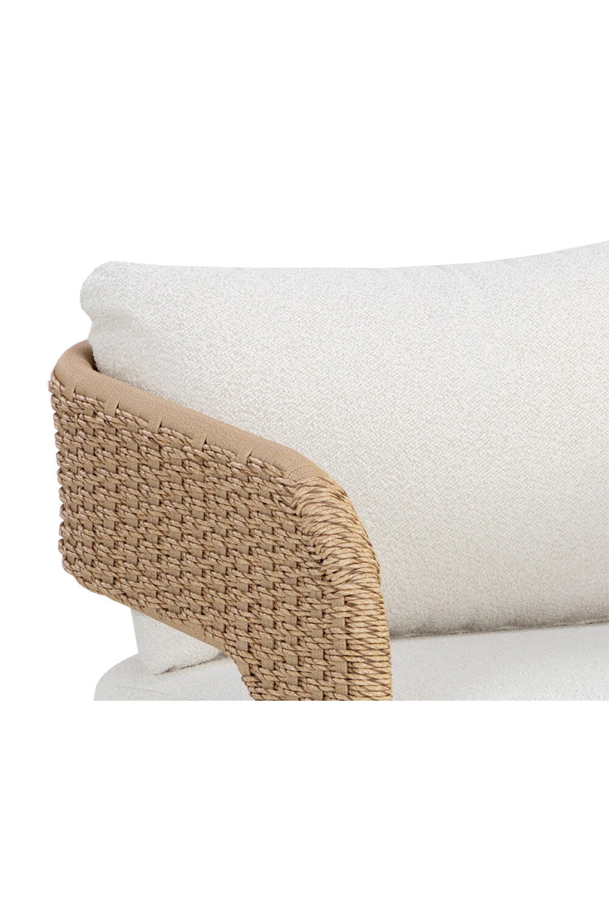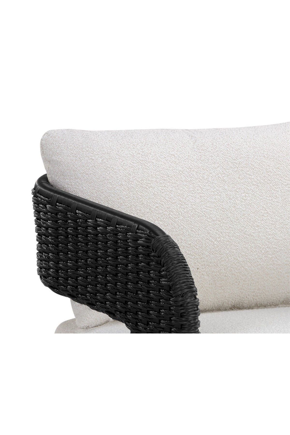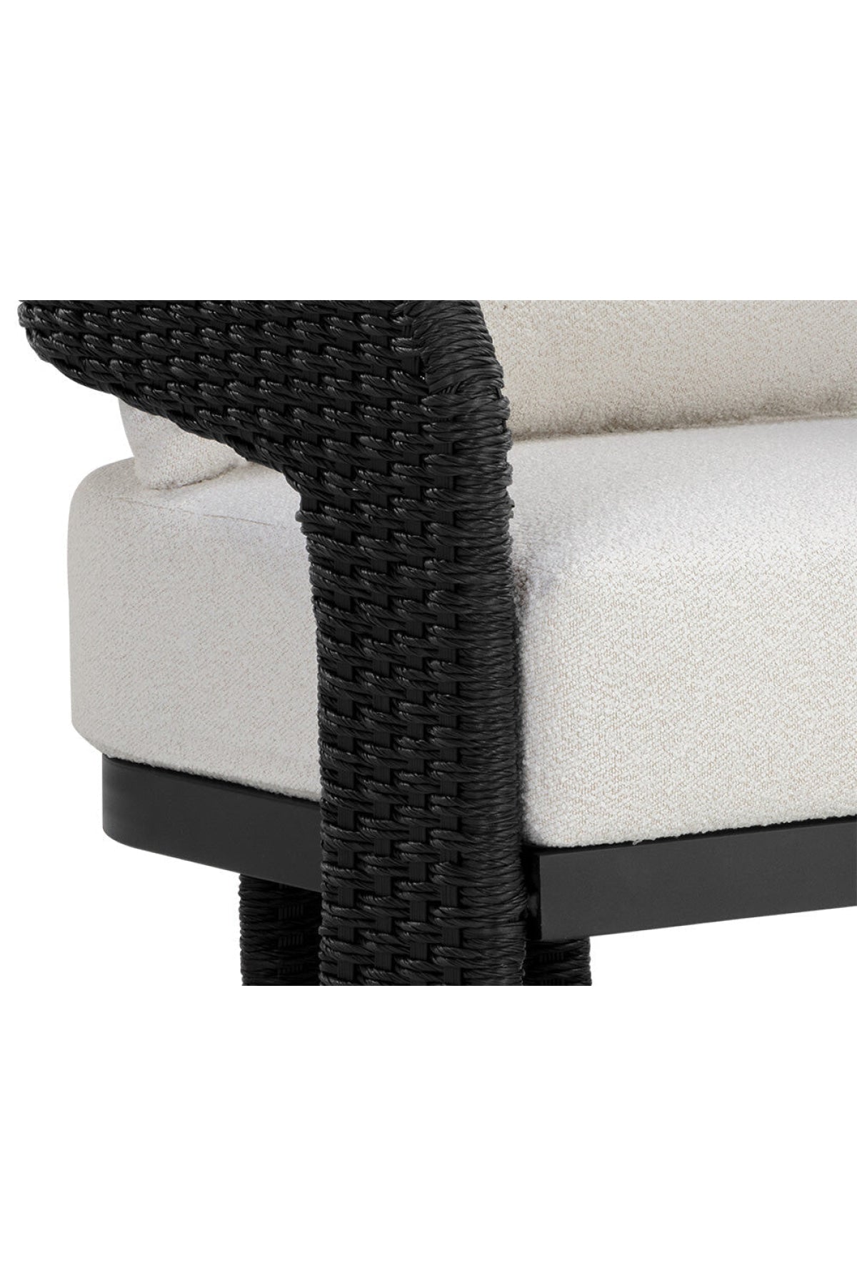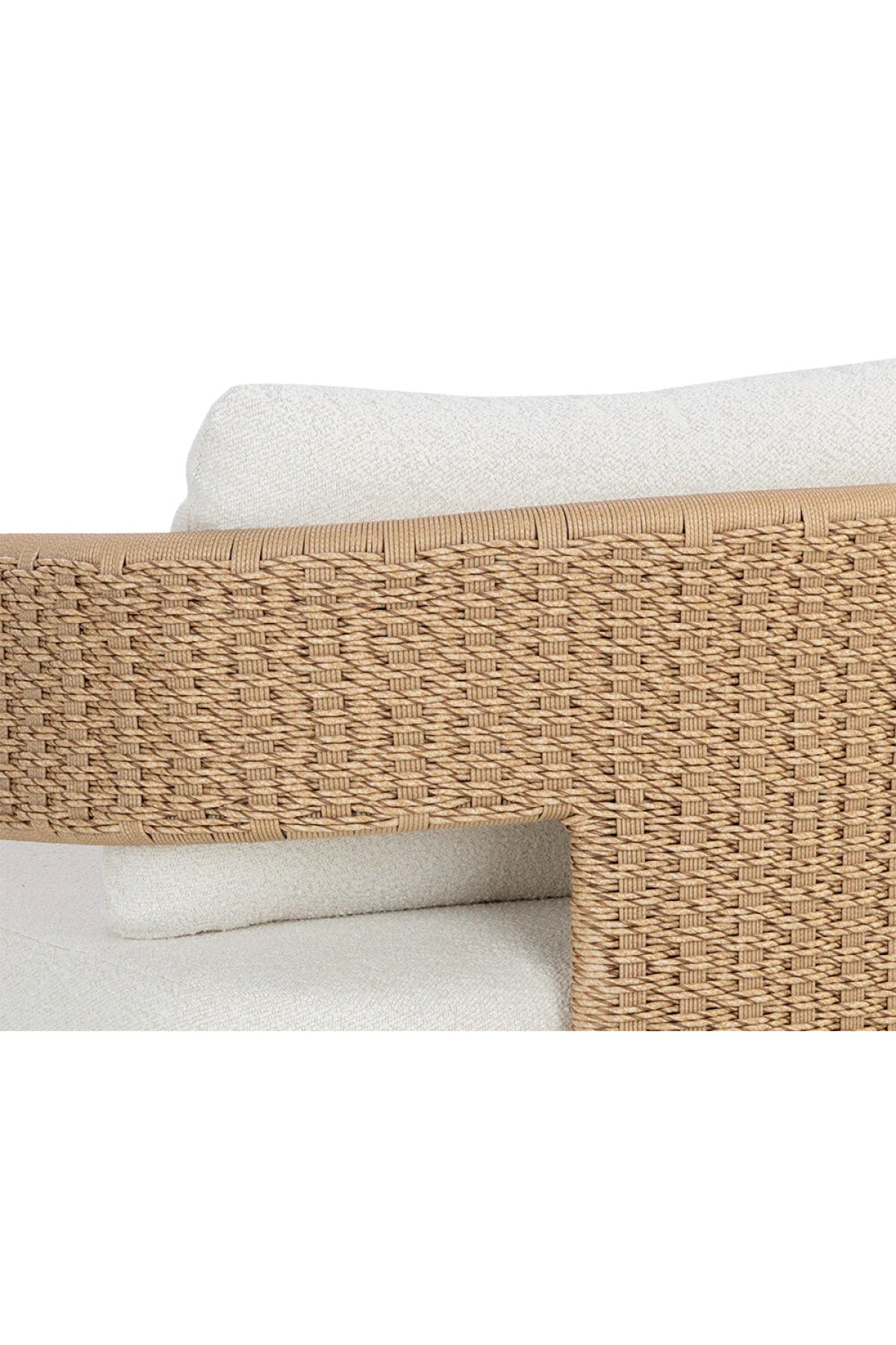 The geometric curves of the Pylos Lounge Chair will effortlessly stand out in any outdoor area. Twisted wicker wraps around an aluminum frame for a defined, textured look. Soft cushioning in our louis cream outdoor boucle performance fabric ties the look together. Performance fabric is moisture repellent, durable and easy to clean. Suitable for indoor and covered outdoor spaces.
