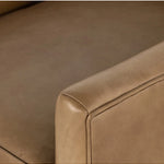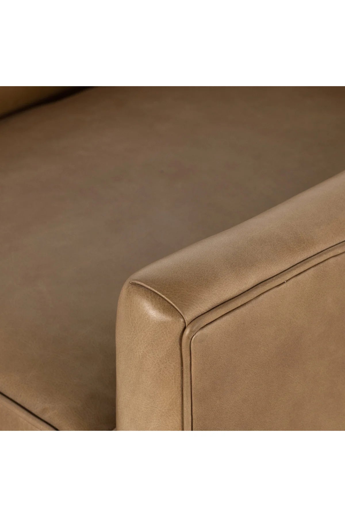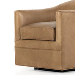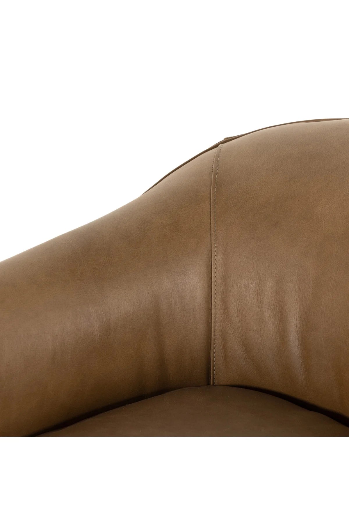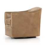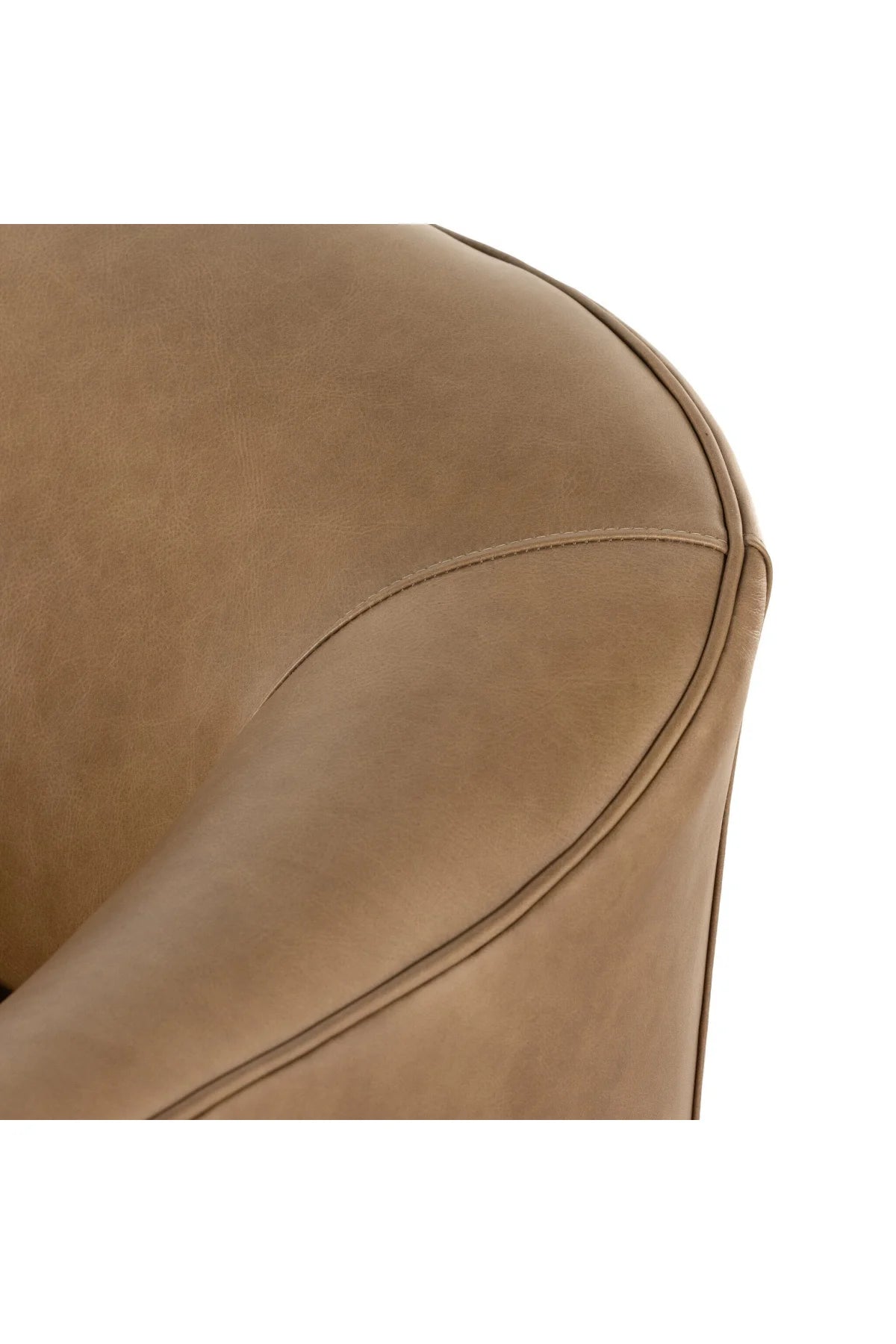 Meet the Quinton Swivel Chair. Taupe top-grain leather covers transitional barrel-shaped seating with a 360-degree swivel. Leather is intentionally finished for a casual, lived-in look.