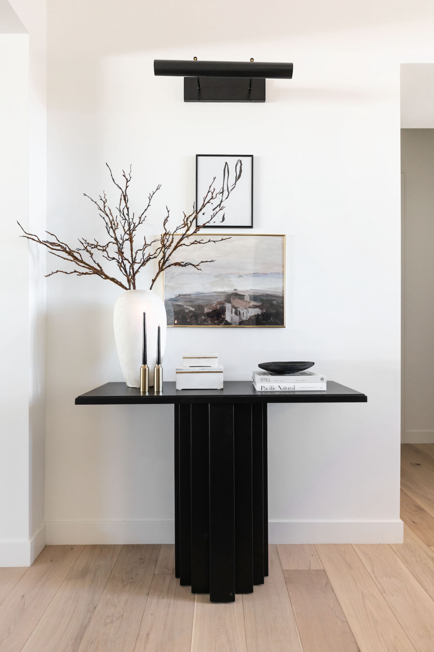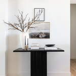 Modern Art Deco inspired detailing combined with a clean architectural form creates a dynamic, sculptural piece. The Range Console features a solid plantation grown wood top and base with a subtle and elegant stepped aesthetic.