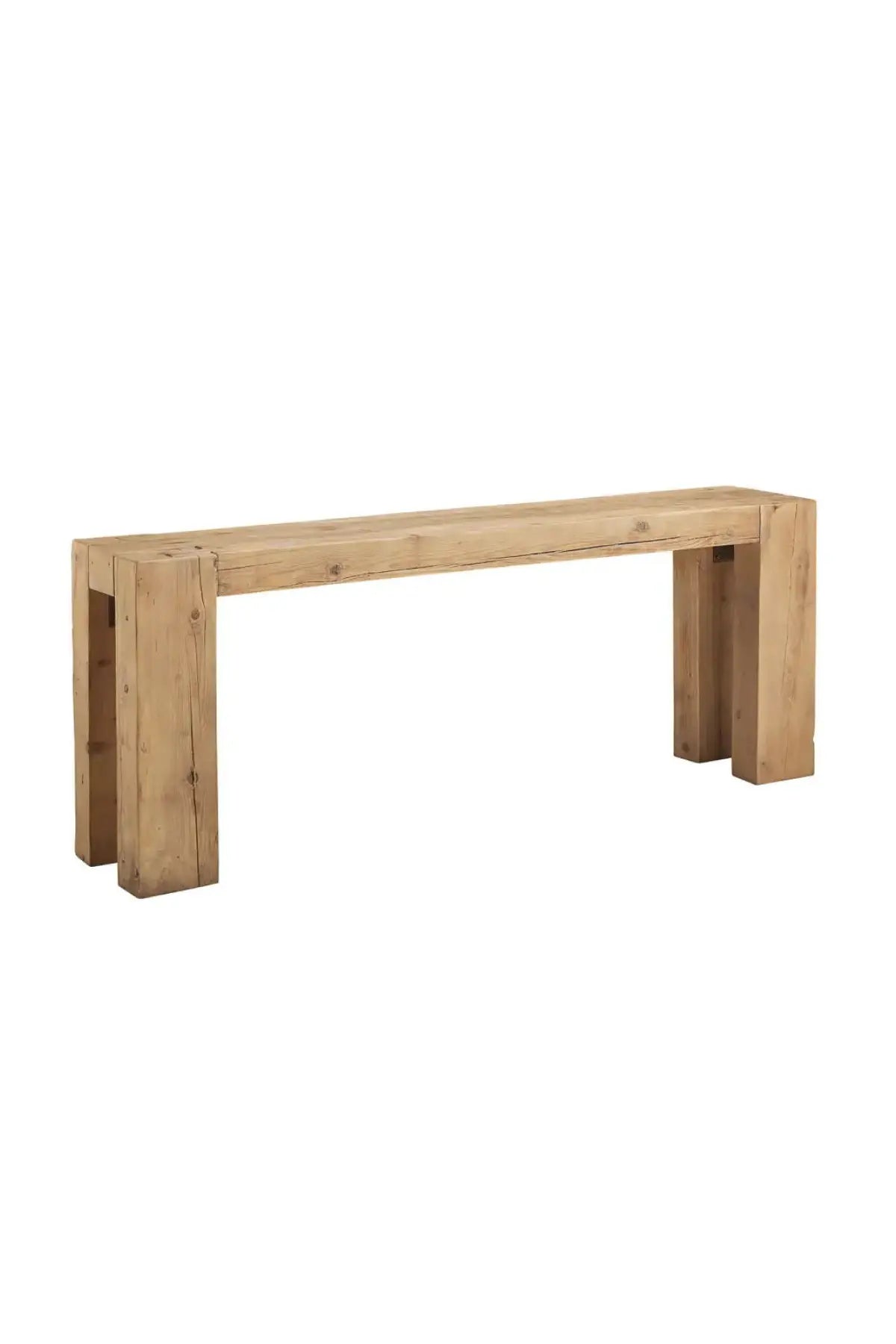 Meet the Ranger Console. This handsome console is simply stunning in what it delivers. High style. Reclaimed Pine timbers reveal their history, and the exaggerated dovetails demonstrate timeless construction detail. Due to the solid four inch thick top, seasonal splits are not only expected but create the inherent beauty of this table.