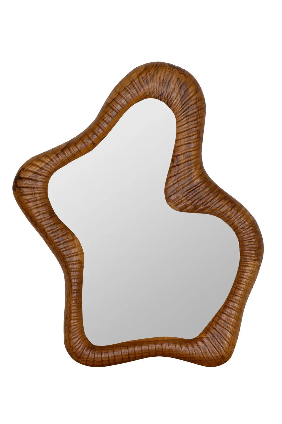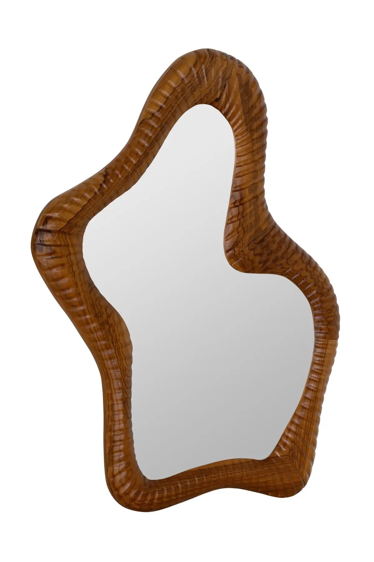 Elevate your space with the luxurious Raymond Wall Mirror. Featuring a unique abstract design and intricate wood detailing, this mirror adds a touch of sophistication to any room. Admire its artful elegance and indulge in the finest craftsmanship. Can be hung vertically or horizontally to suit your space. Wipe clean with a lint free, dry cloth. Hangs with D-Ring.