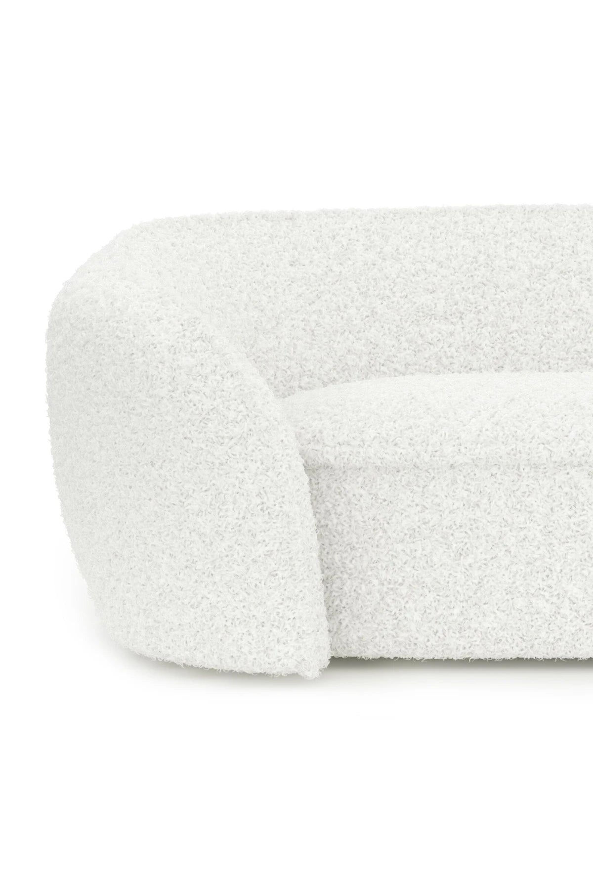 Meet the Regina Andrew Claudette Lounge Sofa. The Claudette is a textural staple that was designed to add a clean and contemporary vibe to your home. Luxe white bouclé upholstery is soft to the touch while the curved silhouette features a seamless blend from arm to backrest, offering a feeling of cohesive comfort.