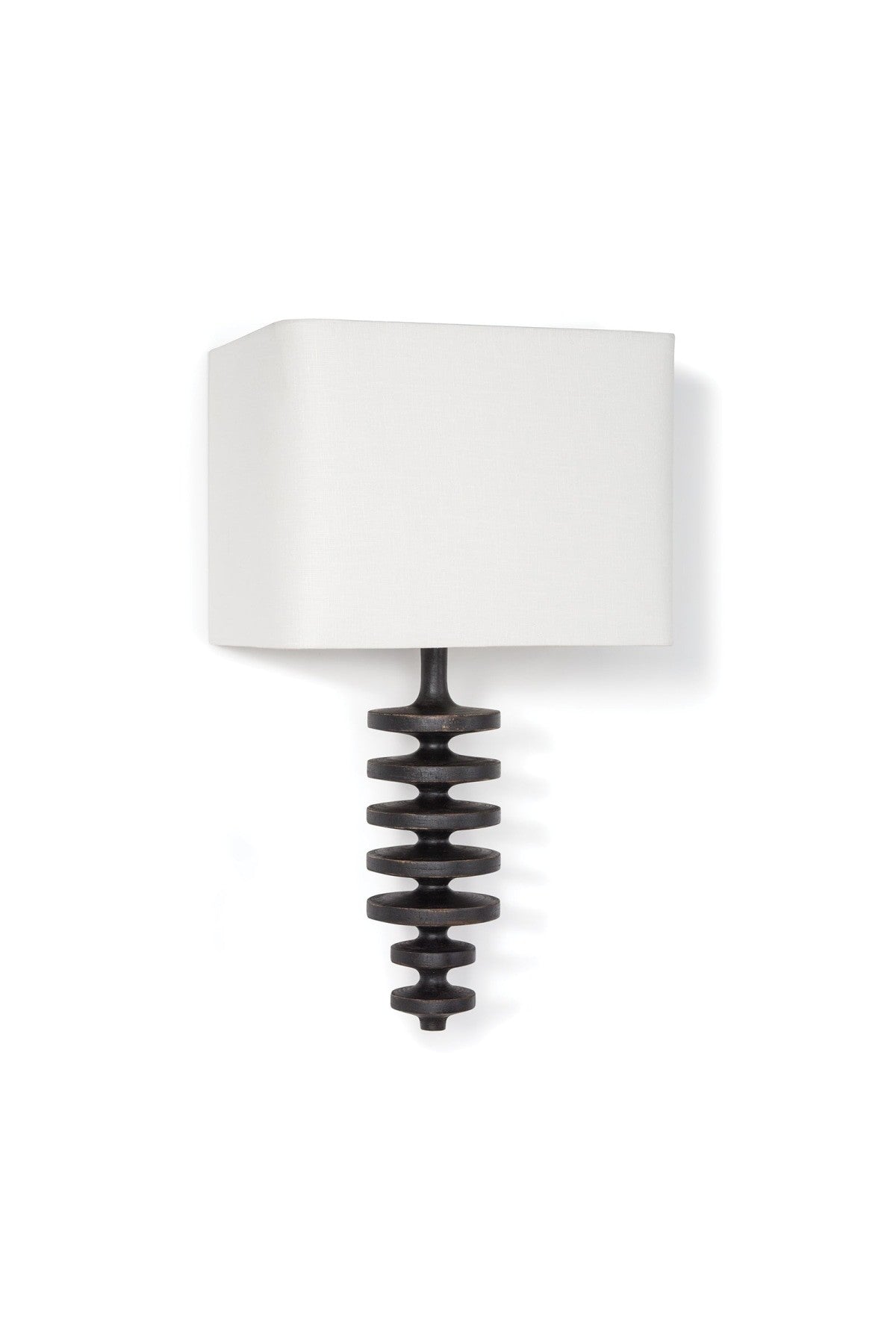 Meet the Regina Andrew Fishbone Sconce. Textured bands ripple down the graduated column of our sculptural Fishbone Sconce. Corrugated birch wood is handcrafted by artisans and balanced with a natural linen shade. The elegant profile makes a simple yet stunning statement to a living room, bedroom or den. Bulb(s) not included.
