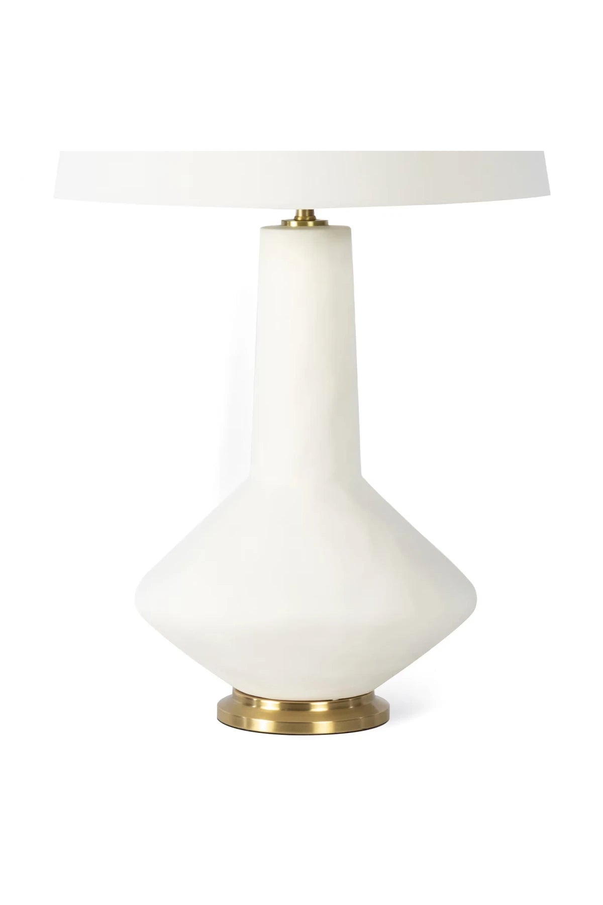 Meet the Regina Andrew Kayla Ceramic Table Lamp. Cast a warm glow on your living room or bedroom with the Kayla Ceramic Table Lamp. This unique piece features a white ceramic lamp with a brass base and matte finish, resulting in a timeless yet unexpected silhouette. It's topped off with a crisp natural linen shade that shows off its clean lines. Bulb(s) not included.