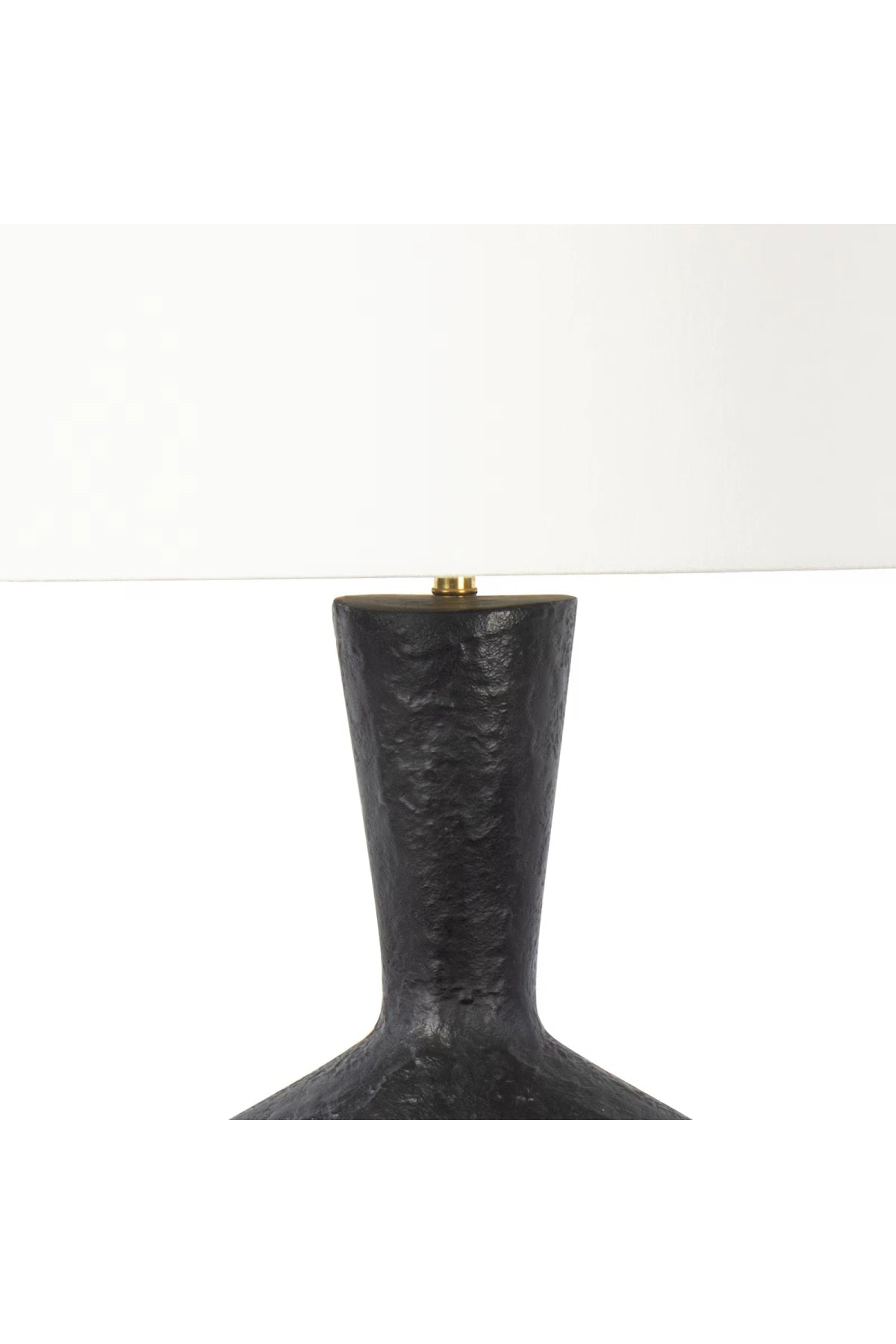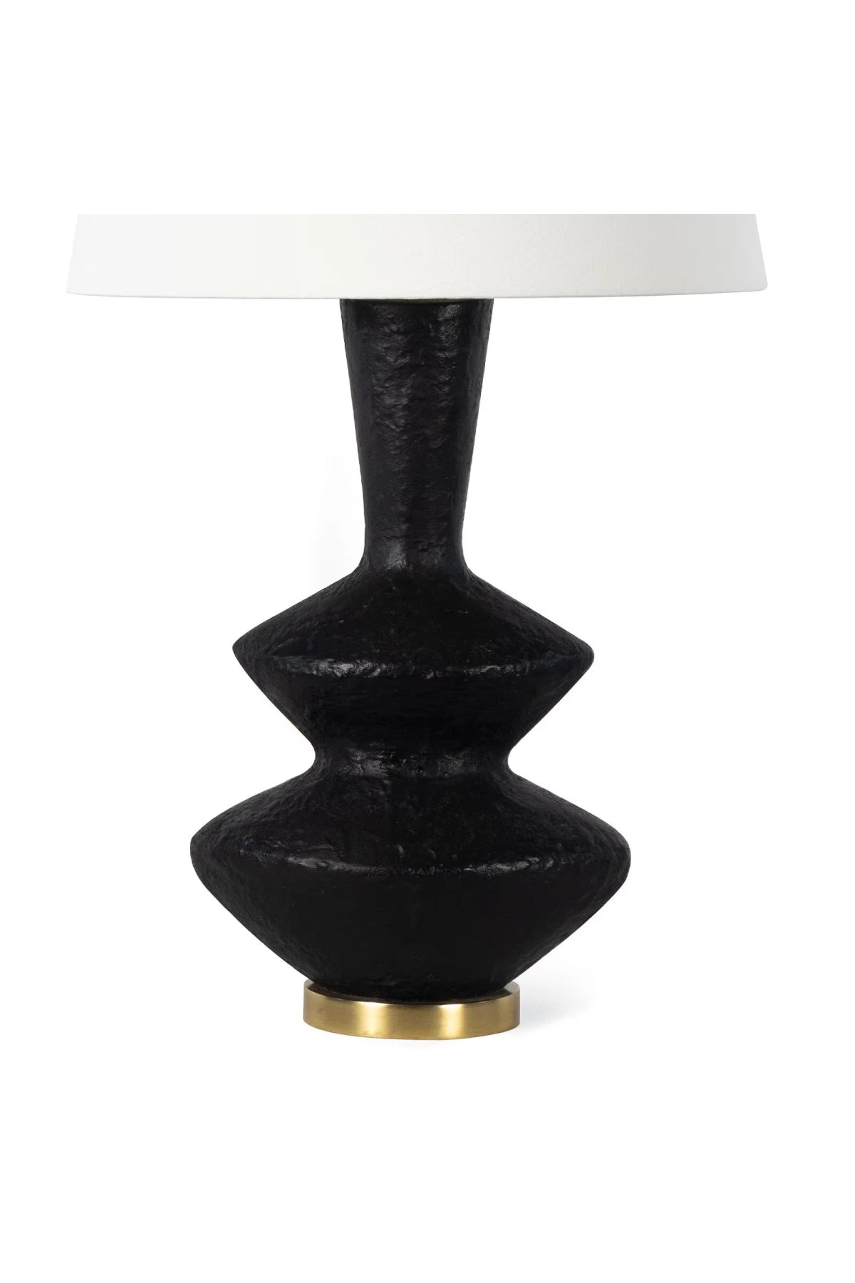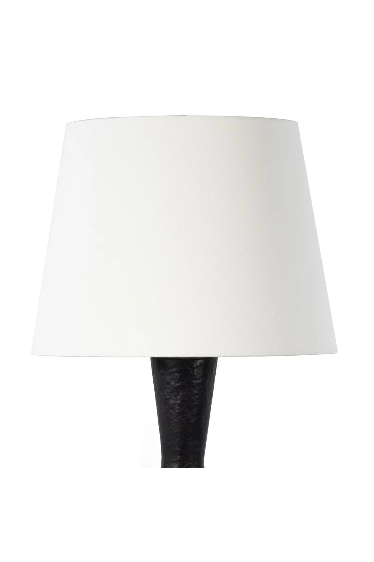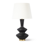 Meet the Regina Andrew Poe Metal Table Lamp. The Poe Metal Table Lamp is a sculptural piece that is destined to be a focal point in your home. The blackened plaster finish on its metal body is mottled with texture that is crafted to have an artisan, handmade feel that pairs nicely with its neutral brass base and natural linen lamp shade. Bulb(s) not included.