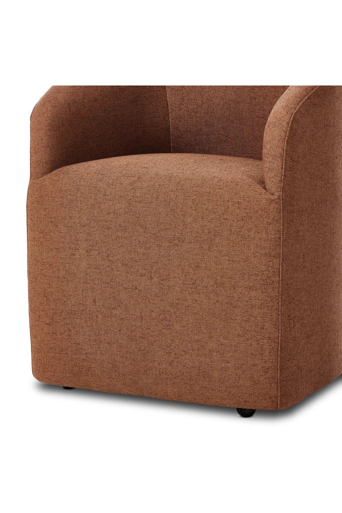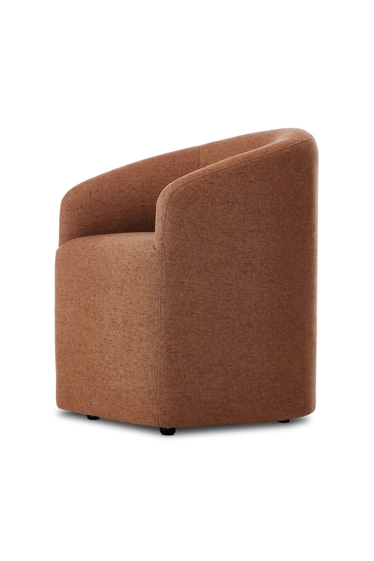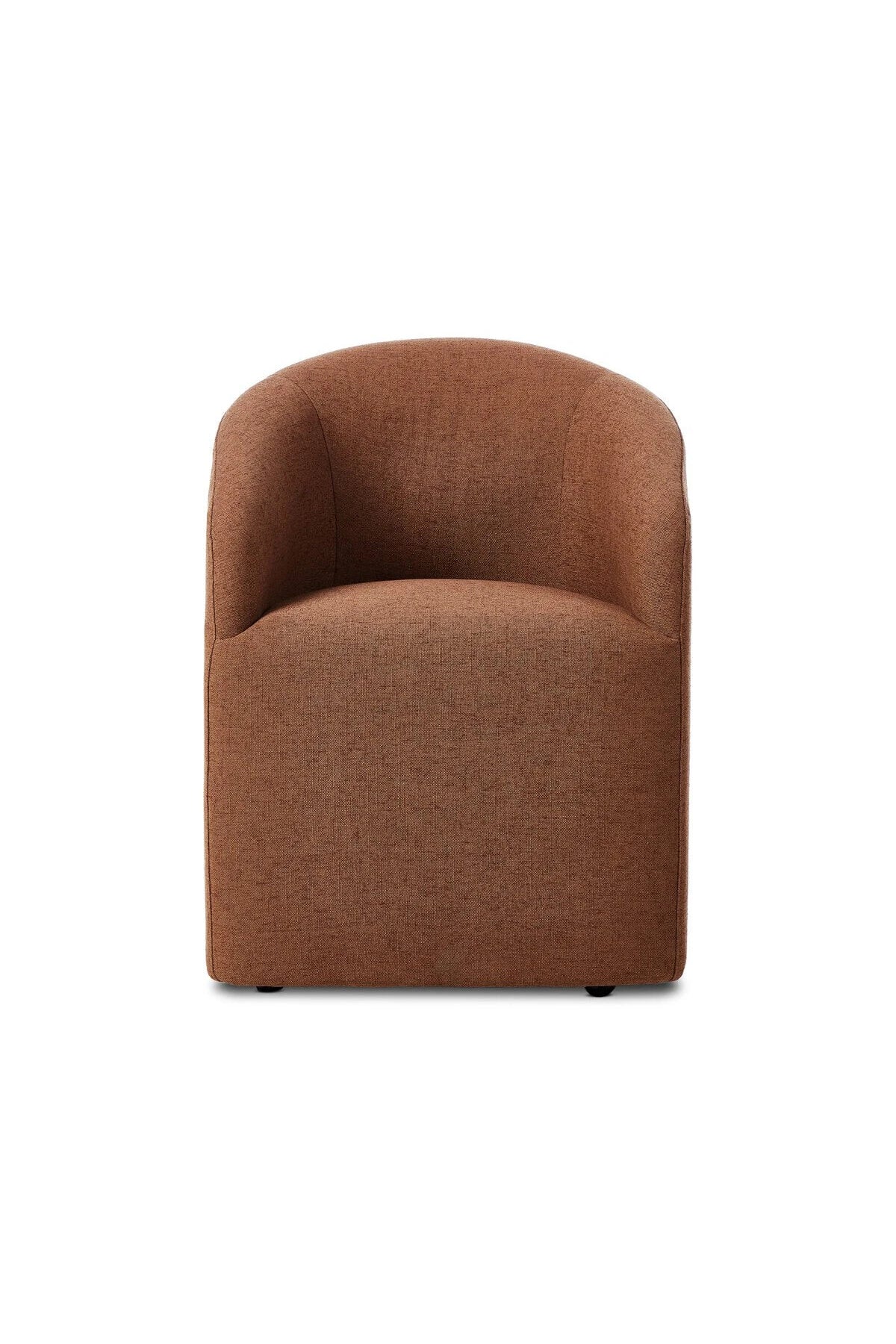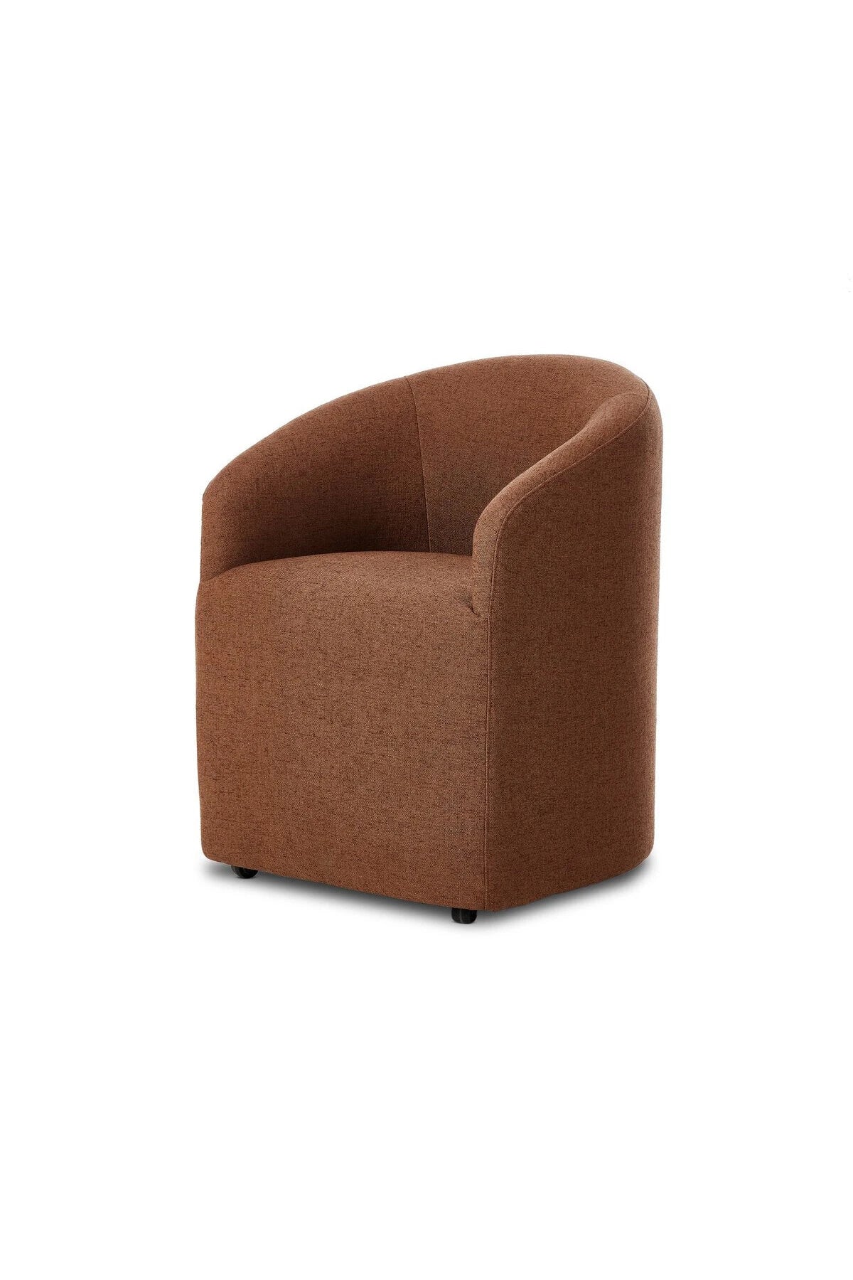 Meet the Rhett Dining Chair. A fully upholstered barrel-style back dining chair creates a comfortable, cocoon-like sit. Slight scale perfect for smaller dining spaces.