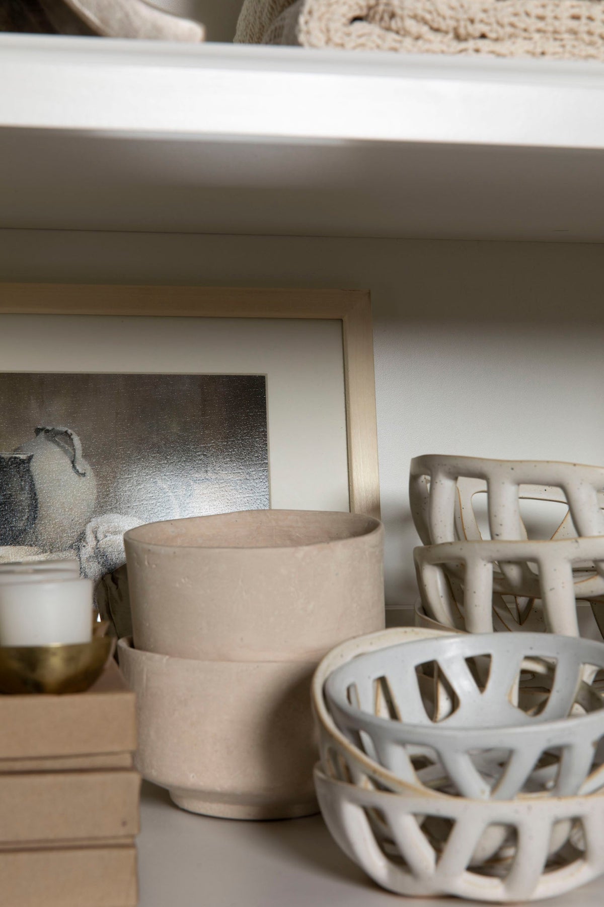 A beautiful addition to any home, this stunning bowl is loaded with organic texture + vintage vibes. Style on a shelf or use as a statement making fruit bowl + enjoy for years to come!