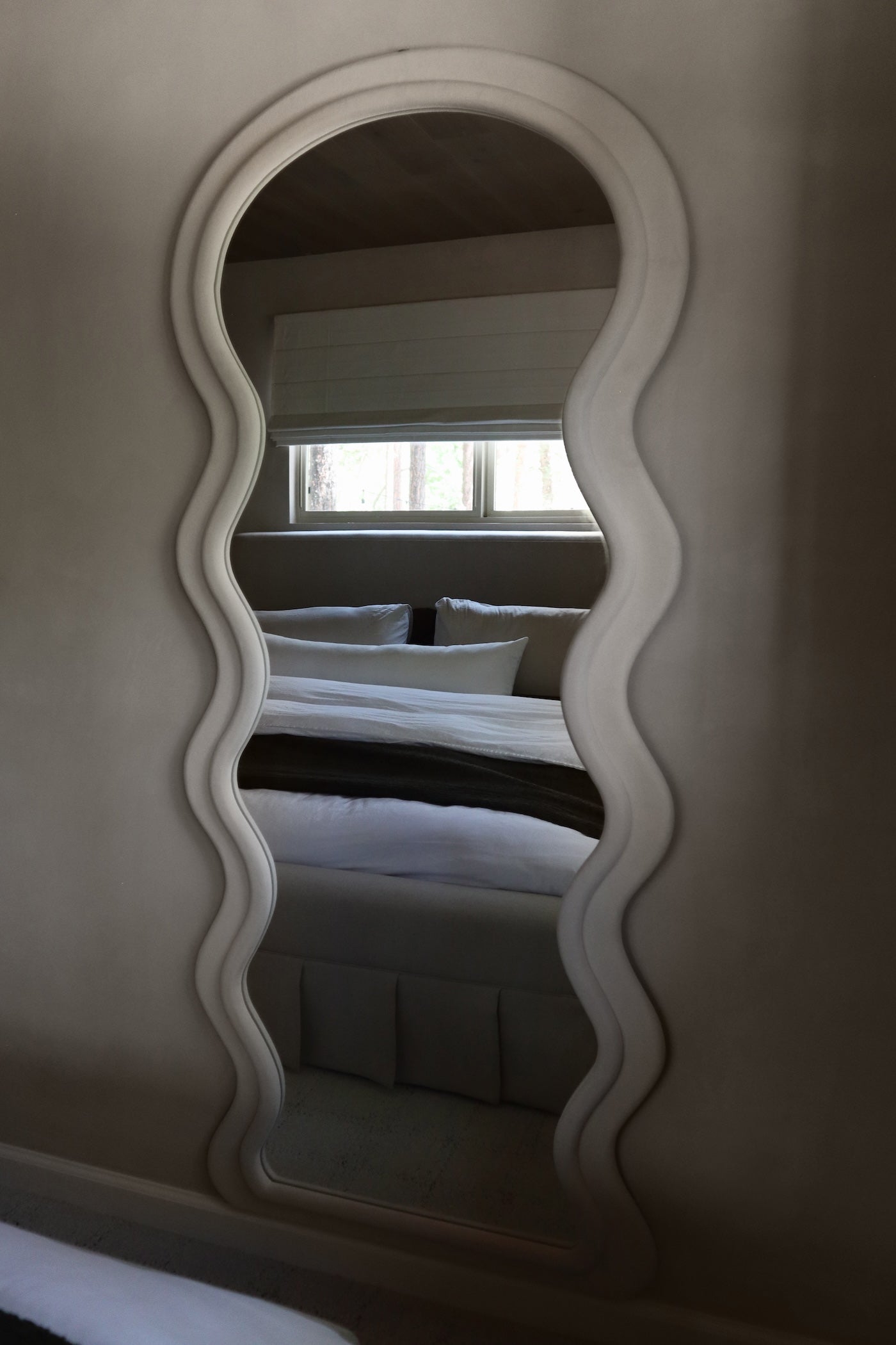 Step into style with the Rhodes Velvet Floor Mirror, a luxuriously plush statement piece designed for the fashion-forward. Wrapped seamlessly in sumptuous velvet that boasts a delicate cotton-like pile, this oversized mirror echoes the chic retro vibes of today's trendsetting aesthetics.
