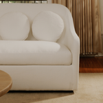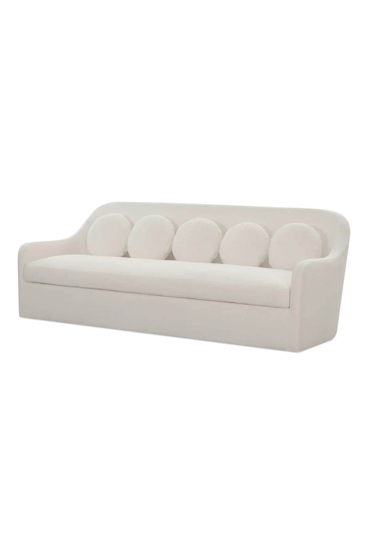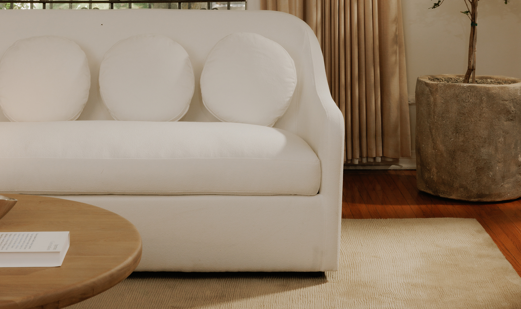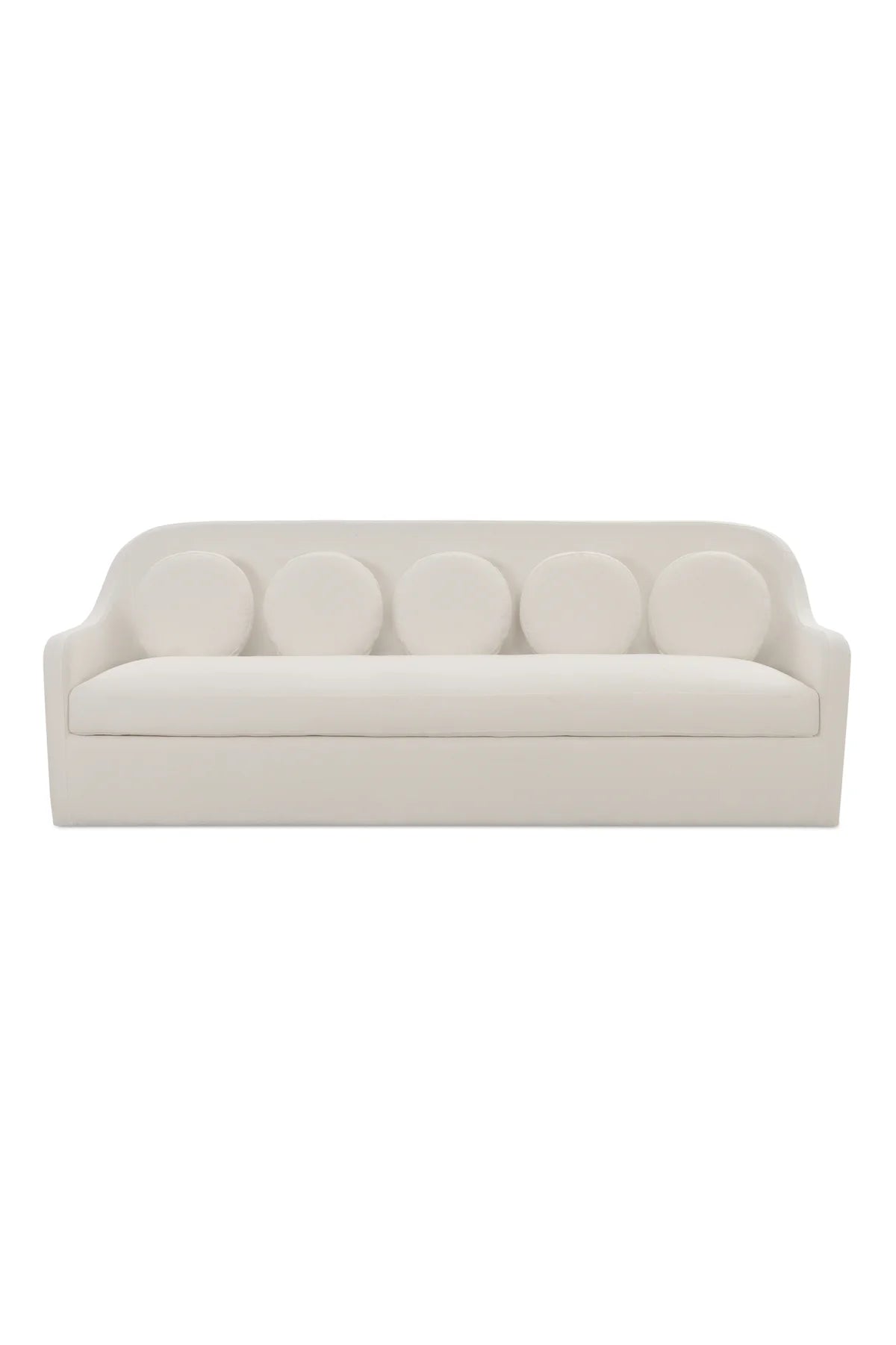 The Rialto Sofa straddles the traditional and the contemporary, with mid-century inspiration through five playful, pancake-shaped pillows. An embrace of everyday living proportioned for relaxation, this piece features inviting round forms and durable, forgiving Performance Fabric upholstery, balancing playful sophistication and enduring elegance.