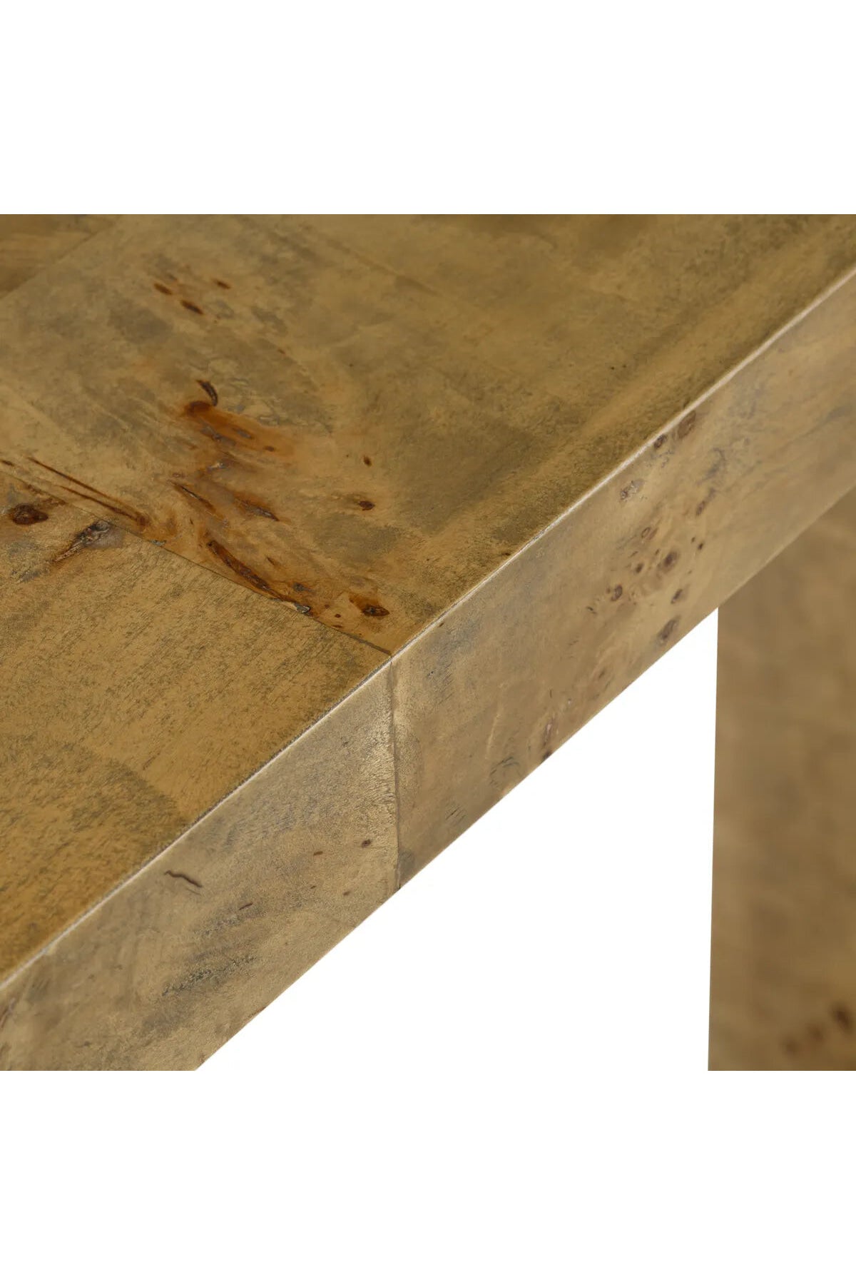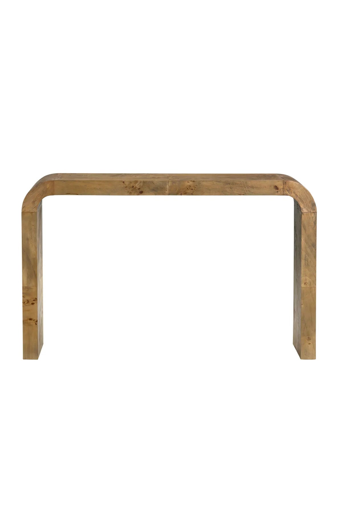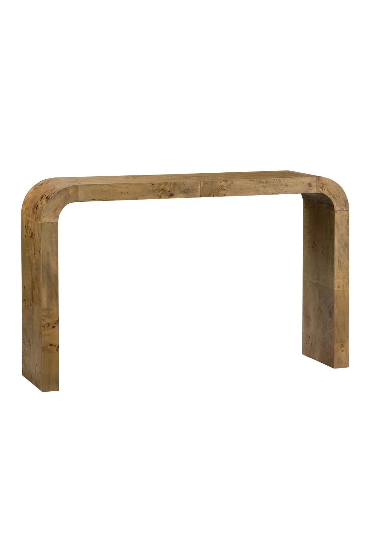 Introducing the Richmond Console Table, a work of skillful artistry that celebrates the use of organic materials. This ultra-modern design is constructed with a unique form of lumber known as Mappa Burl. A fascinating display of dark colored knots and spots, this unique pattern of natural tree growth ensures that no two results are alike.