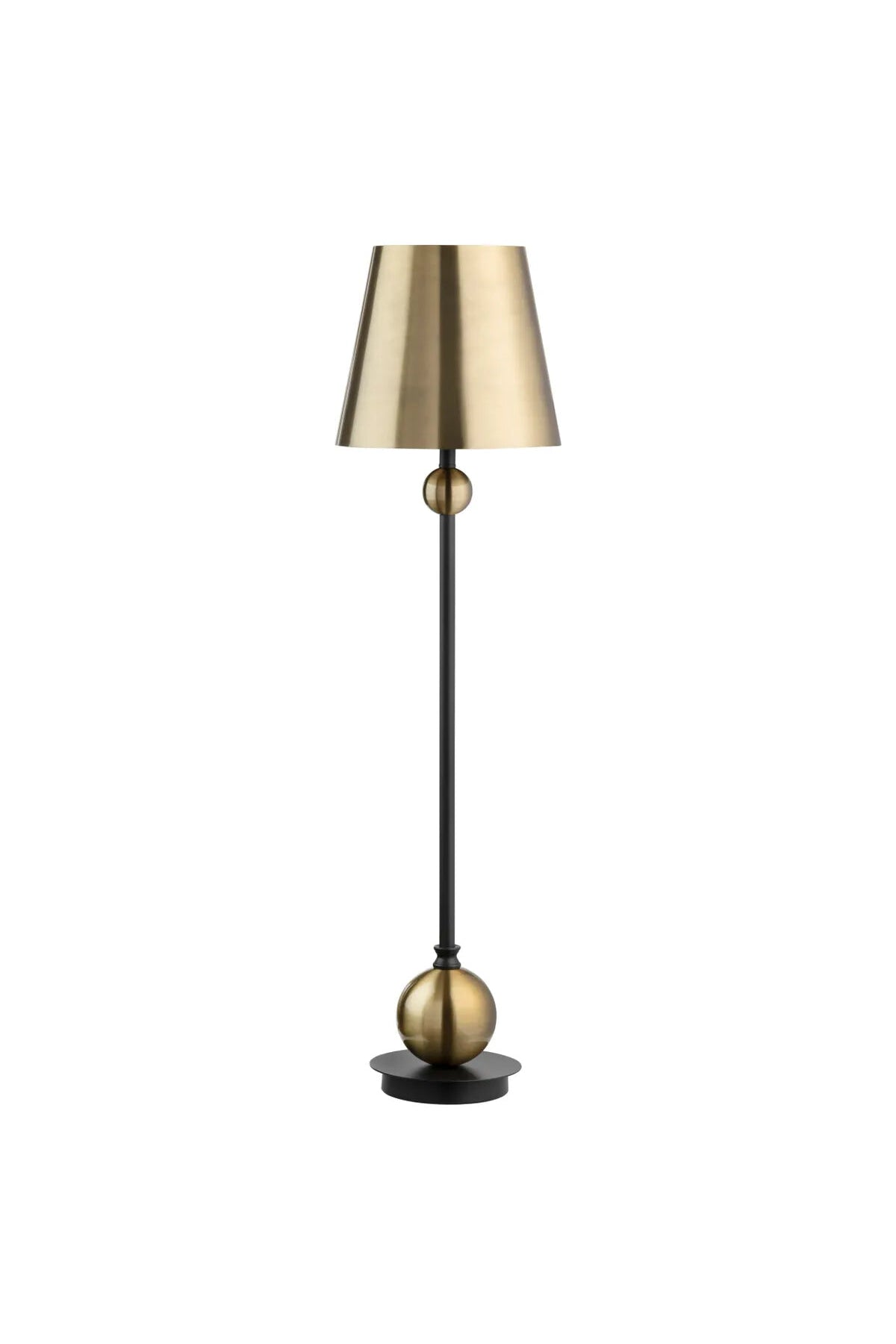 Meet the Rita Buffet Lamp. This slim metal piece features a two-tone appearance with a combination of brushed gold and matte black finishing. Two gold spheres add a decorative element to the overall design that gives way to glistening display of contemporary style. Sold as a set of 2.