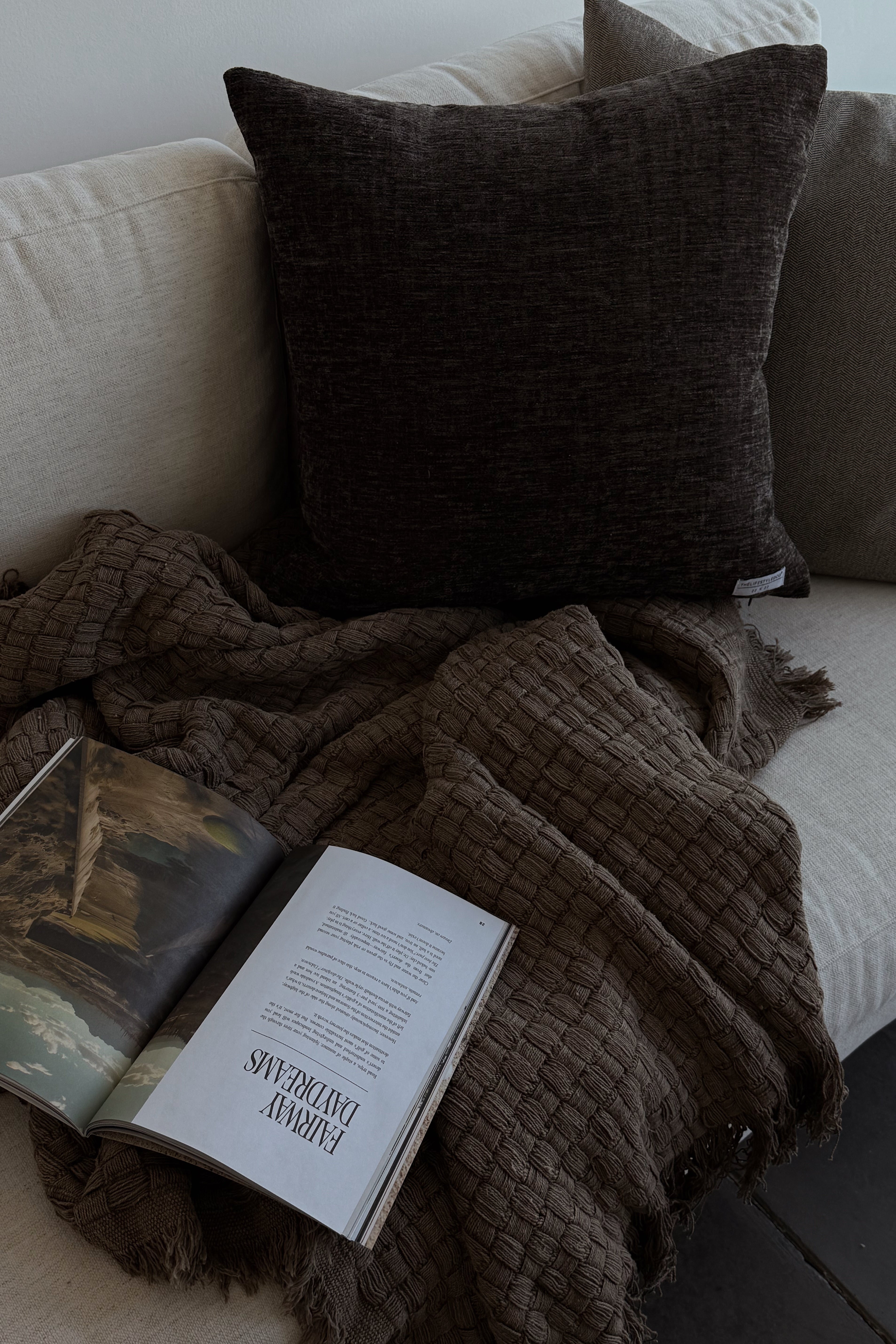 Snuggle up in style with the Roberts Cotton Throw in Brown! Made from luxurious cotton, this throw is loaded with texture, adding an elevated and cozy touch to any room.