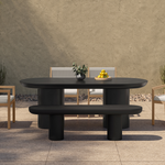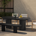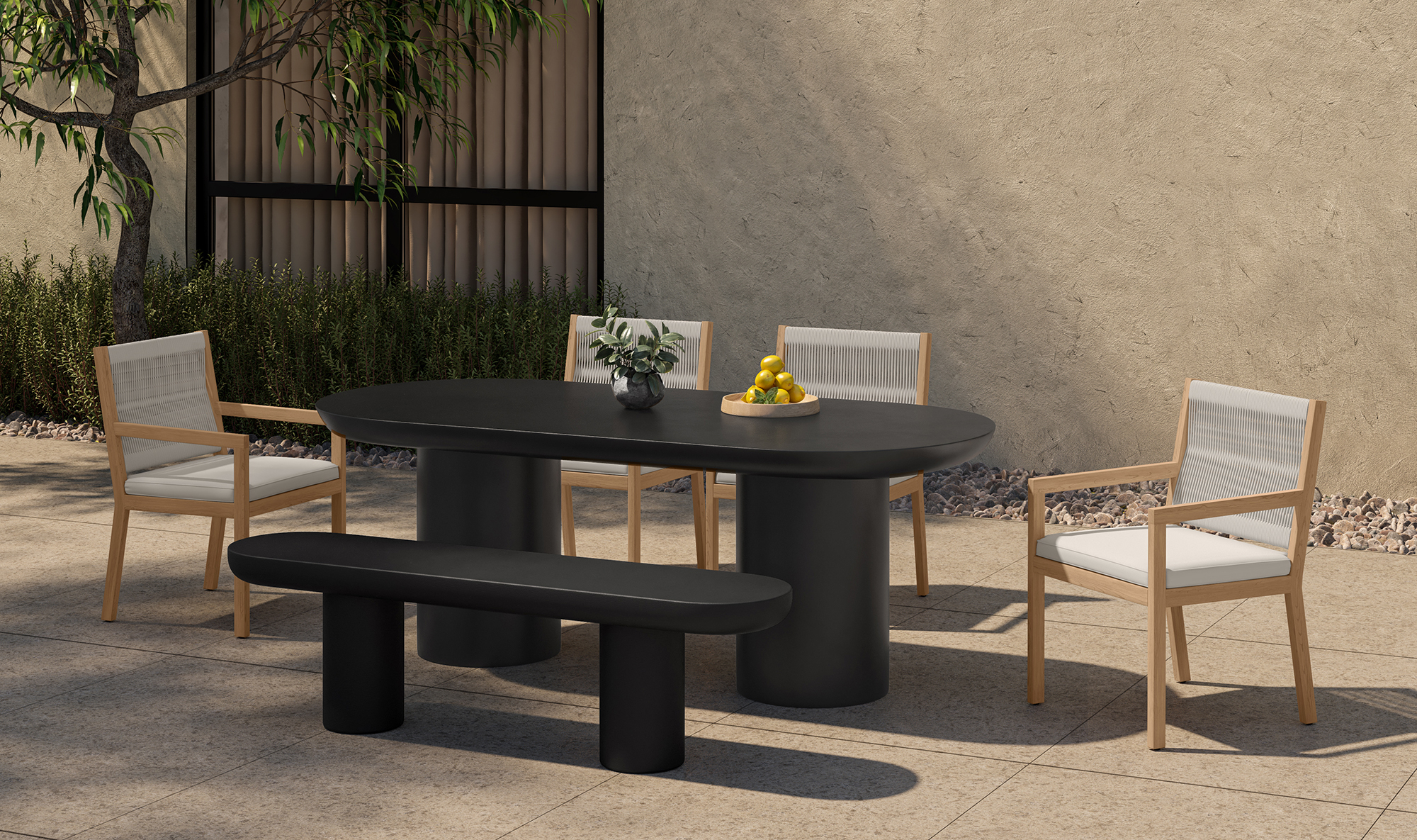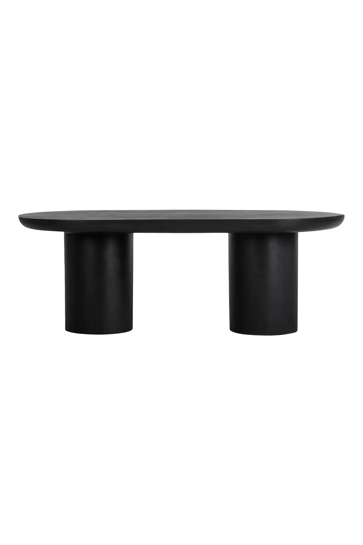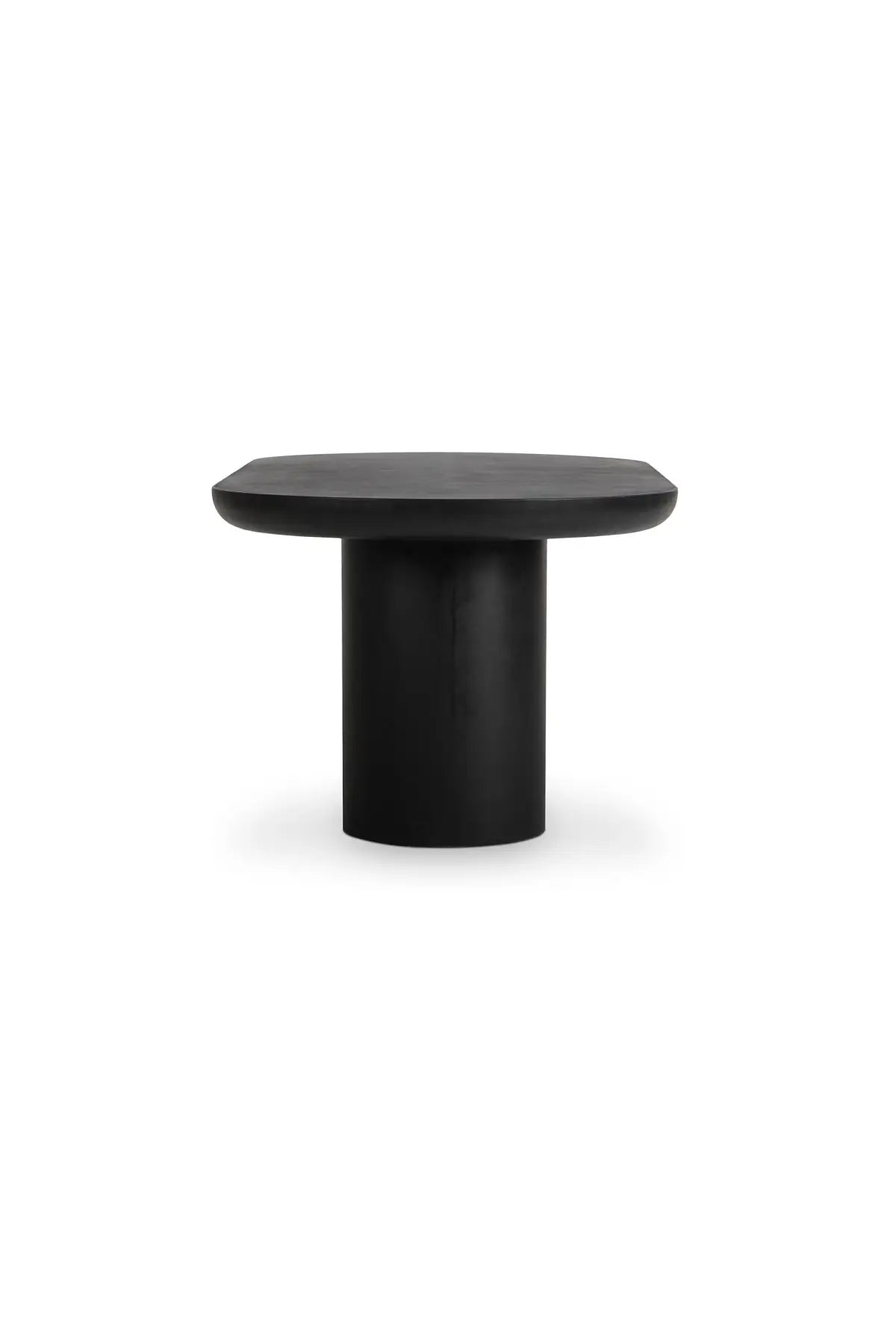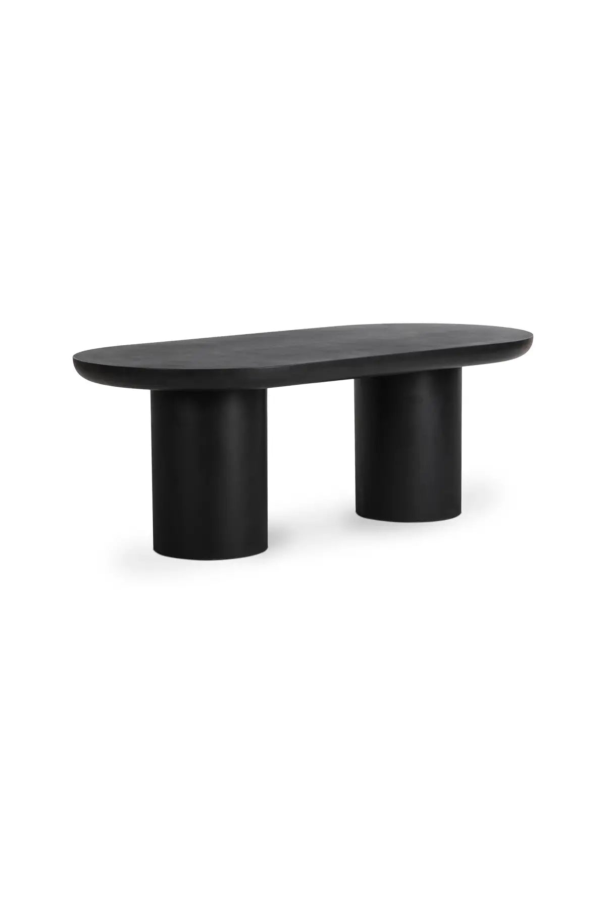 Made from fiber-reinforced natural concrete with a jet black finish and set in a sturdy iron frame, the Rocca Dining Table's elemental design places material and forms center stage. Featuring a monolithic contemporary look, this 6-seater dining table's twin pillars and slab tabletop serve for both drama and comfort.