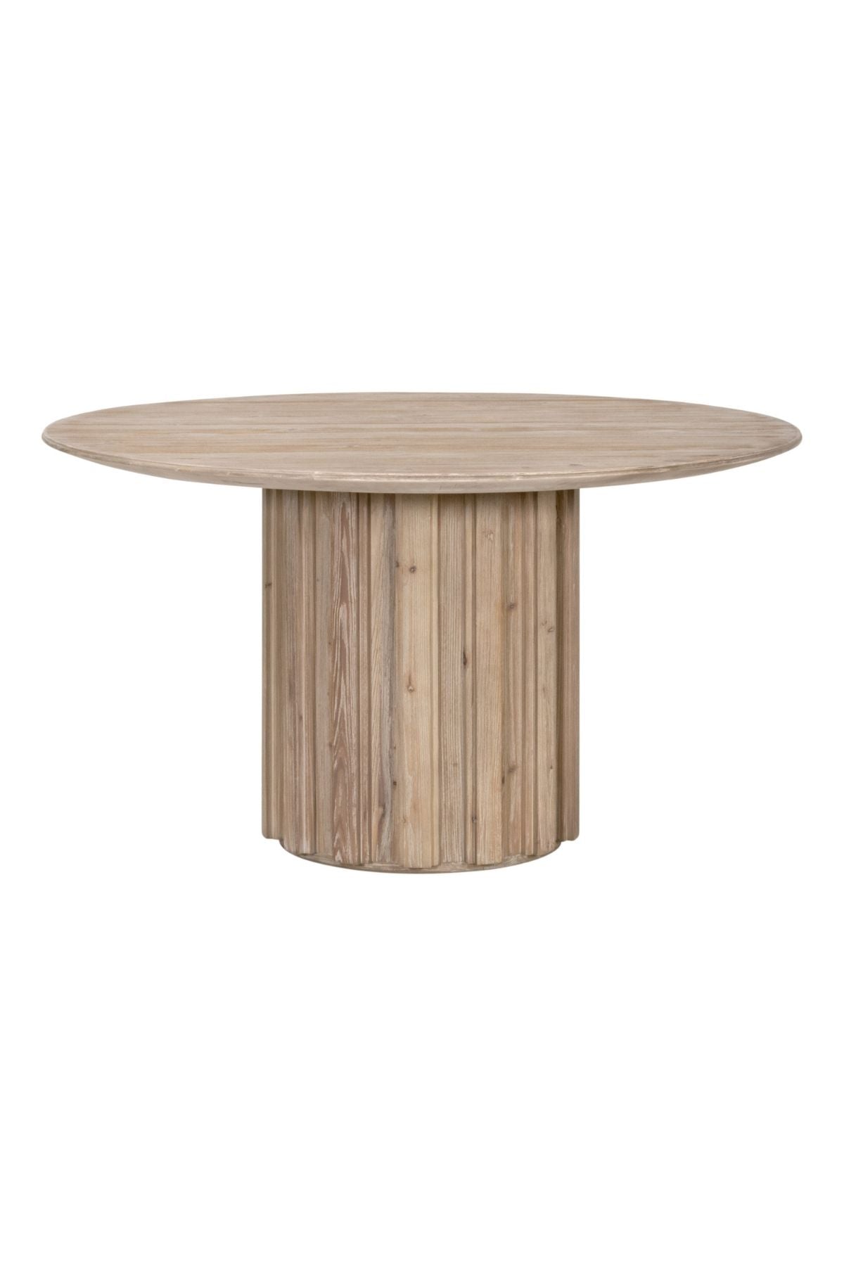 The Roma Round Dining Table stands as a testament to timeless elegance and sustainability. It is crafted from pine veneer and solid reclaimed pine wood for a subtle rustic finish. The beautiful reinforced, stain-resistant pine wood has a smoke gray finish, bringing a gentle and welcoming ambiance to any dining area.