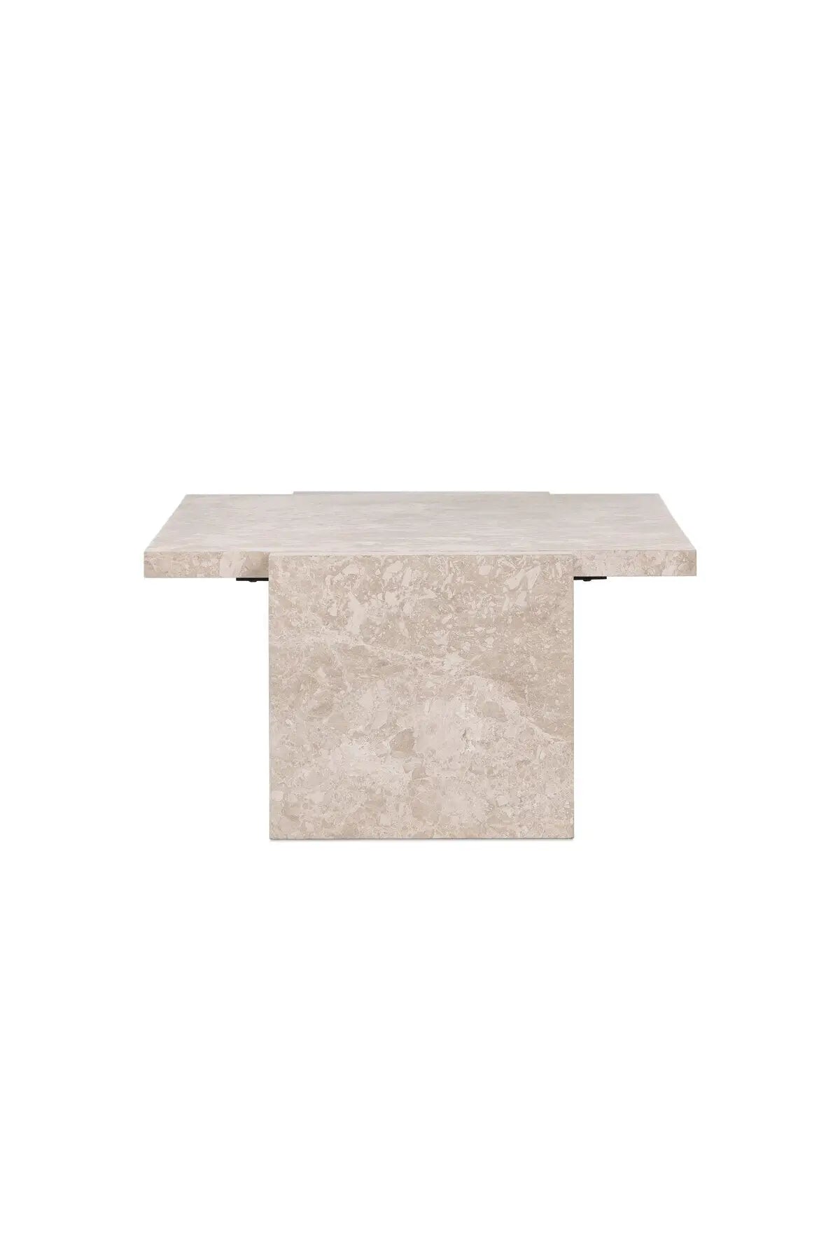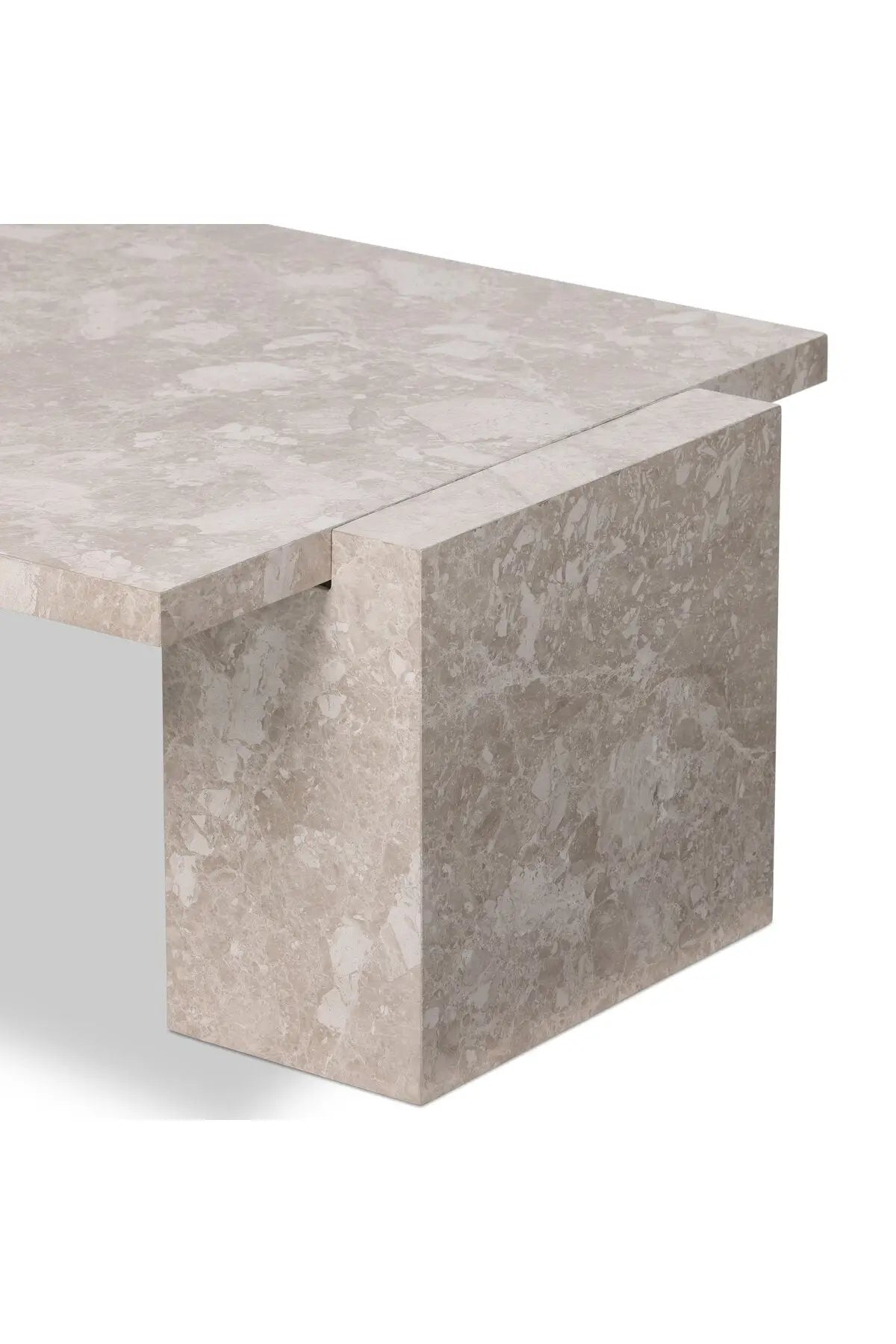 Meet the Romano Coffee Table. Solid marble sheets are laminated to create cubed cradle bases for a thick-cut tabletop. Heavy veining and natural swirls speak to the nature of marble, with each piece being entirely unique.
