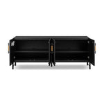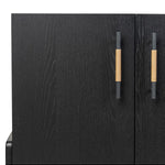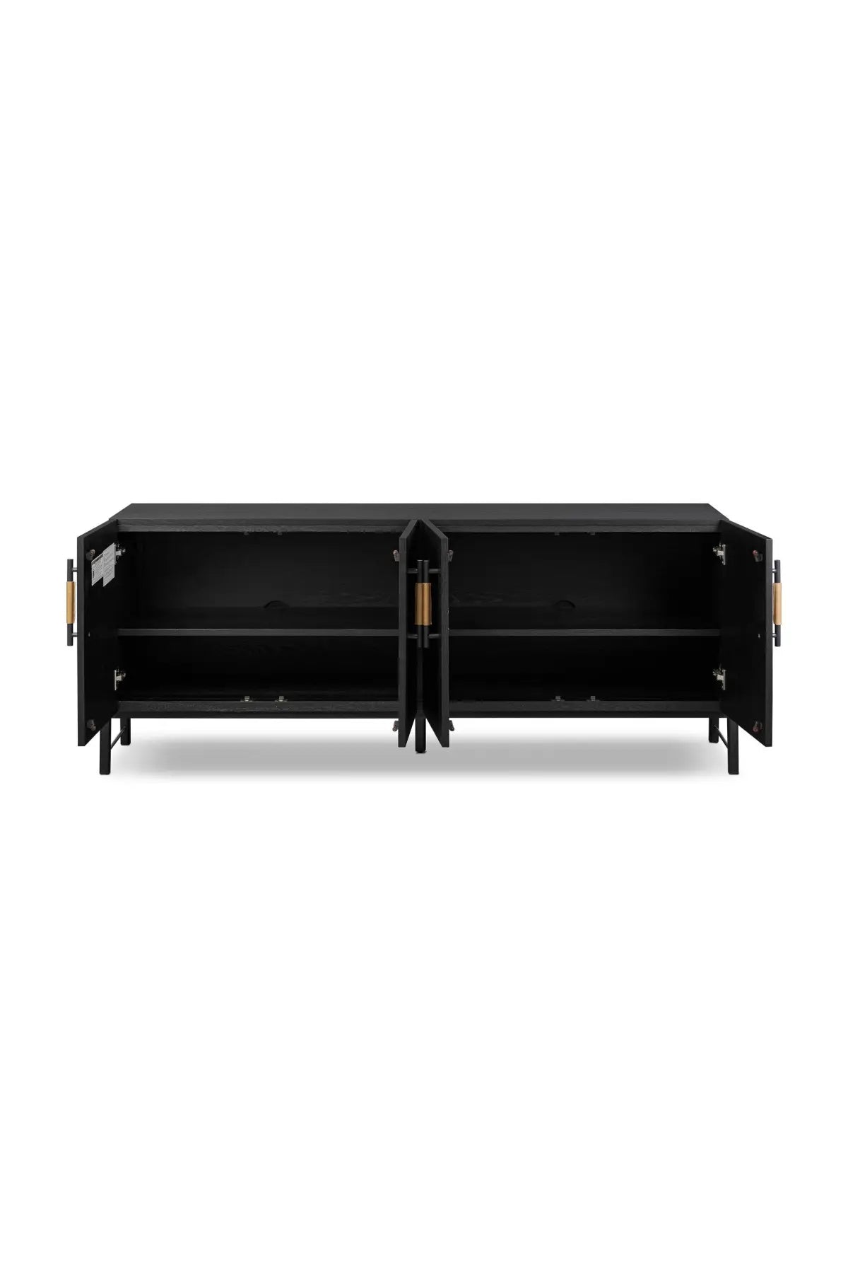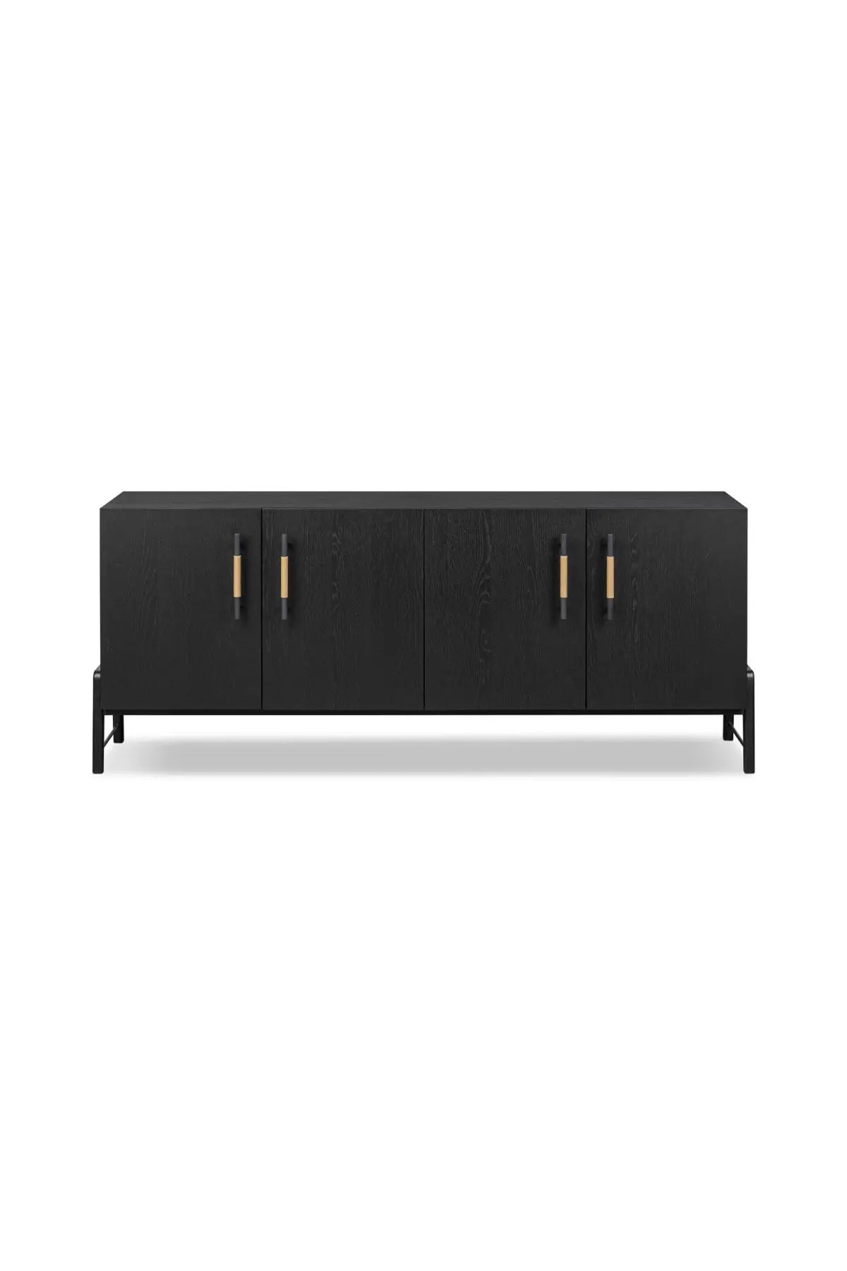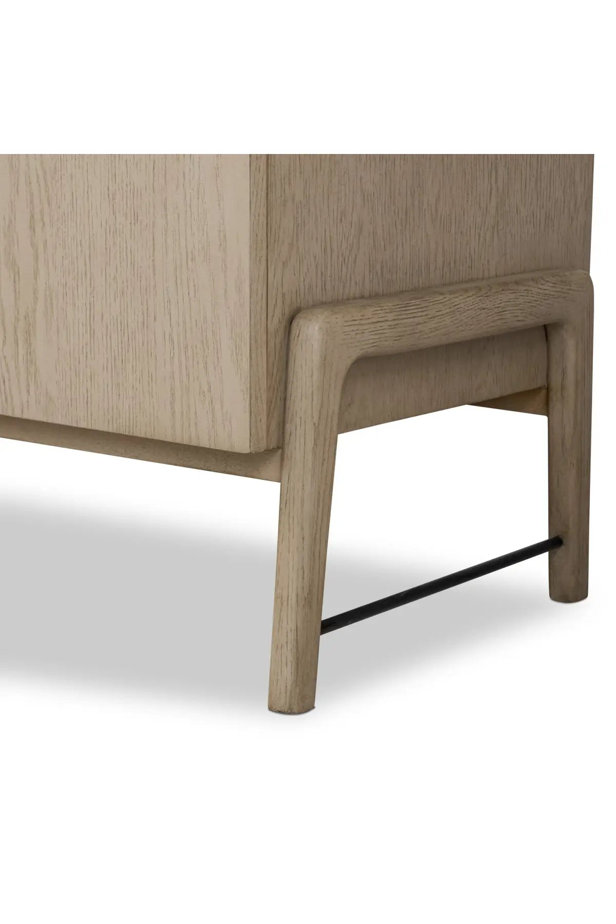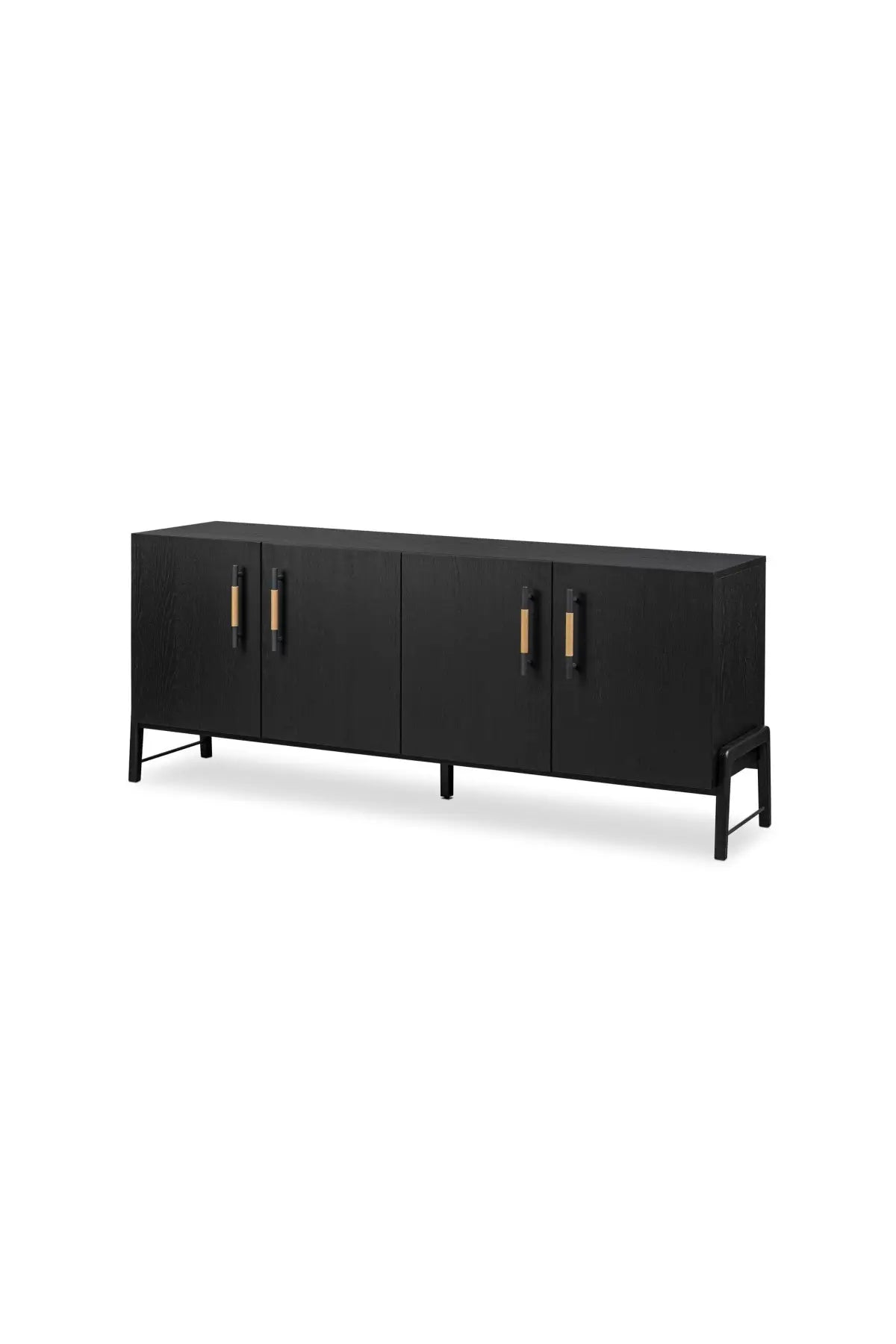 Meet the Rosedale Sideboard. Accented with iron hardware wrapped in top-grain leather, light-finished or black-finished oak veneer forms a clean silhouette with plenty of storage. Outset legs add an element of interest.