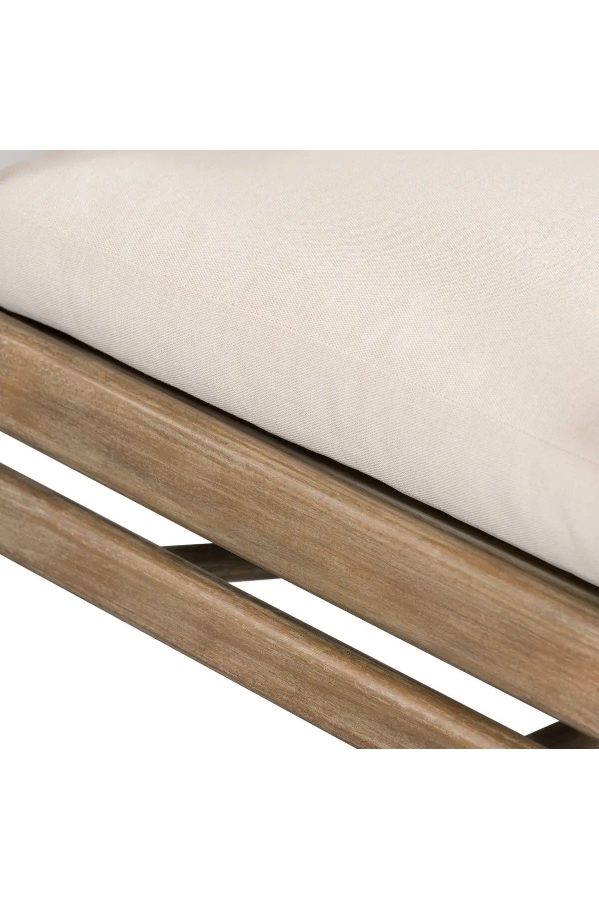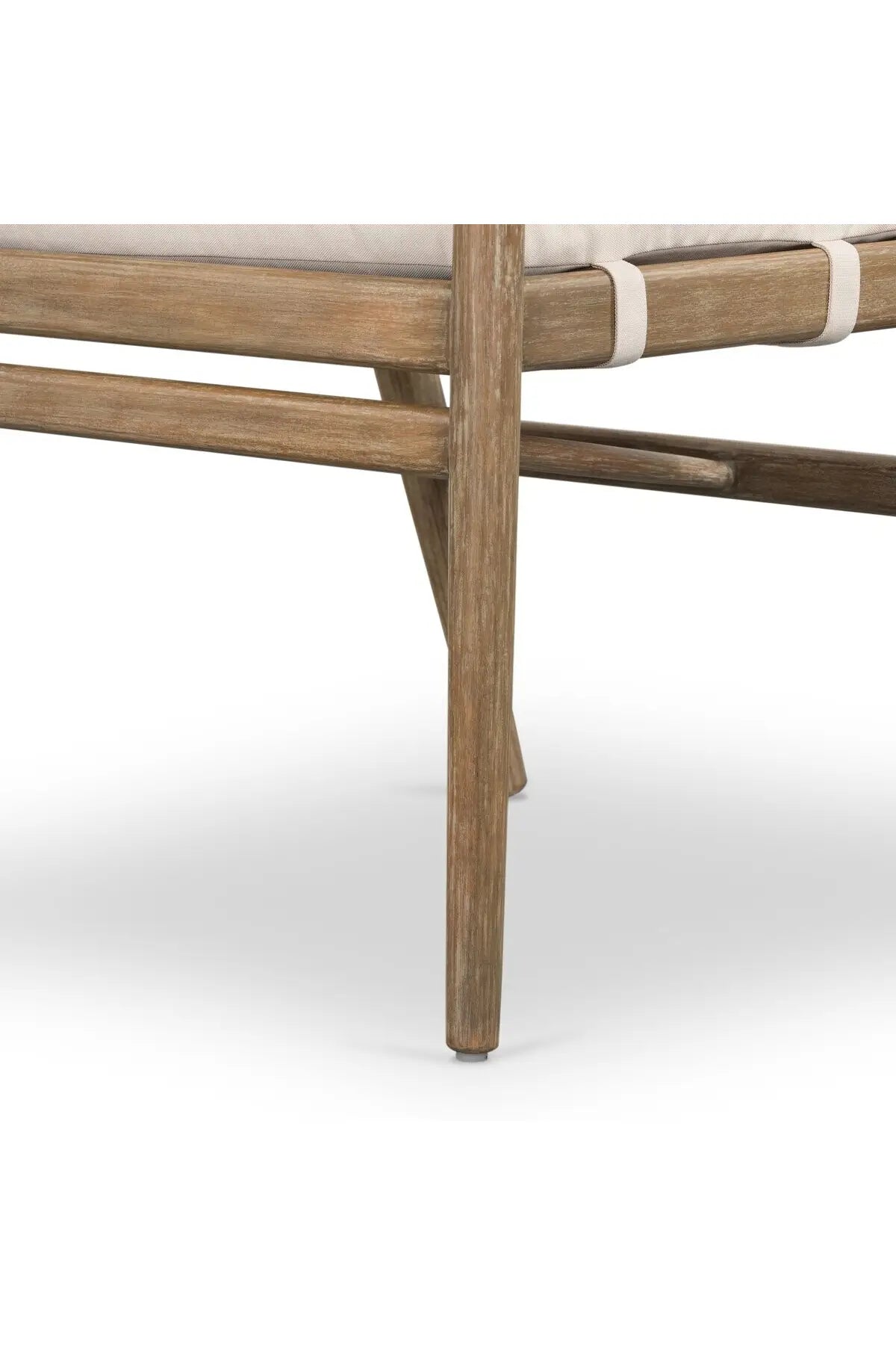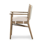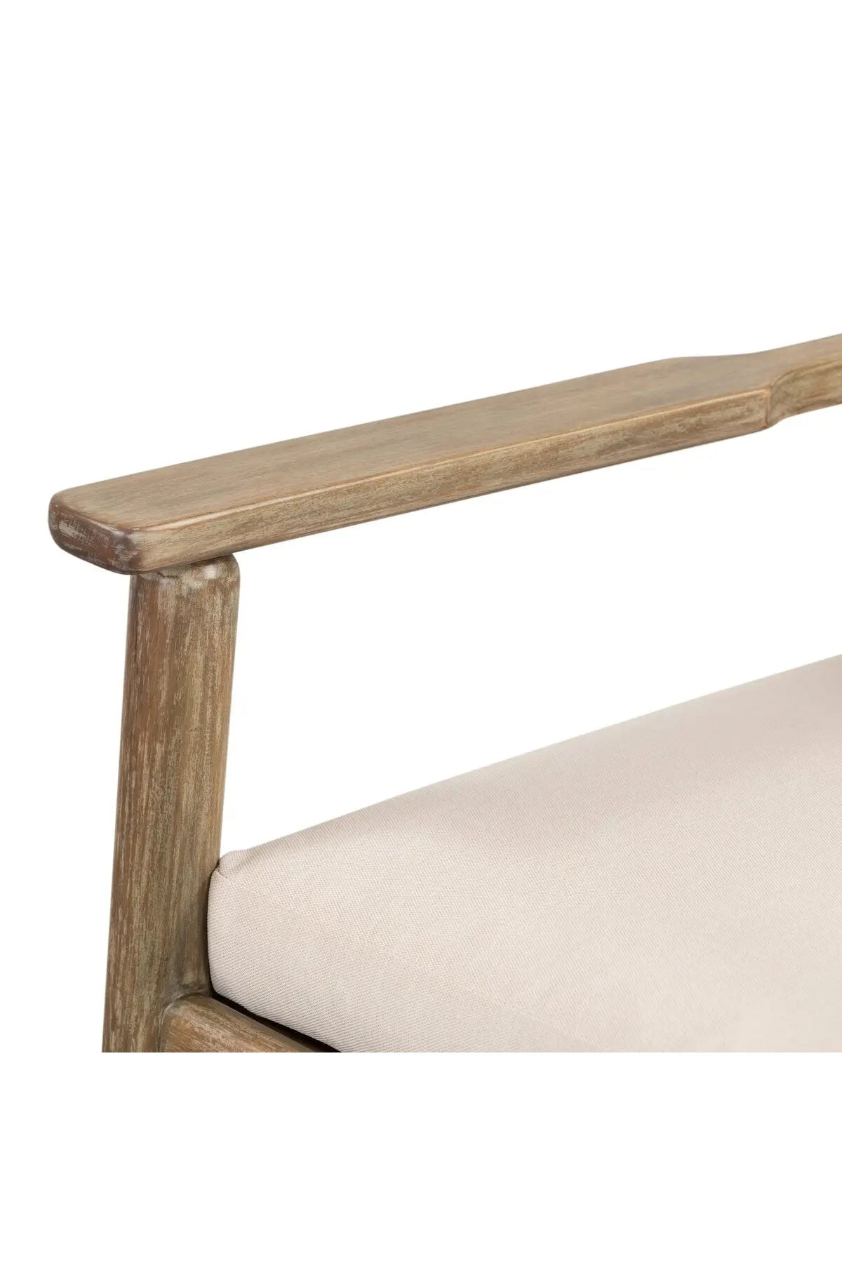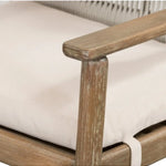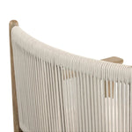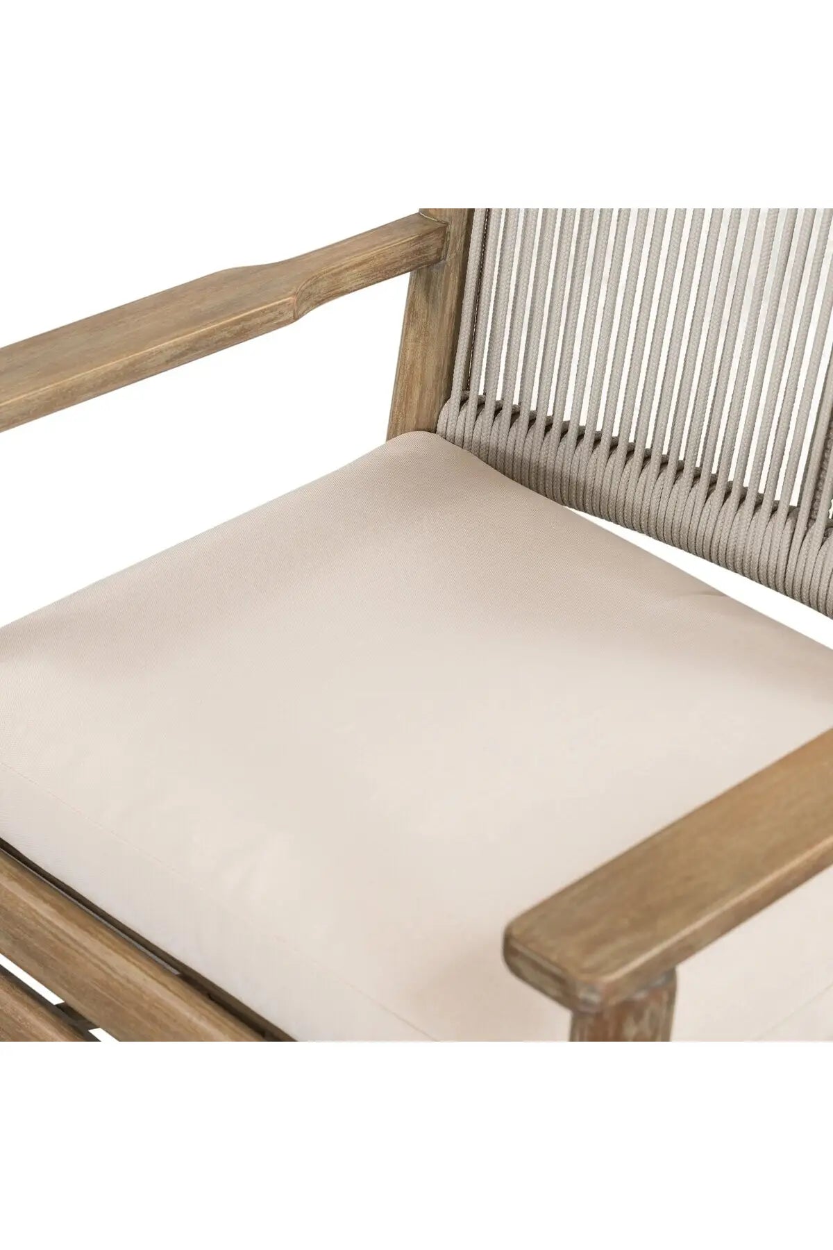 Meet the Rosen Outdoor Dining Armchair. Mixed materials prime for outdoor dining. A shapely frame of FSC-certified eucalyptus features a textural back of woven rope, paddle arms and comfy, Velcro-secured box cushioning in a versatile ivory. Cover or store indoors during inclement weather and when not in use.