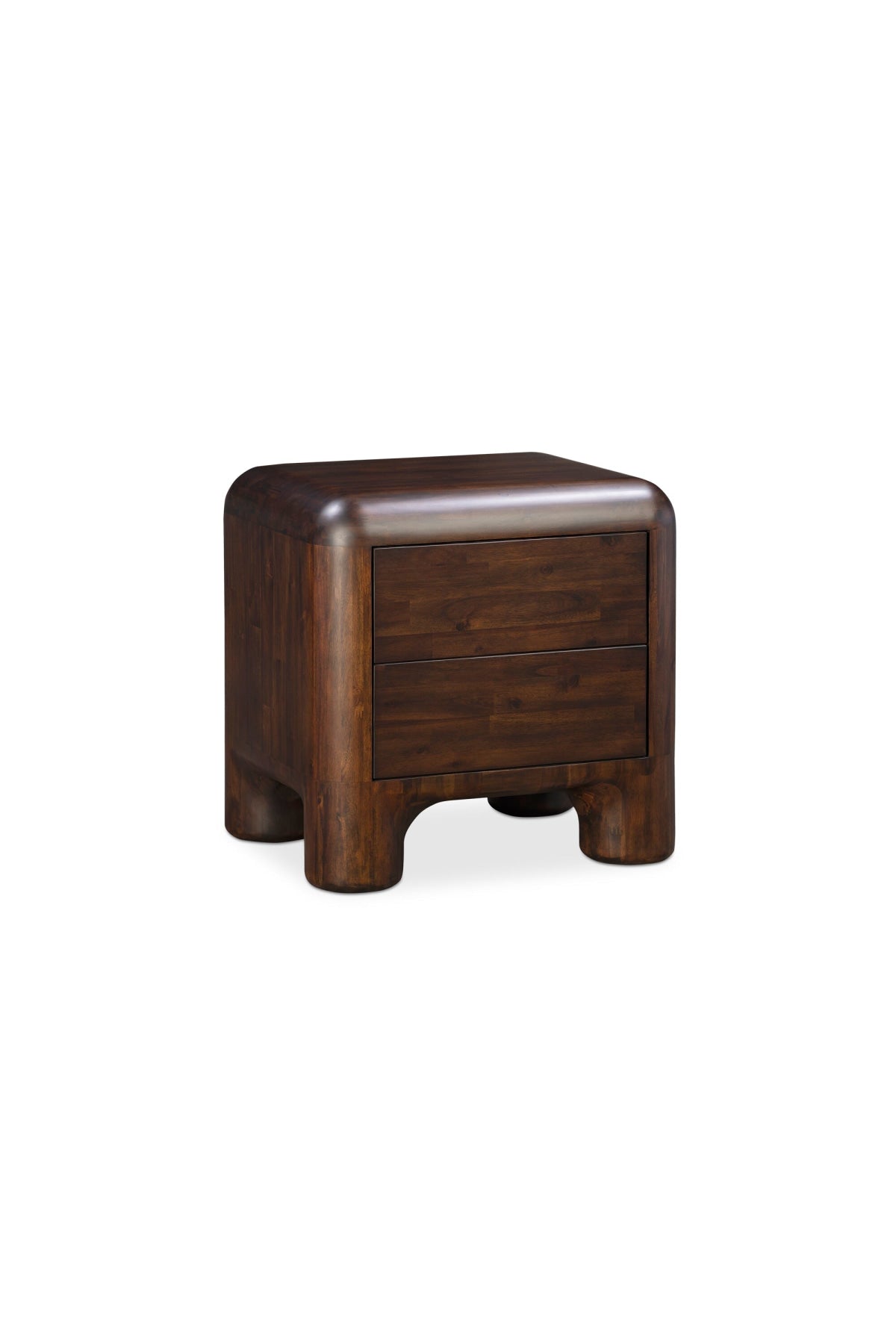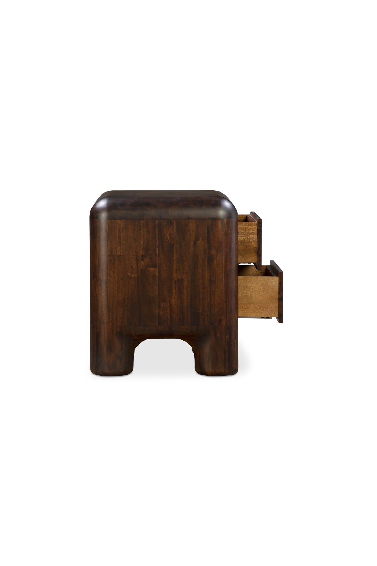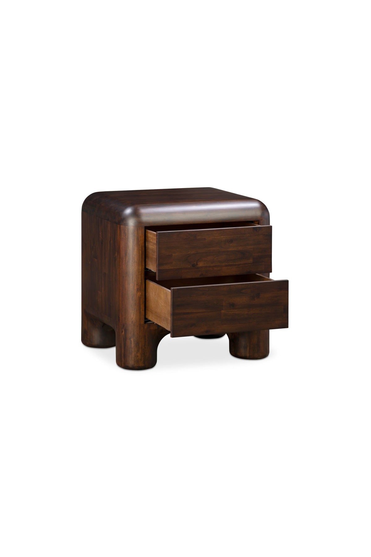 Meet the Rowan Nightstand. Crafted from Acacia wood with a rich walnut stain and two drawers that open with soft-close metal glides, this table balances the carefree spirit of youth and the polished sophistication of adulthood.