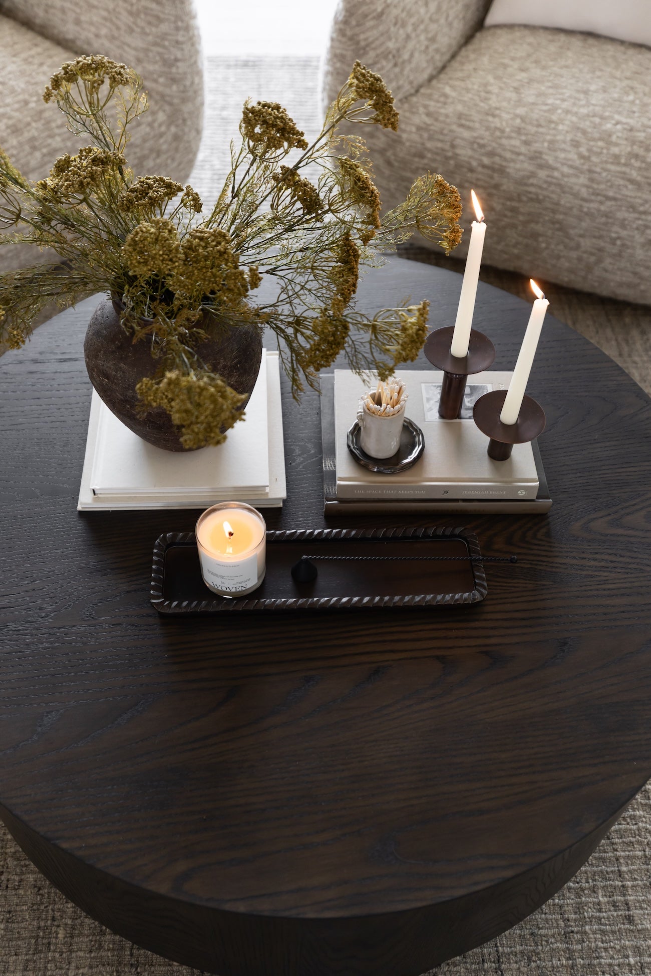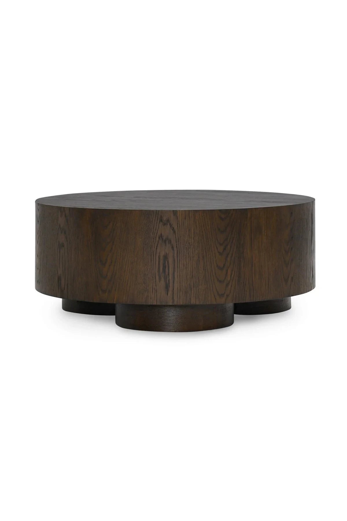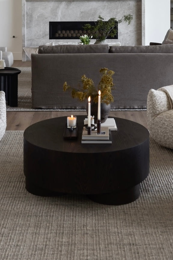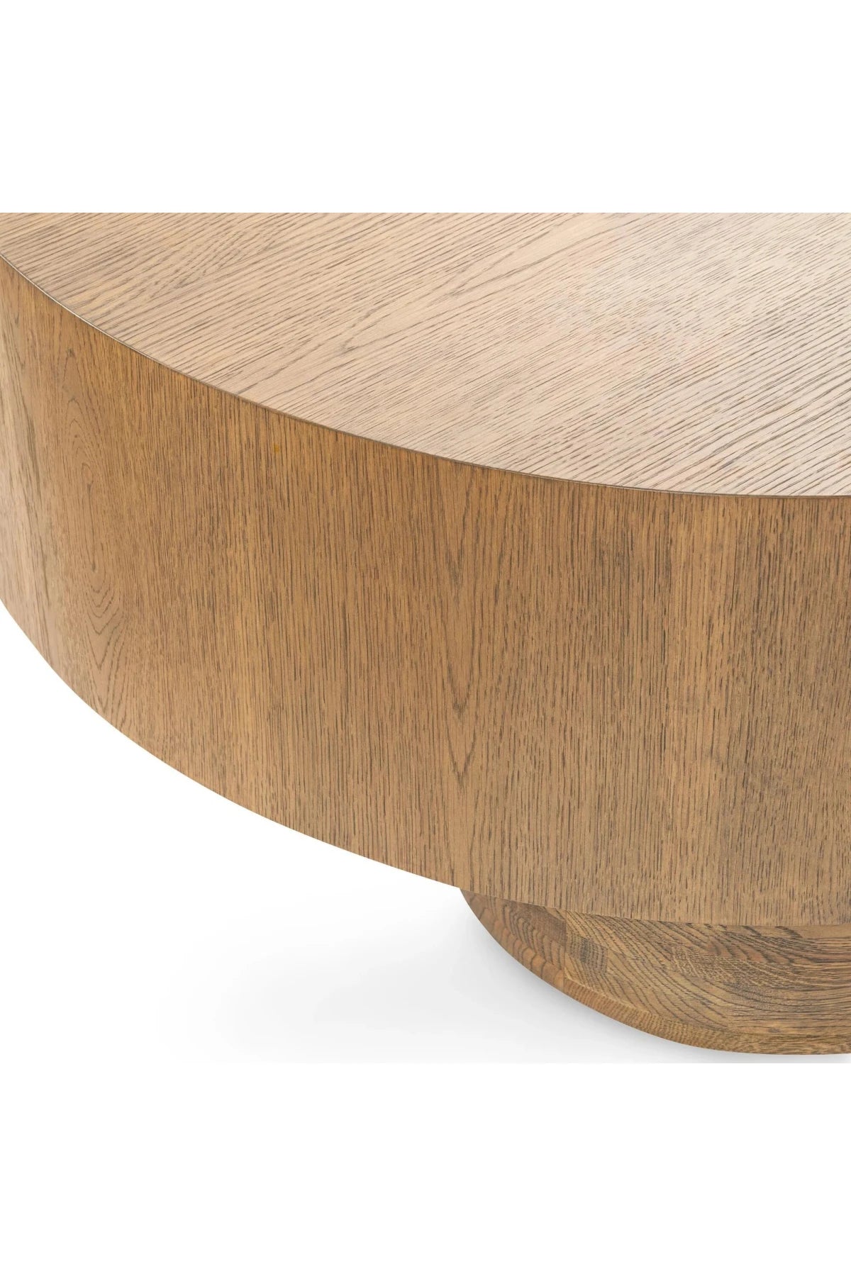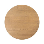 The Runa Table features a sleek oak veneer surface with a round, minimalistic design that beautifully complements the natural wood grain. Its clean lines and organic finish create a harmonious blend of modern simplicity and natural beauty, making it a versatile addition to any contemporary space.