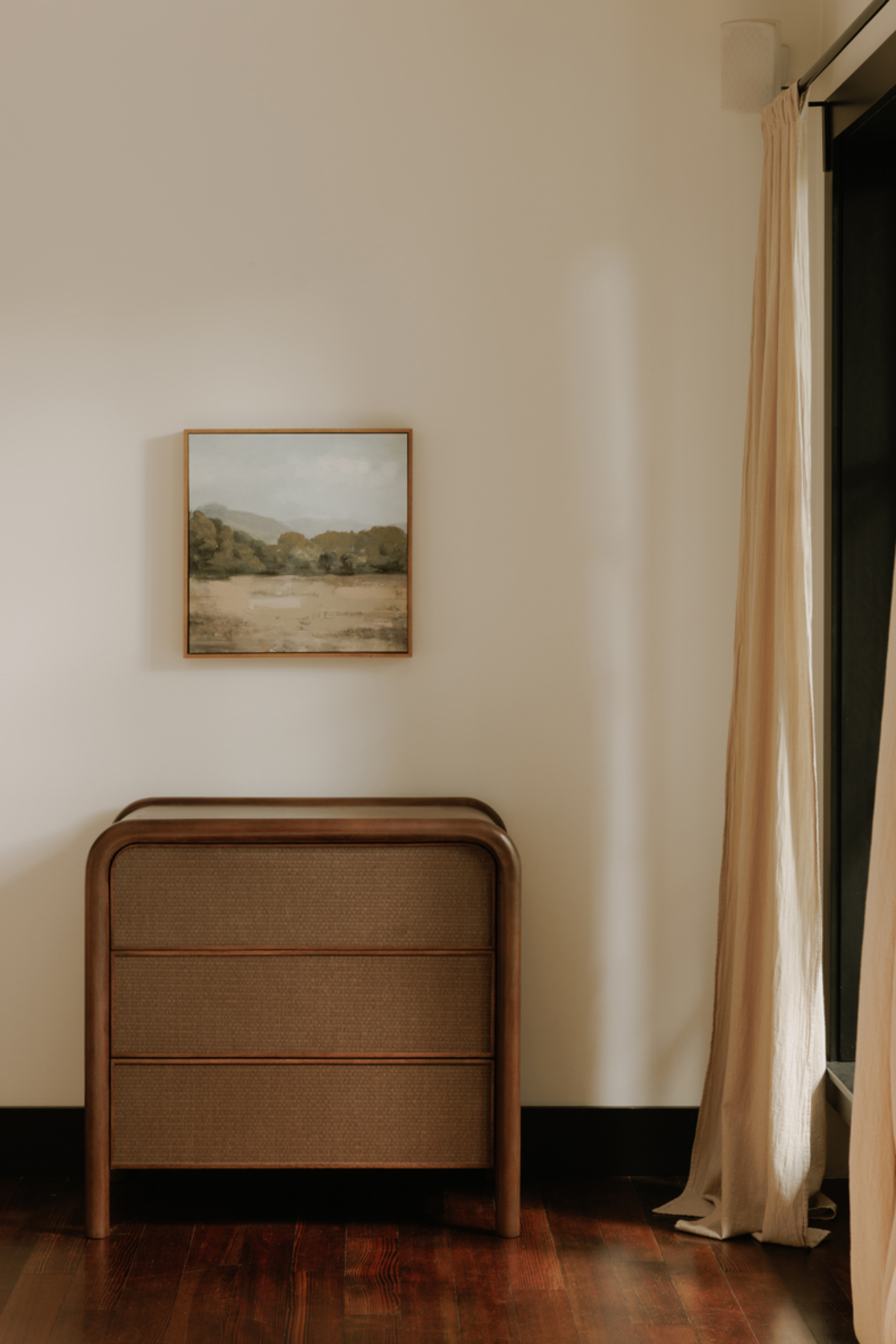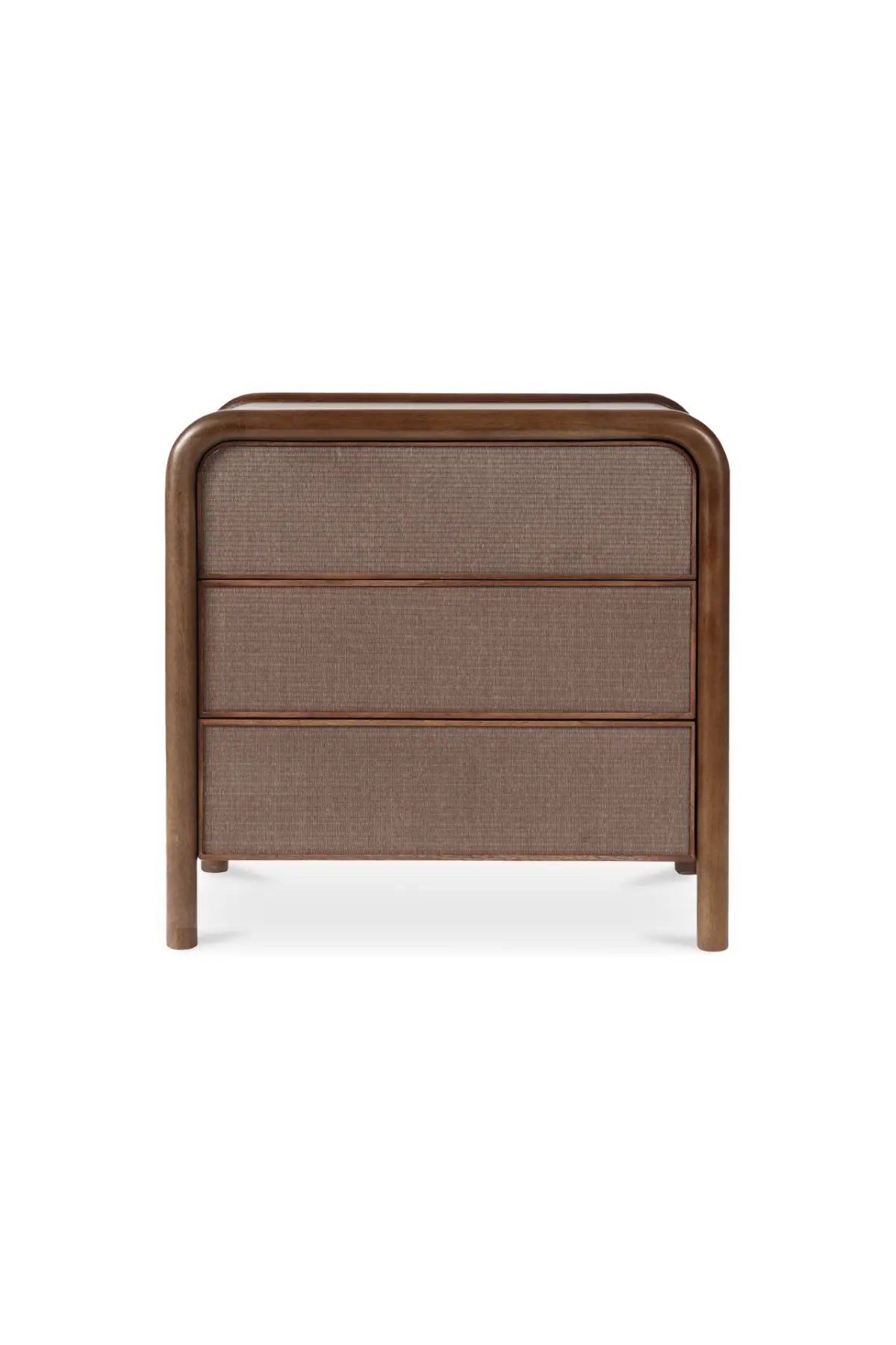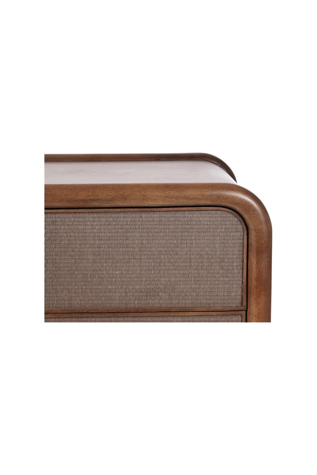 An inventive translation of piping detailing on traditional upholstery, the tonal woven soft rush front adds texture while complementing the solid mango wood construction of the Rye Nightstand. This tightly woven multilayered natural rice straw is a centuries-old natural material known for its durability and temperature absorption originating in Japan.